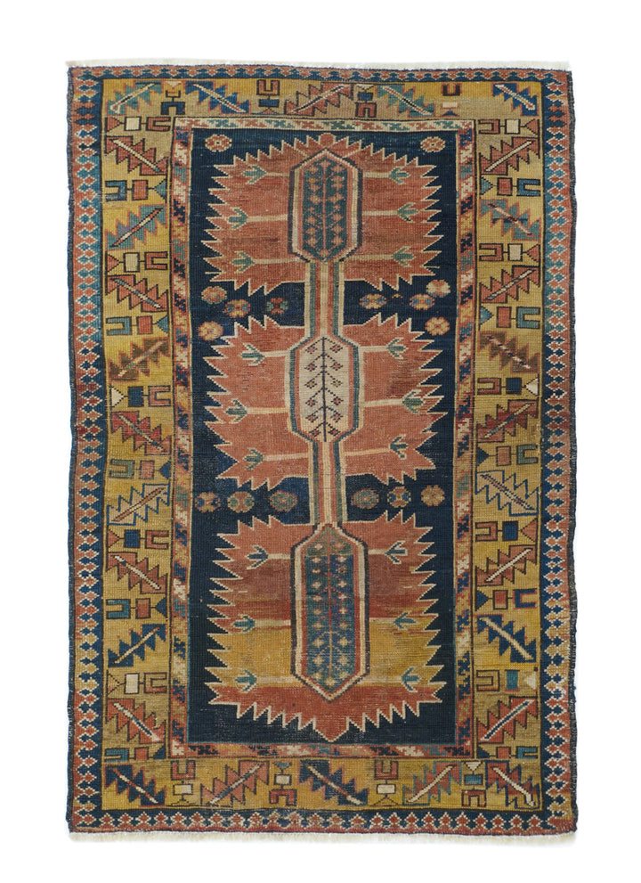 Eastern Caucasian, west Caspian Caucasian rugs, primarily scatters, in geometric layouts, some prayer, from a wide range of local villages. Marasali prayer rugs are considered as the best.. Some pictorials.  Wool warps, often cotton wefts. Lowish pile, moderate to fine weaves. Natural dyes exclusively until 1890’s, then synthetics appear. Moderate to high priced.