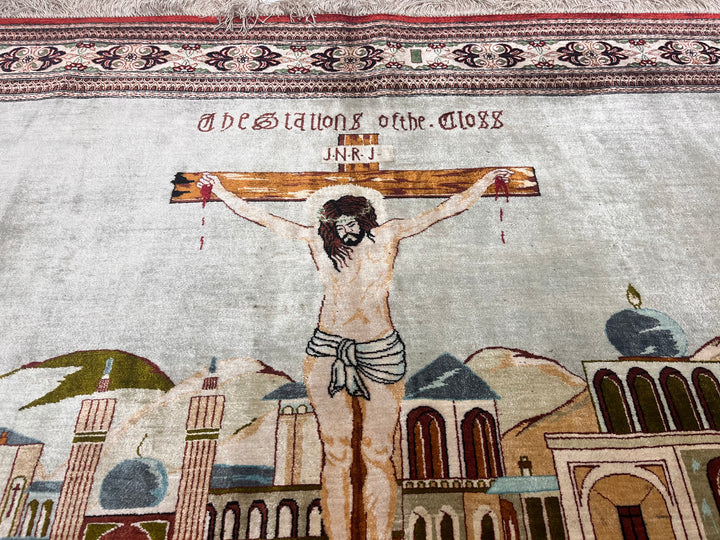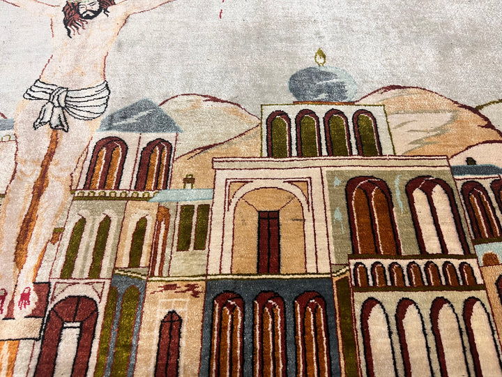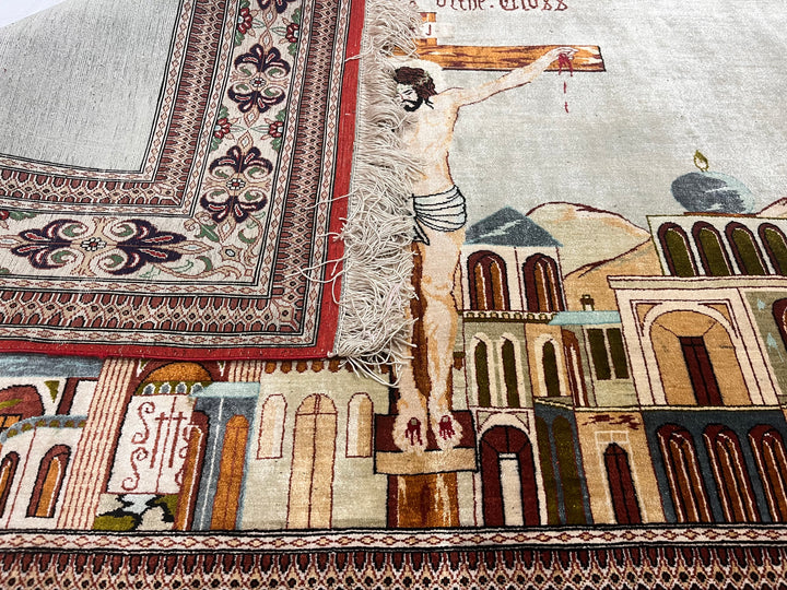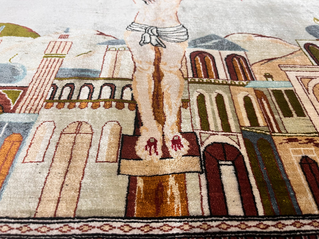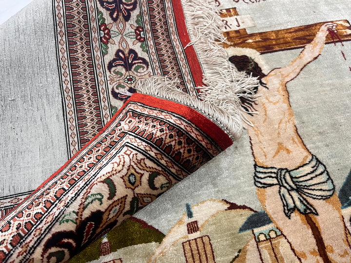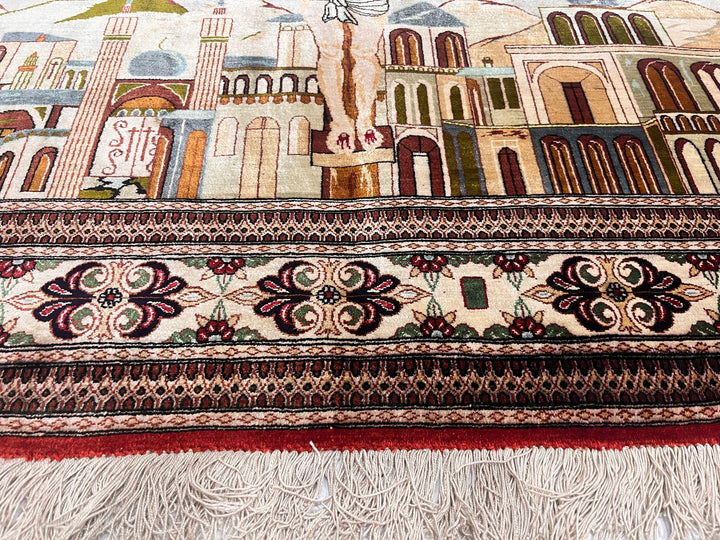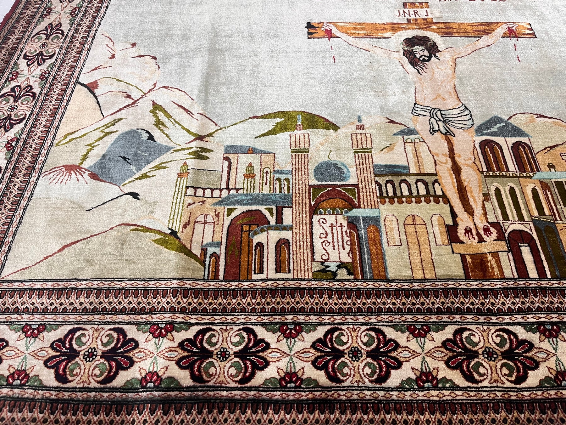 Extremely Fine Persian Silk Qum Pictorial with Jesus Christ 3’3" x 4’11"