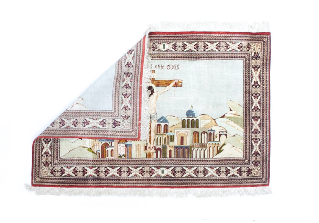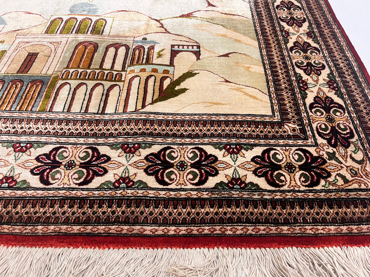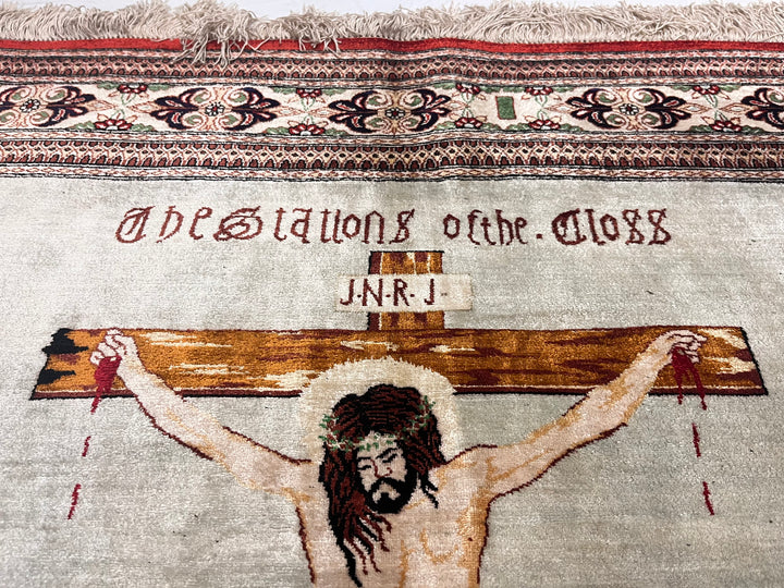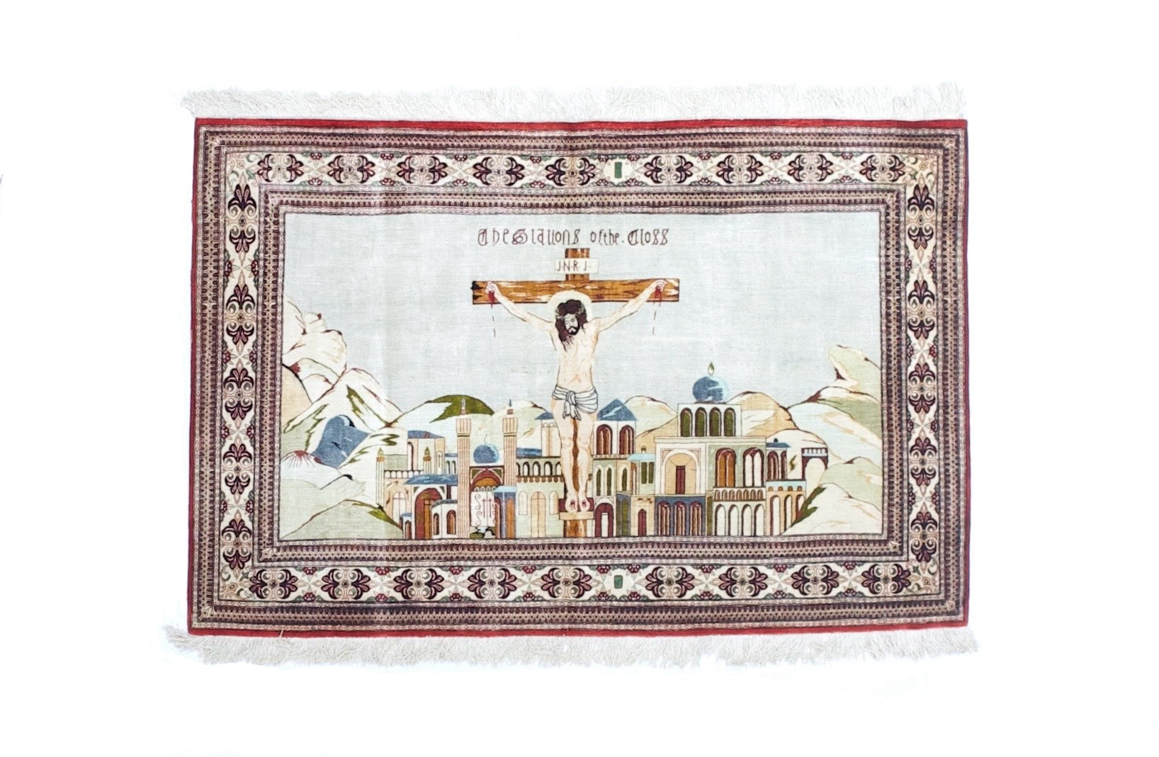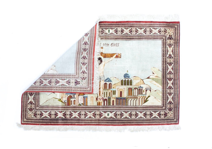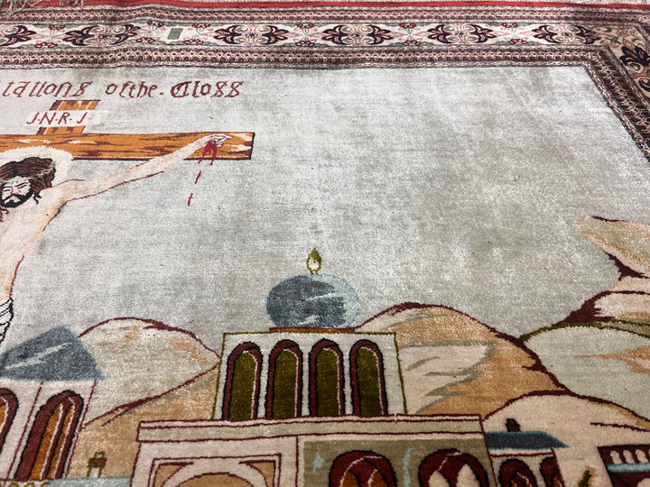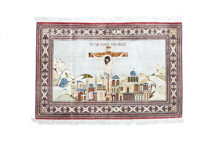 Extremely Fine Persian Silk Qum Pictorial with Jesus Christ 3’3" x 4’11"