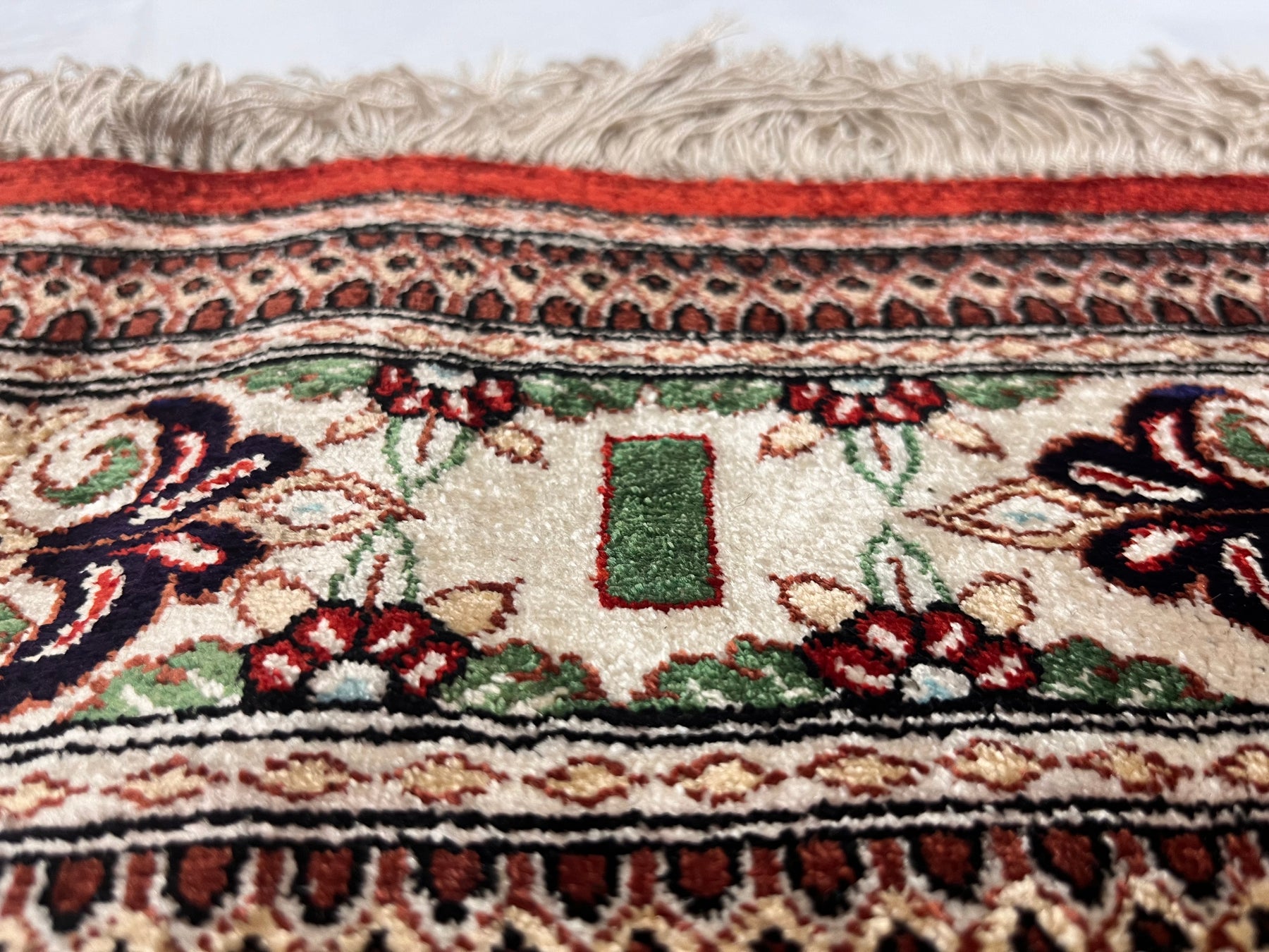 Fine to very finely woven, silk and wool rugs, mostly scatters, from the central Persian religious capital. Industry began in the 1930’s. Curvilinear drawing, Medallion, centralized, panel, allover, boteh and architectural patterns. A few prayer rugs. Expensive to very expensive.