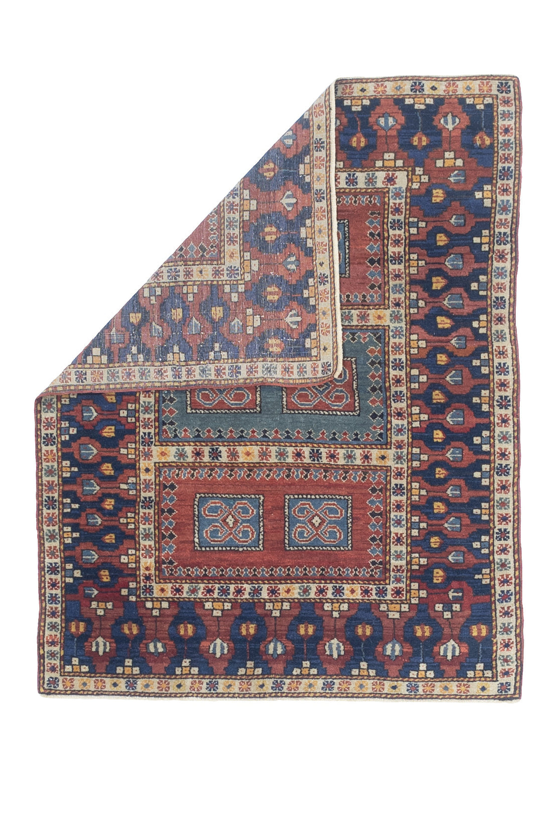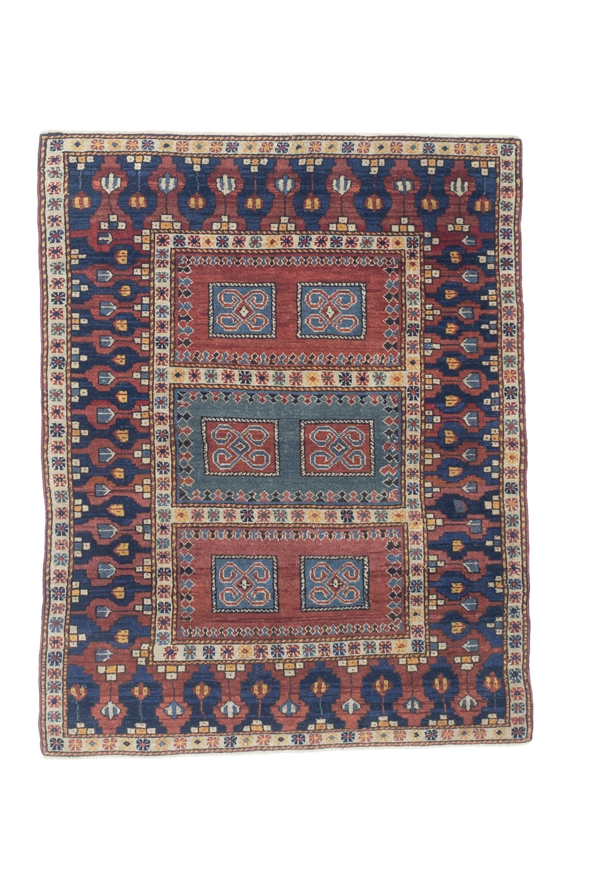 SW Caucasus/Armenia. Boldly patterned, strongly colored, totally geometric, all wool, coarse to moderate weave, medium to long pile, scatter format pieces, in medallion, allover and prayer (directional) layouts, with numerous identified source villages: Karachof, Bordshaly, Sewan, Shulaver and Lori Pambak.  Natural dyes, decorative to highly collectible. Often dated. Moderate to very expensive.