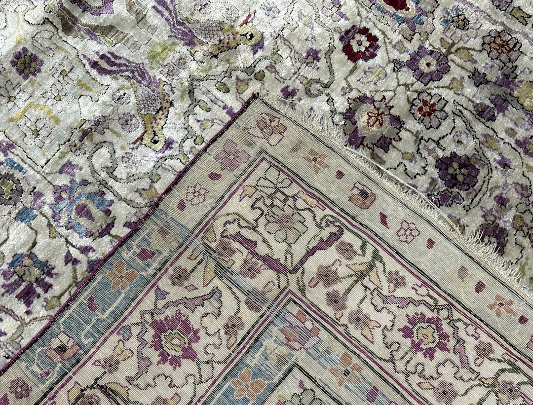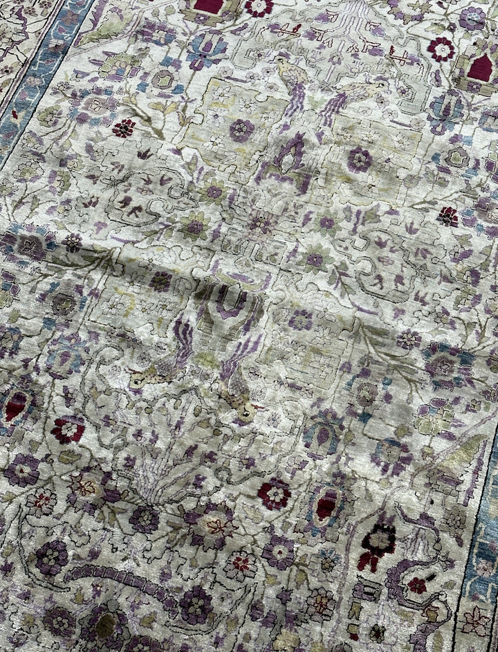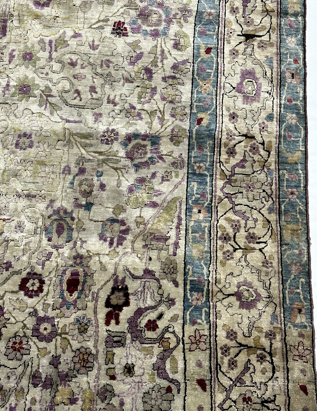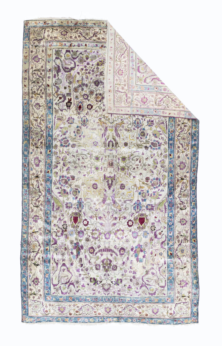 Antique Silk Persian Farahan Rug 3’11" x 6’11". The scatter and room size pieces made in the Arak/Sultanabad area, between 1880 and 1910, with firm and leathery well-woven textures, and strong in red, navy and ecru tones, usually in medallion formats. A transition group between the earlier 19th century Farahans and the post-WWI Sarouks. Drawing is between curvilinear and angular.