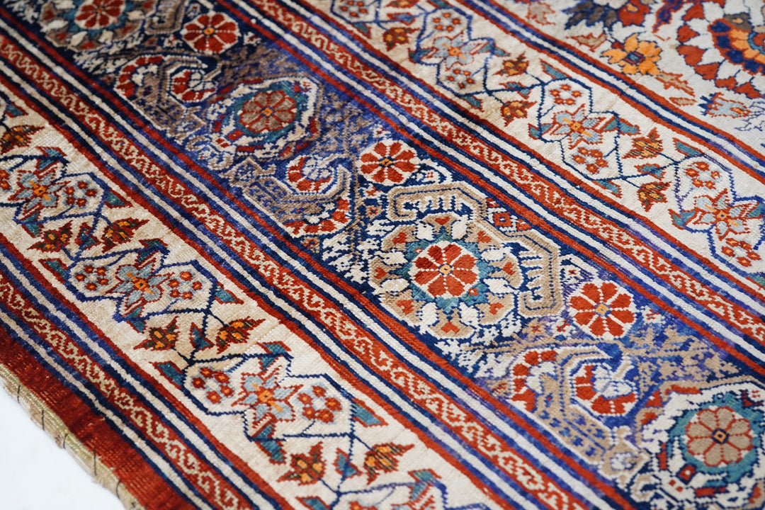 The numerous rugs of the famous NW Persian weaving district, from small scatters to giant carpets and a few runners, in semi-geometric medallion, centralised and strictly allover patterns, on cotton foundations, with crisp natural dye palettes including a warm madder red. Coarse to moderate weave. Works with any décor, always popular.