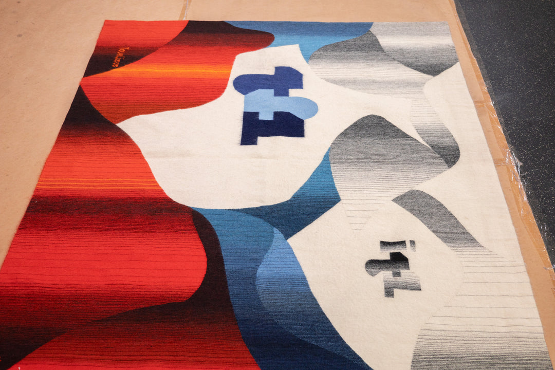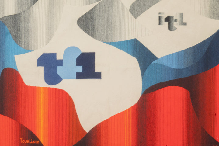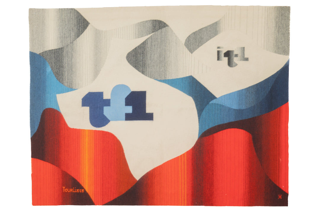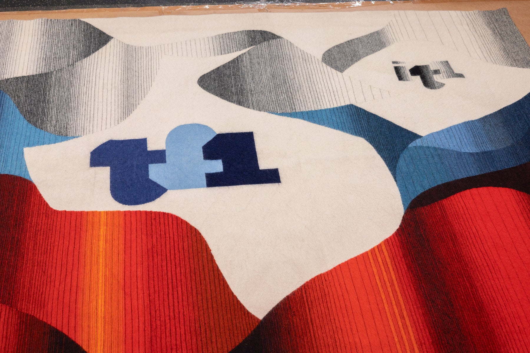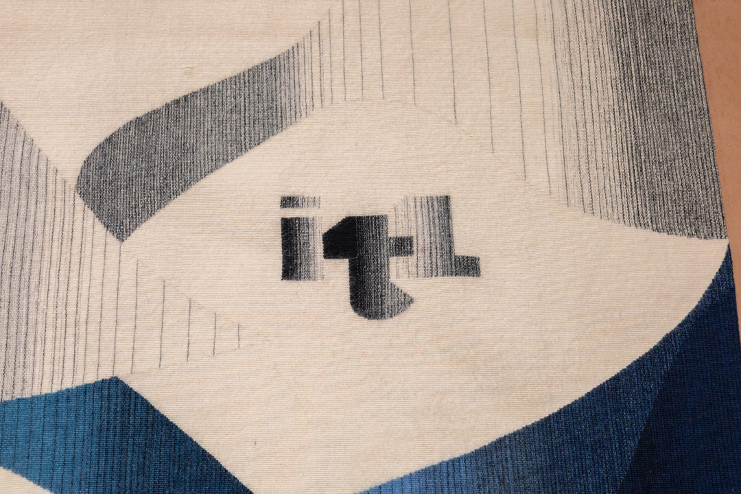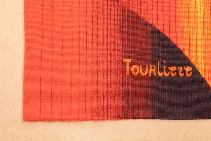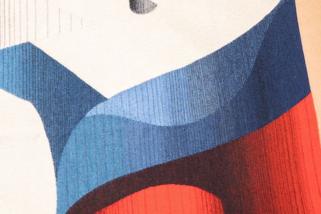 Fine mid century French designer wool tapestry 4'10" x 6'4".