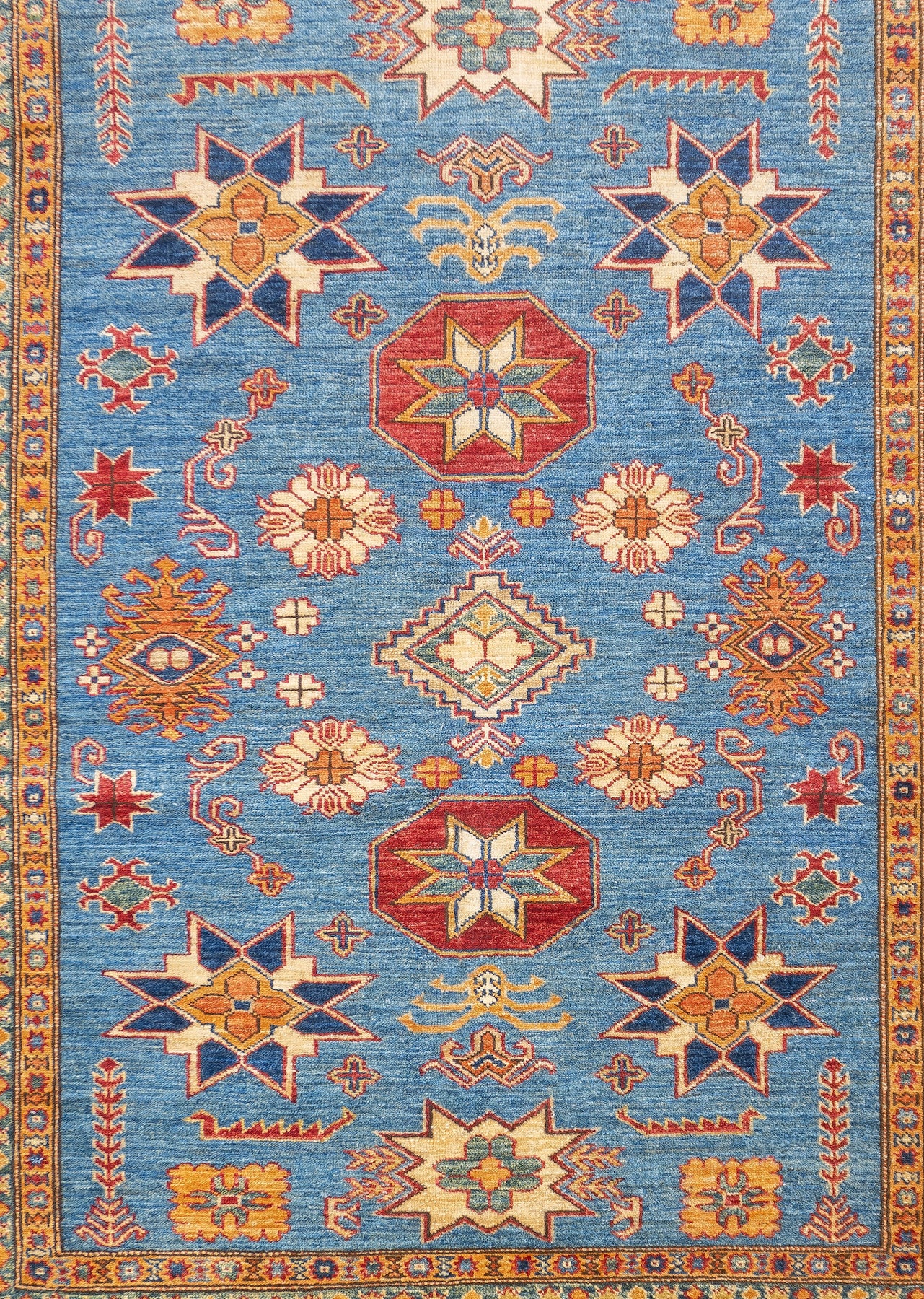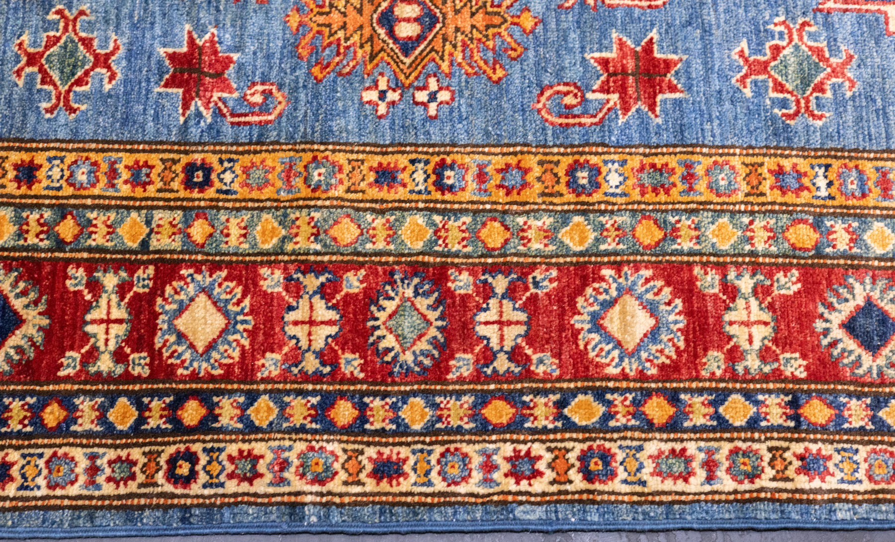 Pakistani post-WWII rug, generally scatters, with soft wool and curvilinear Persianate designs. Synthetic dyes, cotton foundations. Moderate to medium weaves.