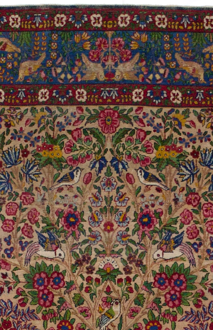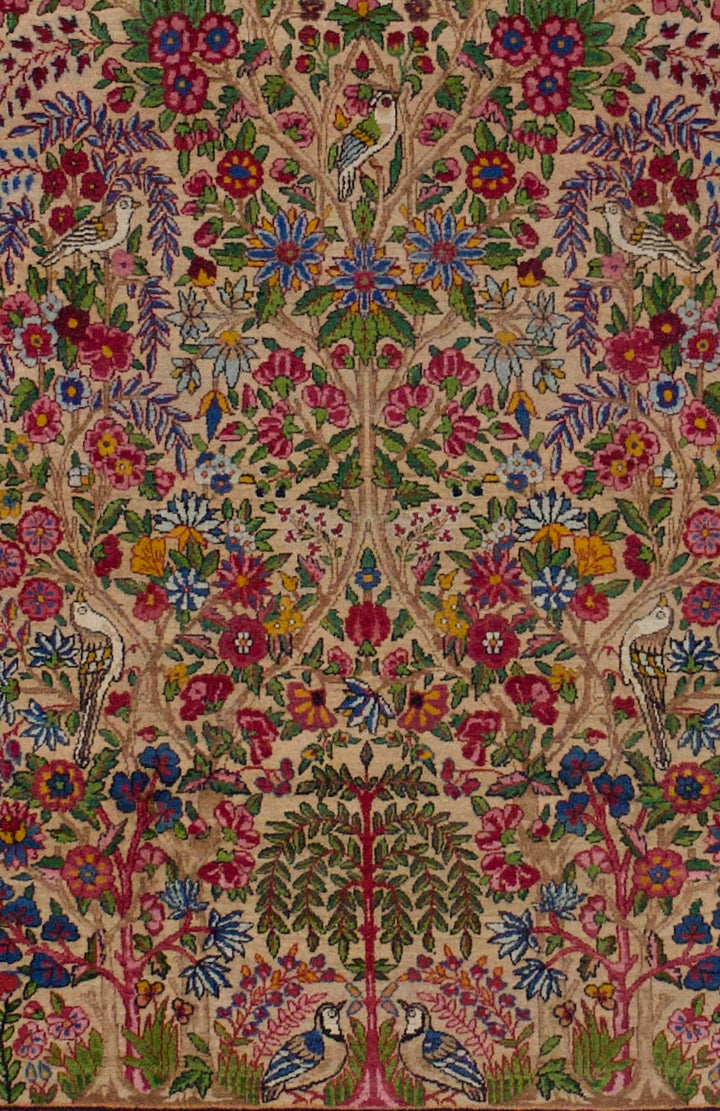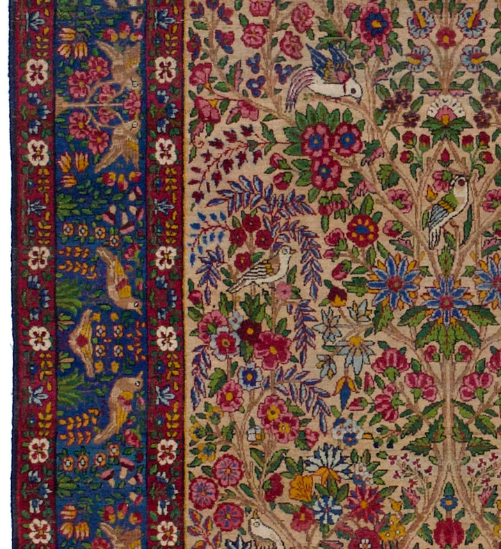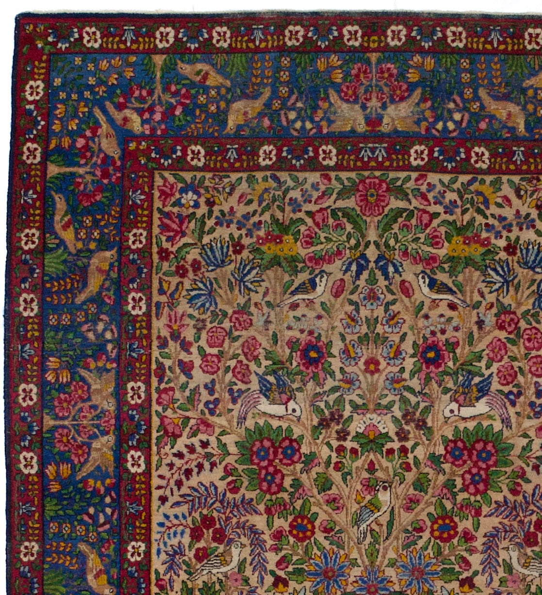 A trade term applied to better quality pre-WWI Kermans. ‘Laver’ is corruption of ‘Ravar’, a town near Kerman city, reputed to have woven some of the finest and best Revival Period Kermans. Scatter to mansion sizes. Cotton foundations, Fine to very fine. Natural dyes only.