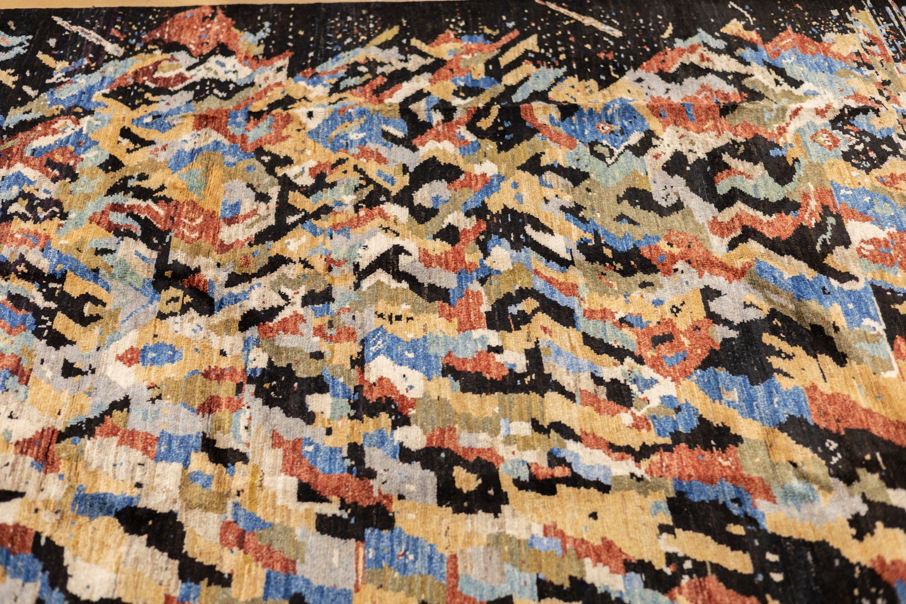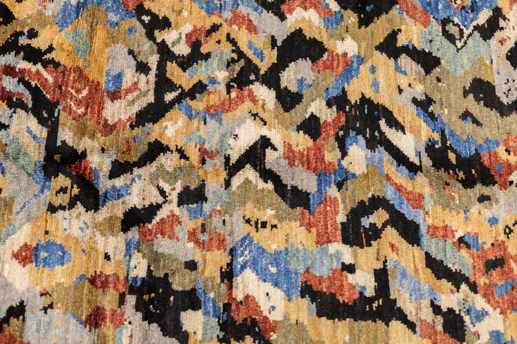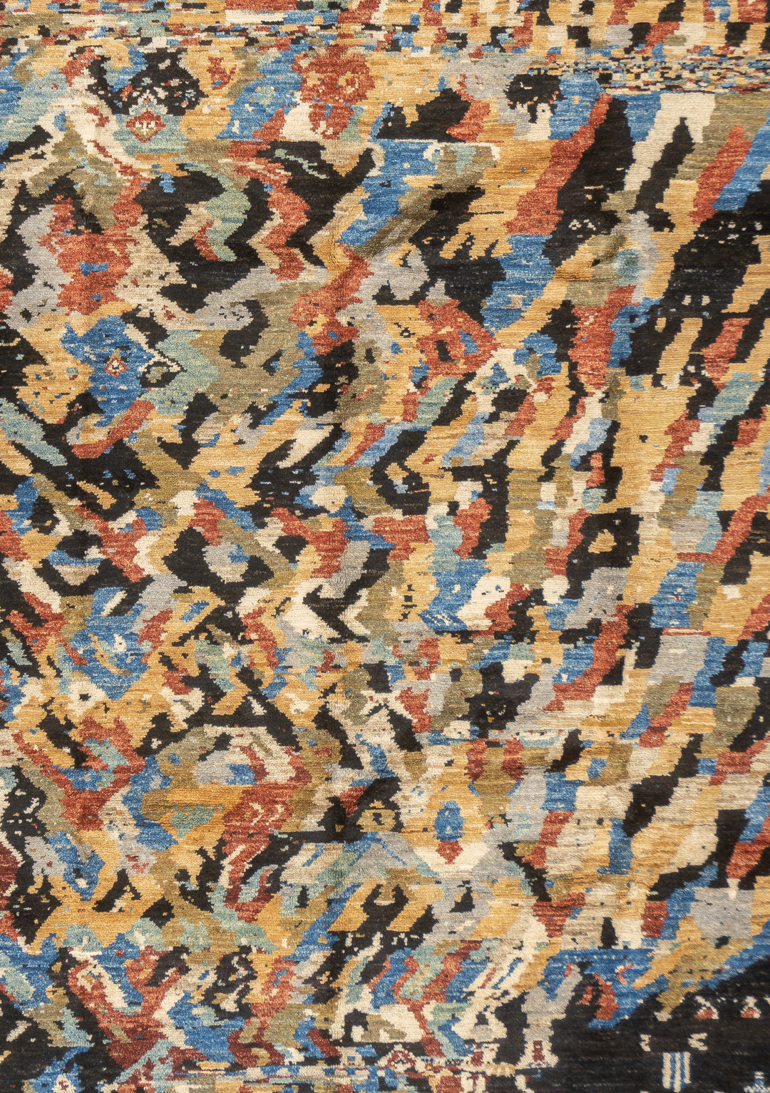 Recent trends including borderless, abstract, painterly, geometric, non-objective, non-traditional, restricted palette and textural variation (e.g., high and low pile). The contempo carpet generally eschews the traditional layouts, although fragments of classic designs may be used in a collage or montage manner. Often custom. Prices range from moderate to relatively expensive, depending on material, fineness and vendor.