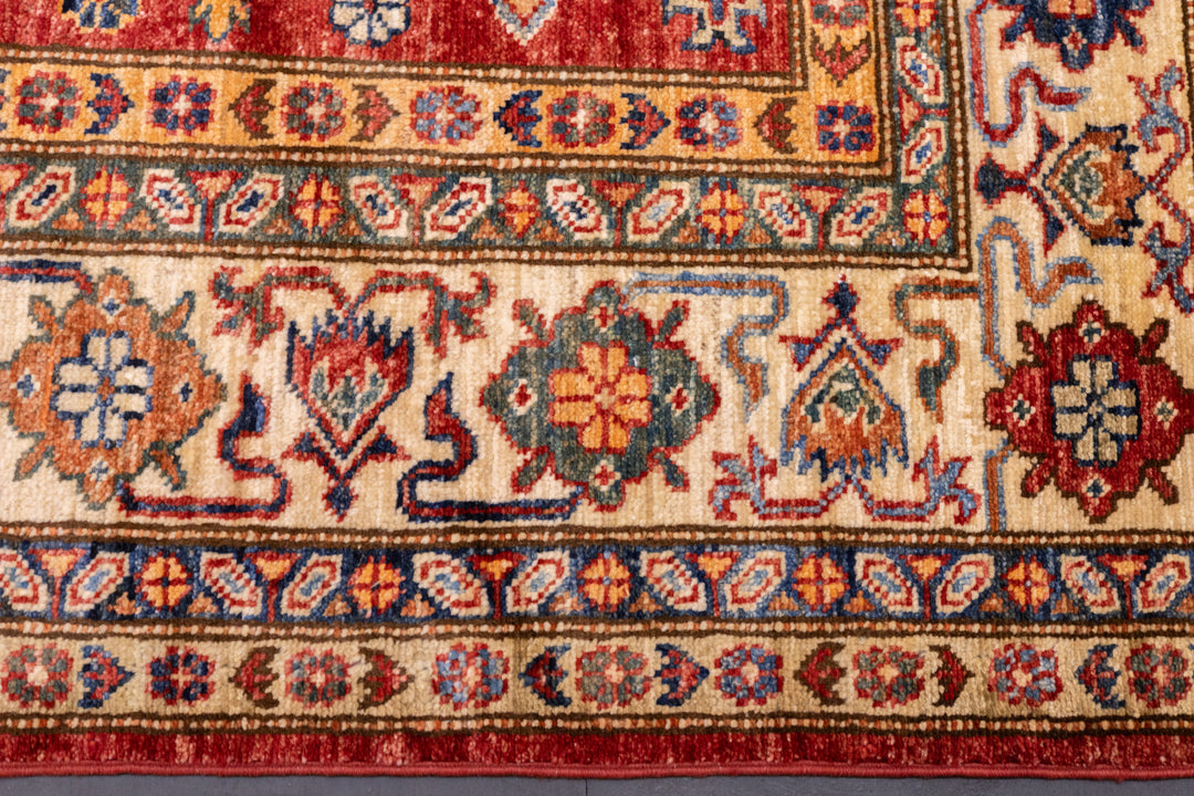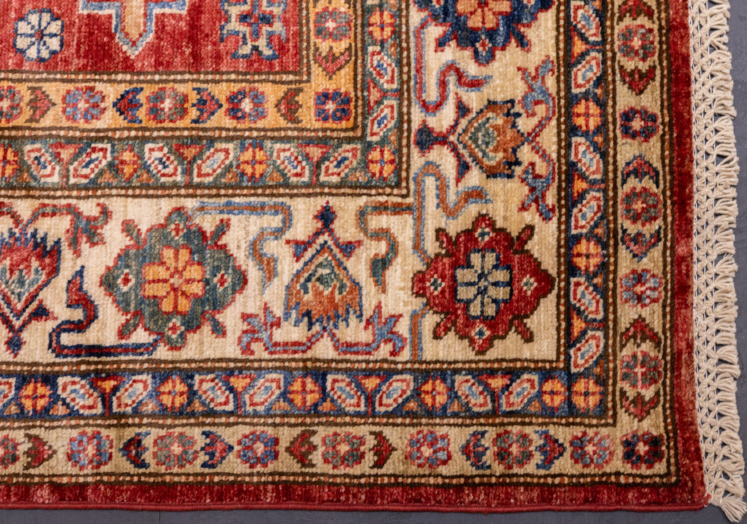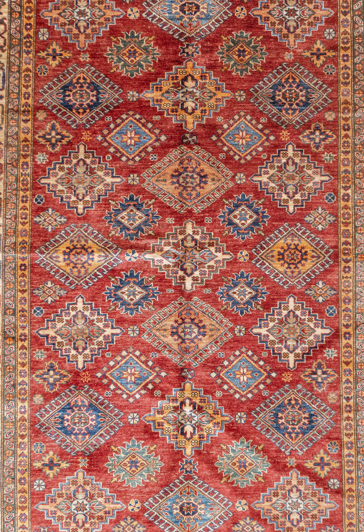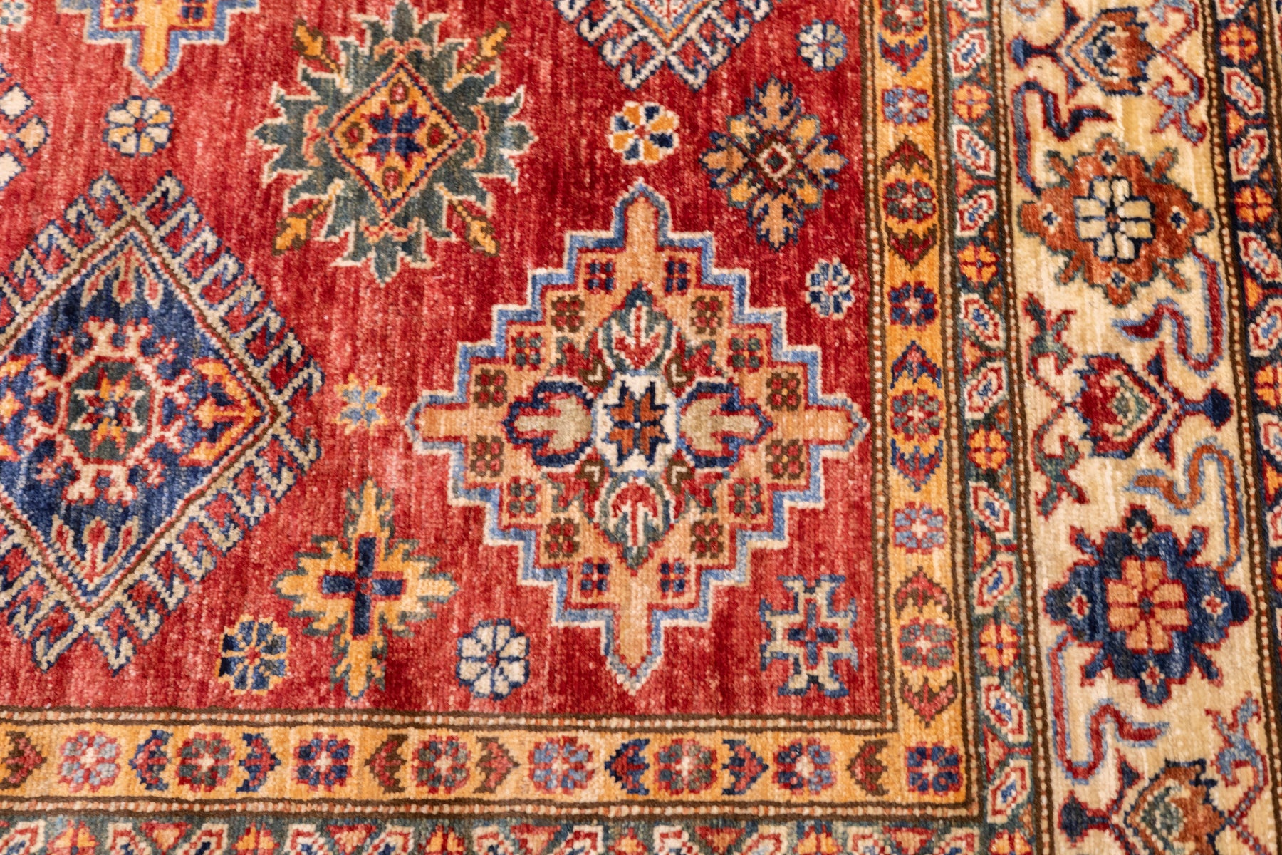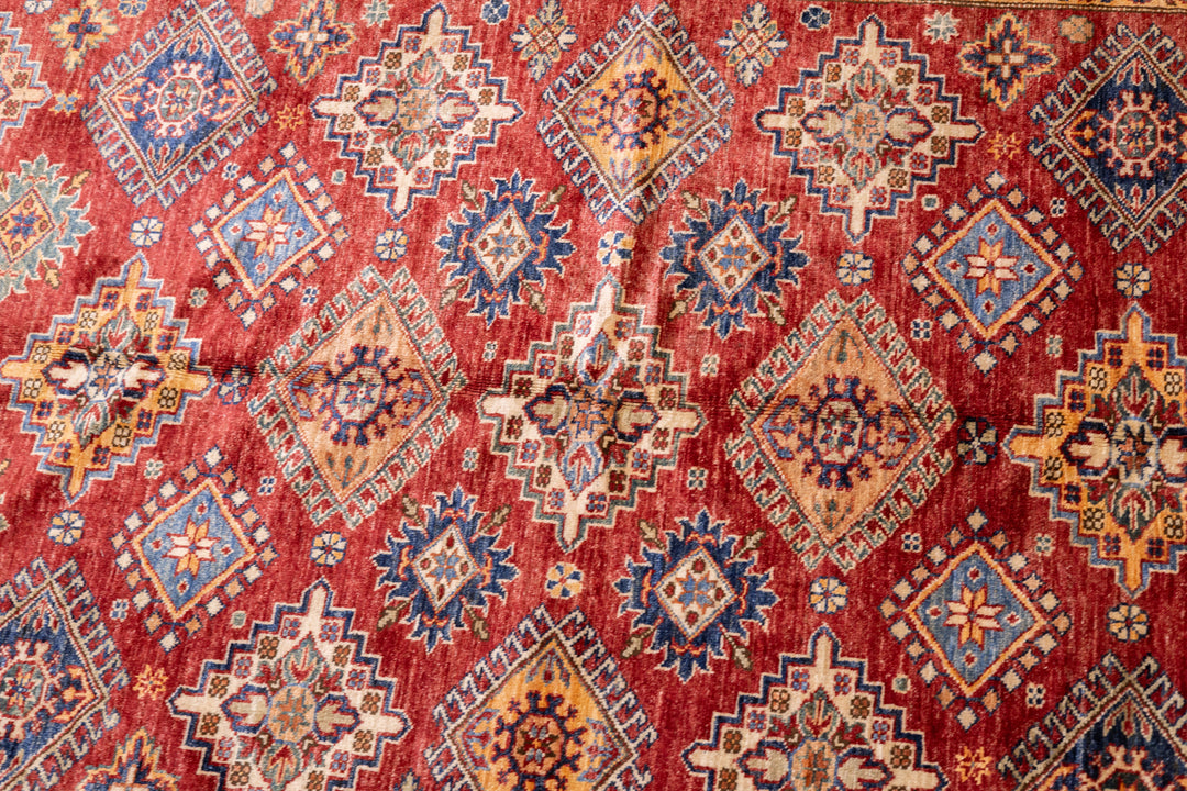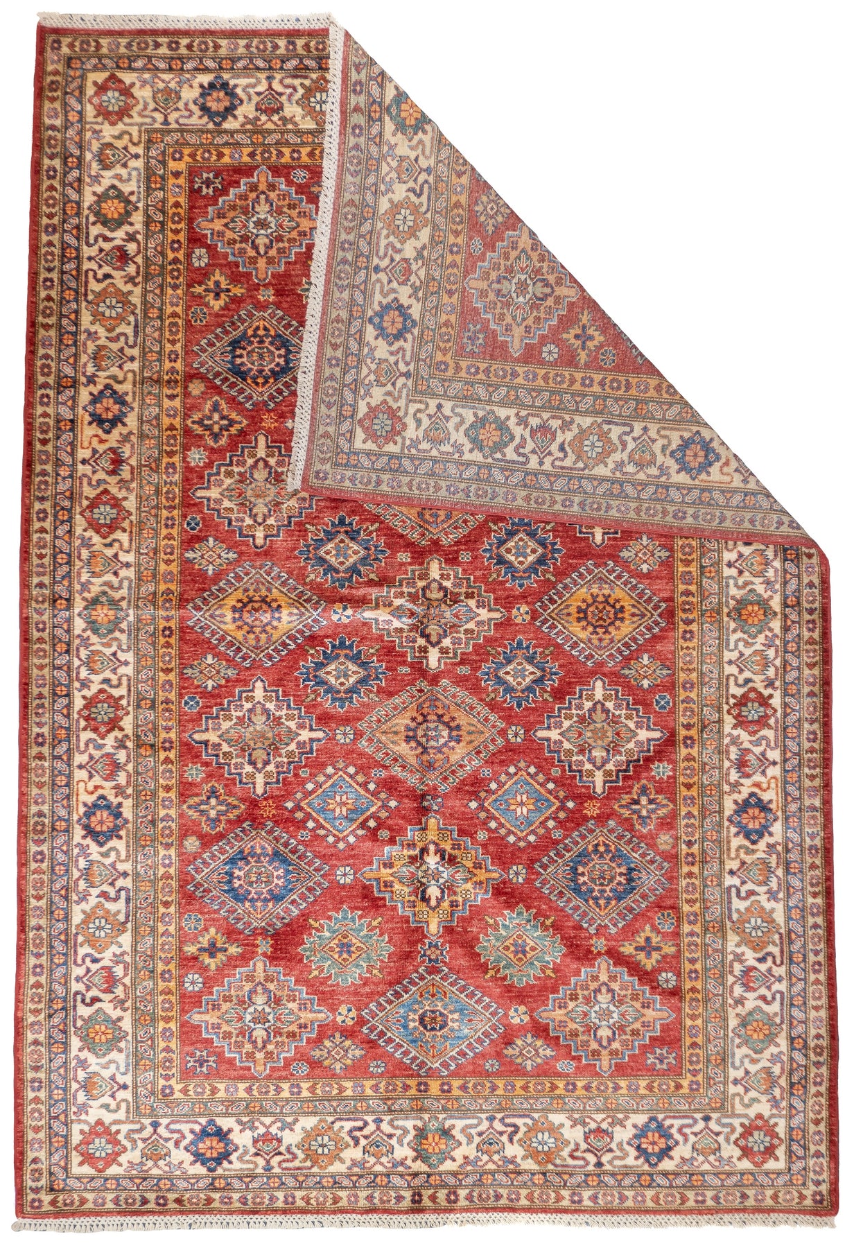 Pakistani post-WWII rug, generally scatters, with soft wool and curvilinear Persianate designs. Synthetic dyes, cotton foundations. Moderate to medium weaves.