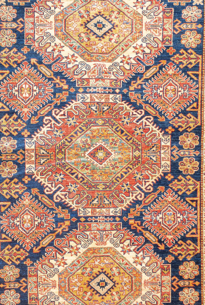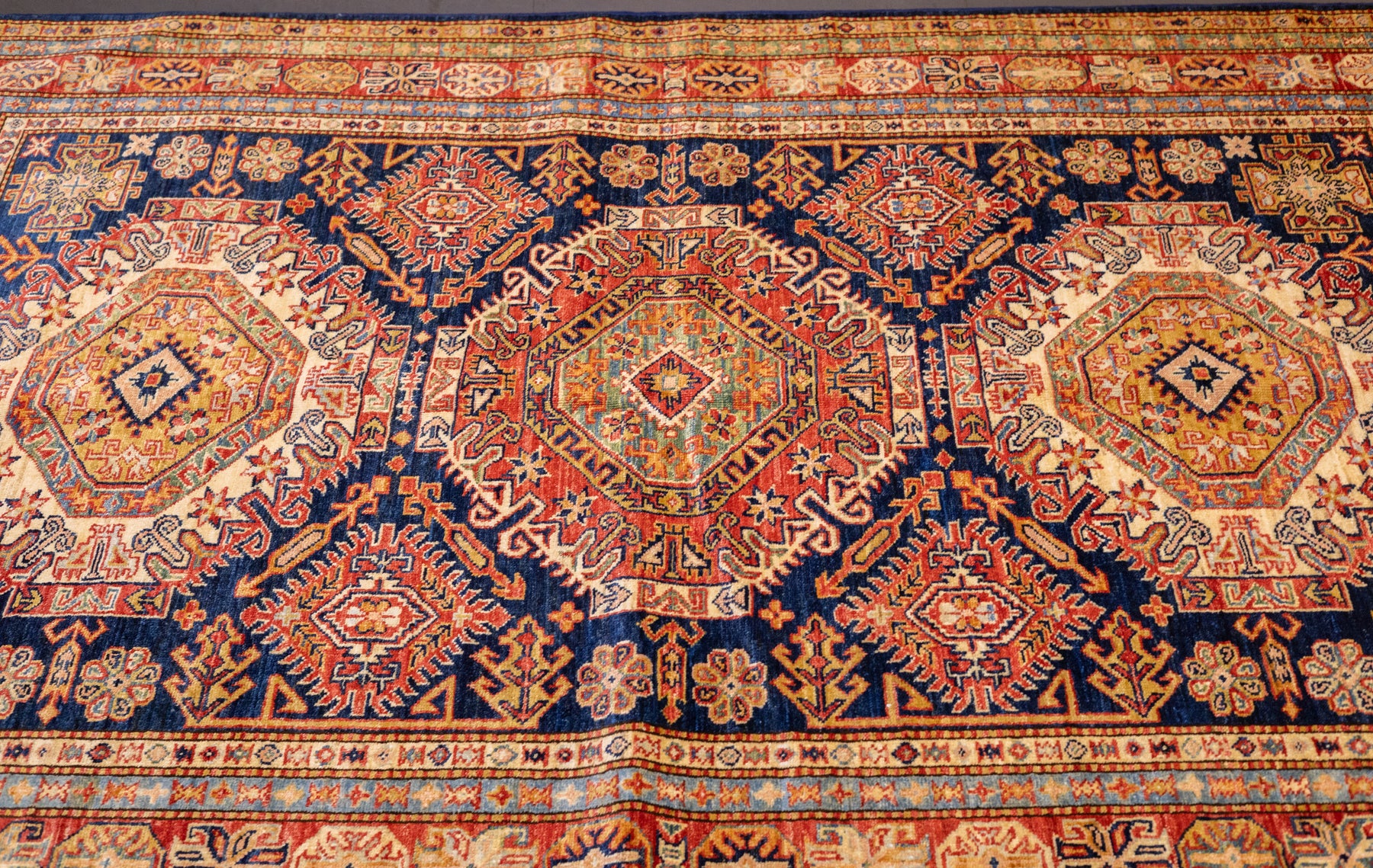 Pakistani post-WWII rug, generally scatters, with soft wool and curvilinear Persianate designs. Synthetic dyes, cotton foundations. Moderate to medium weaves.