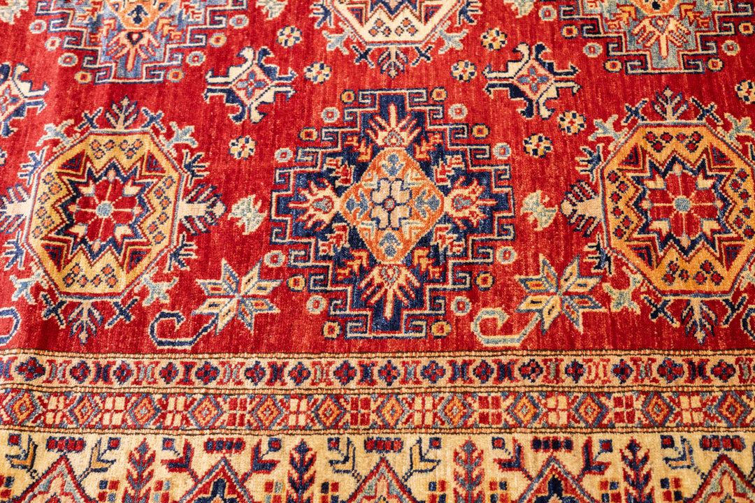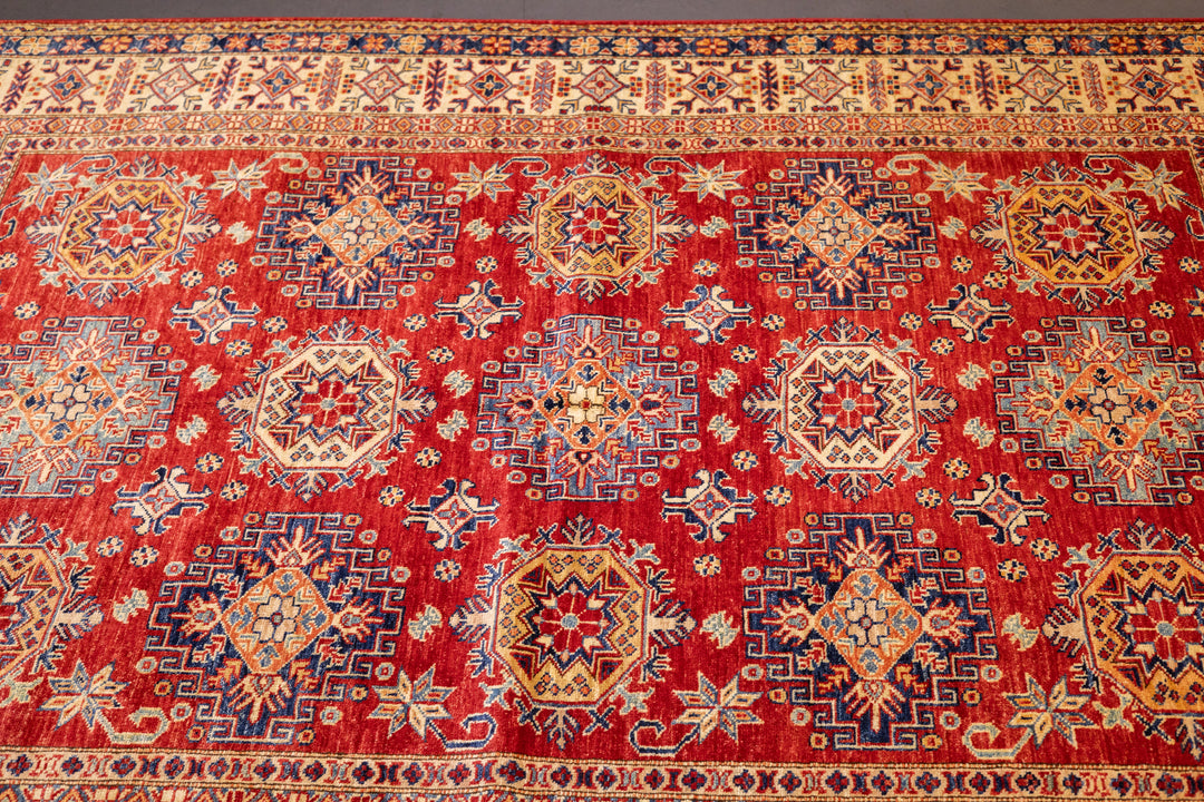 Pakistani post-WWII rug, generally scatters, with soft wool and curvilinear Persianate designs. Synthetic dyes, cotton foundations. Moderate to medium weaves.