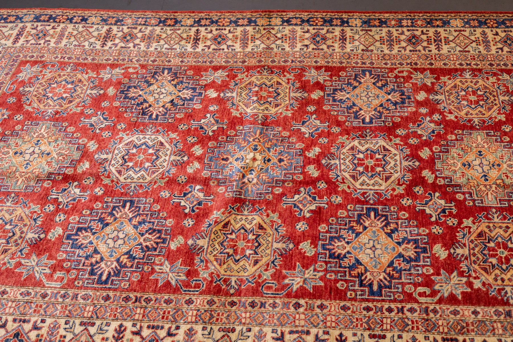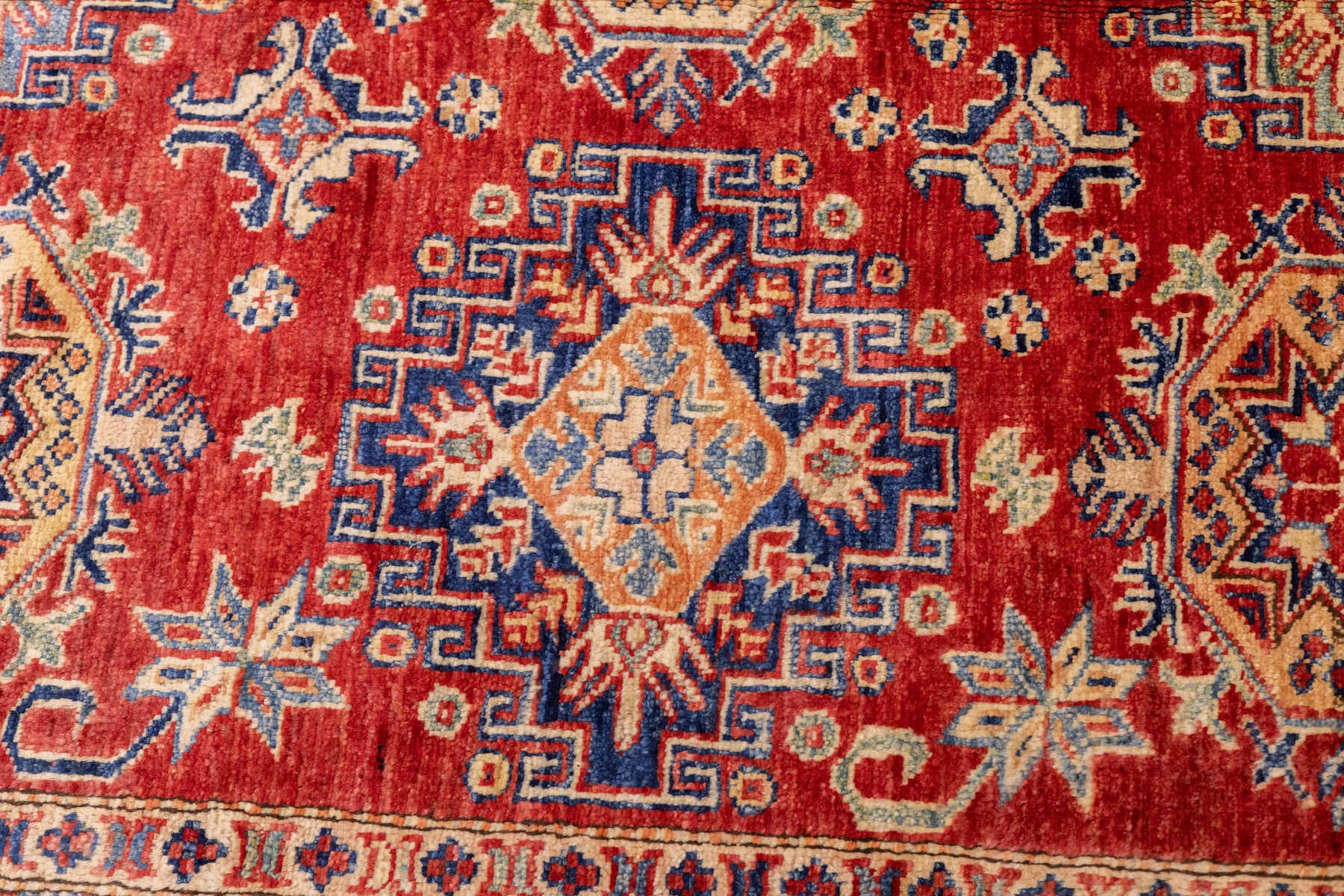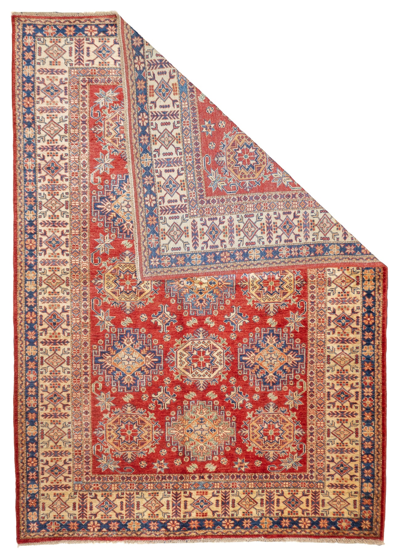 Pakistani post-WWII rug, generally scatters, with soft wool and curvilinear Persianate designs. Synthetic dyes, cotton foundations. Moderate to medium weaves.