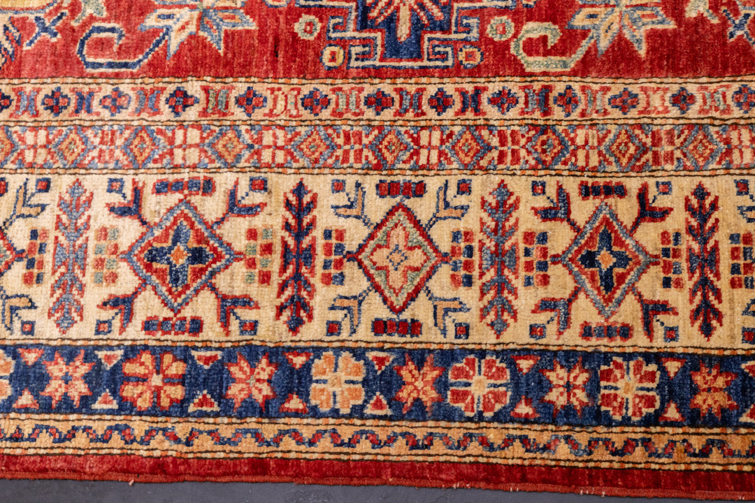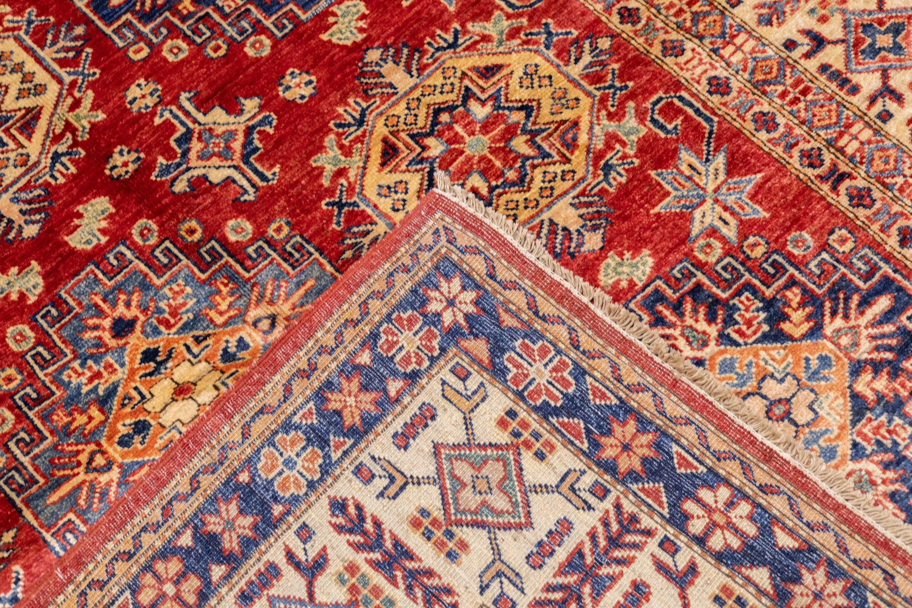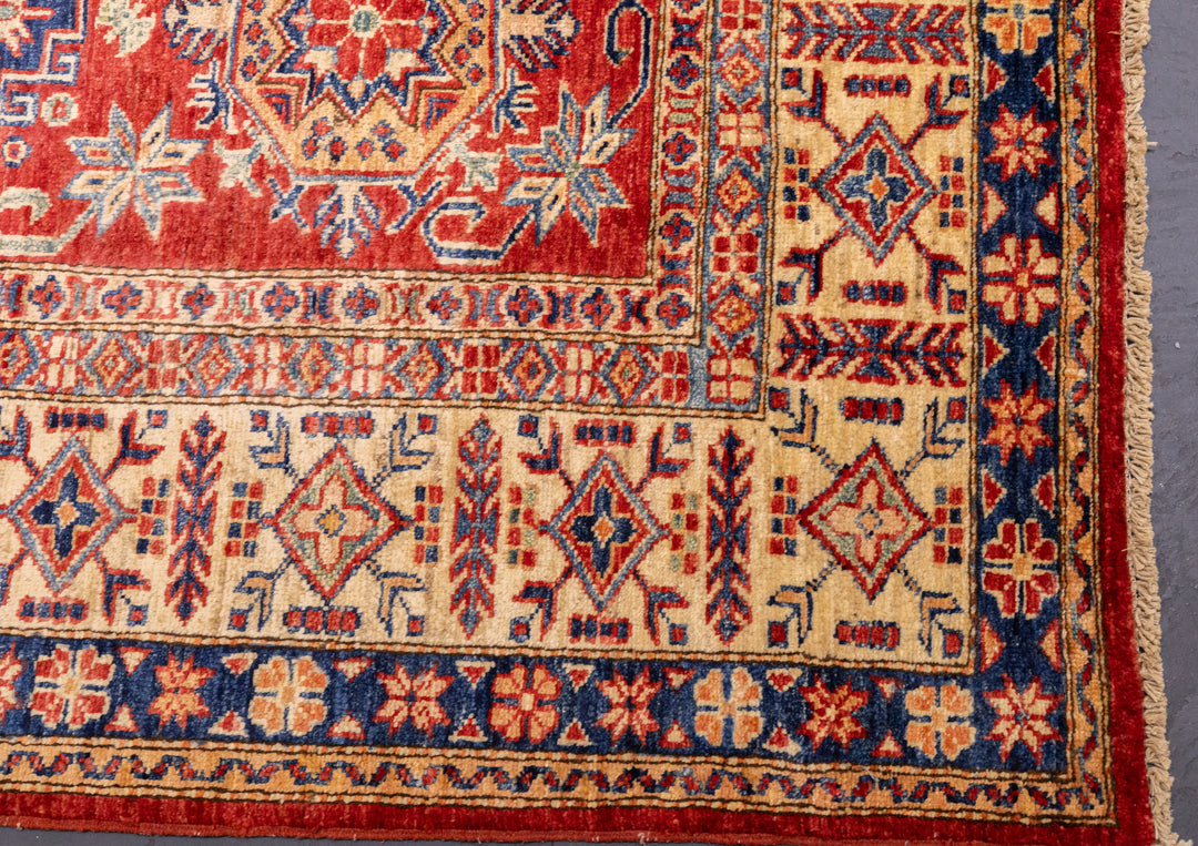 Pakistani post-WWII rug, generally scatters, with soft wool and curvilinear Persianate designs. Synthetic dyes, cotton foundations. Moderate to medium weaves.