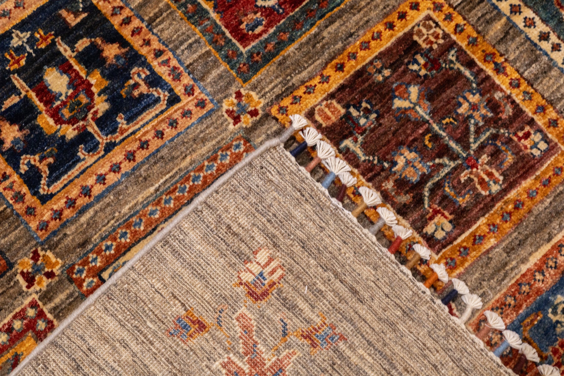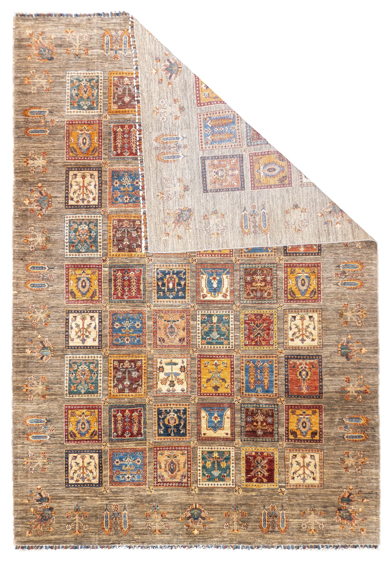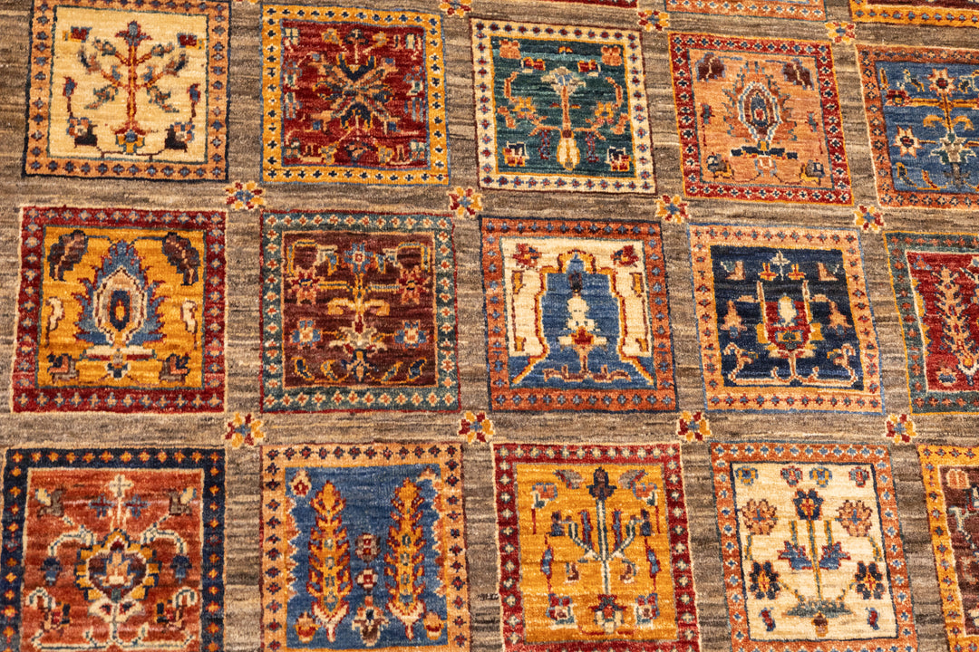 Wool pile rugs, usually scatter formats, woven by the Qashghai tribes of SW Persia (Fars Province), in moderate weave, uncluttered geometries and unshaded colours. From about 1900 onwards. Now copied by other weavers while retaining informal tribal character.