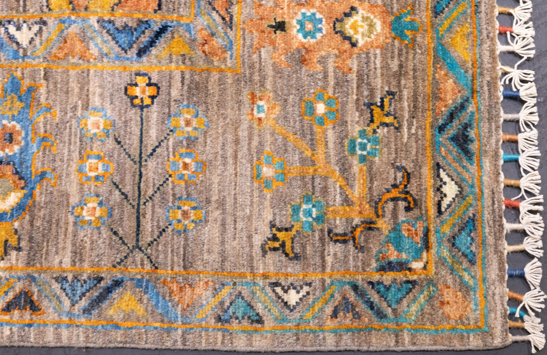 Wool pile rugs, usually scatter formats, woven by the Qashghai tribes of SW Persia (Fars Province), in moderate weave, uncluttered geometries and unshaded colours. From about 1900 onwards. Now copied by other weavers while retaining informal tribal character.