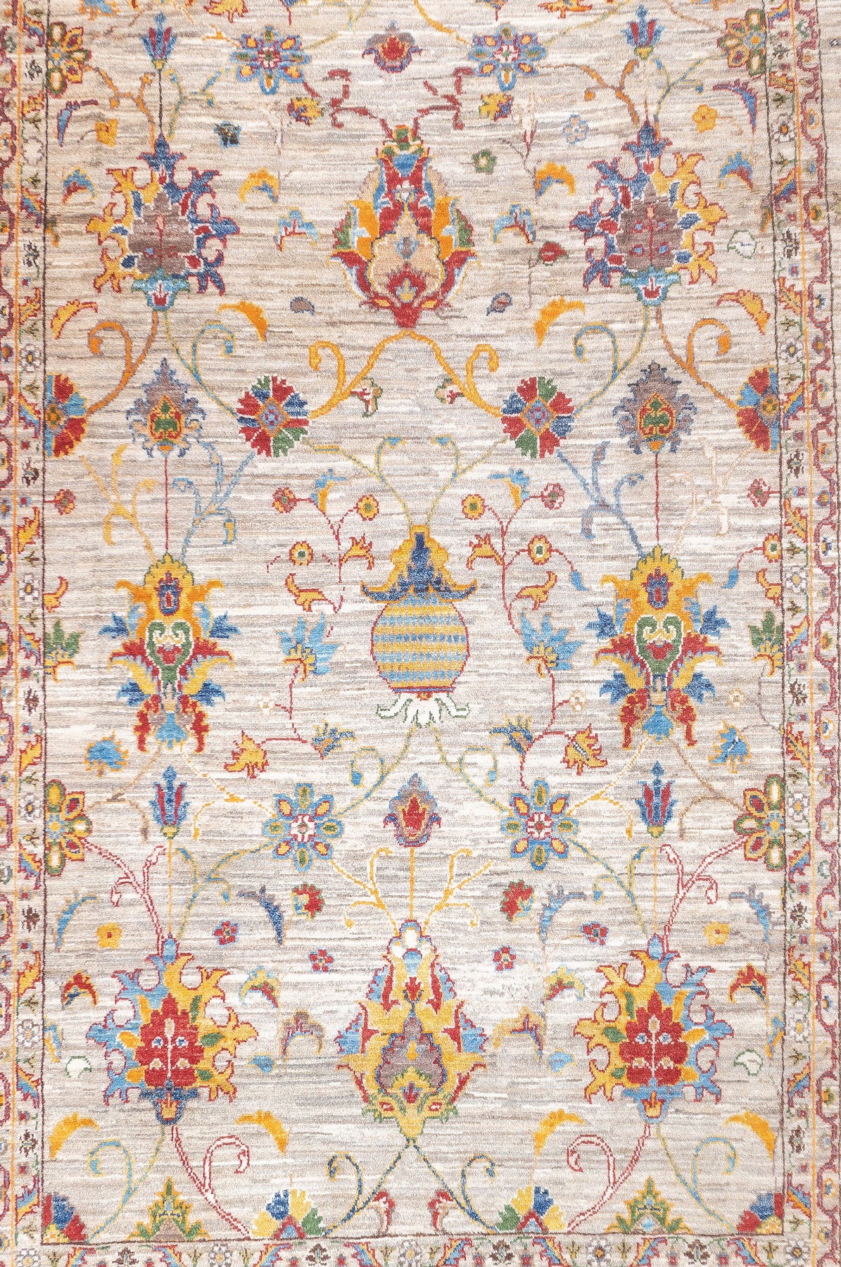 Wool pile rugs, usually scatter formats, woven by the Qashghai tribes of SW Persia (Fars Province), in moderate weave, uncluttered geometries and unshaded colours. From about 1900 onwards. Now copied by other weavers while retaining informal tribal character.