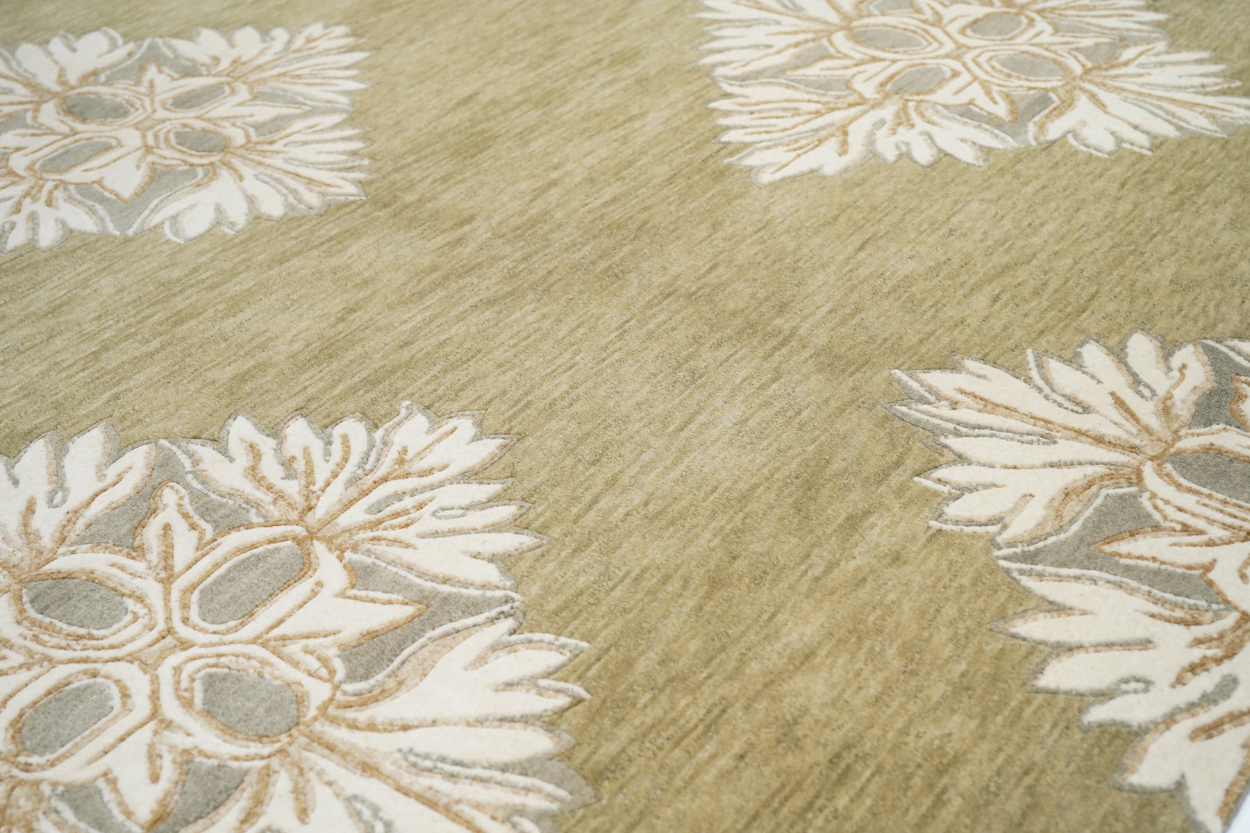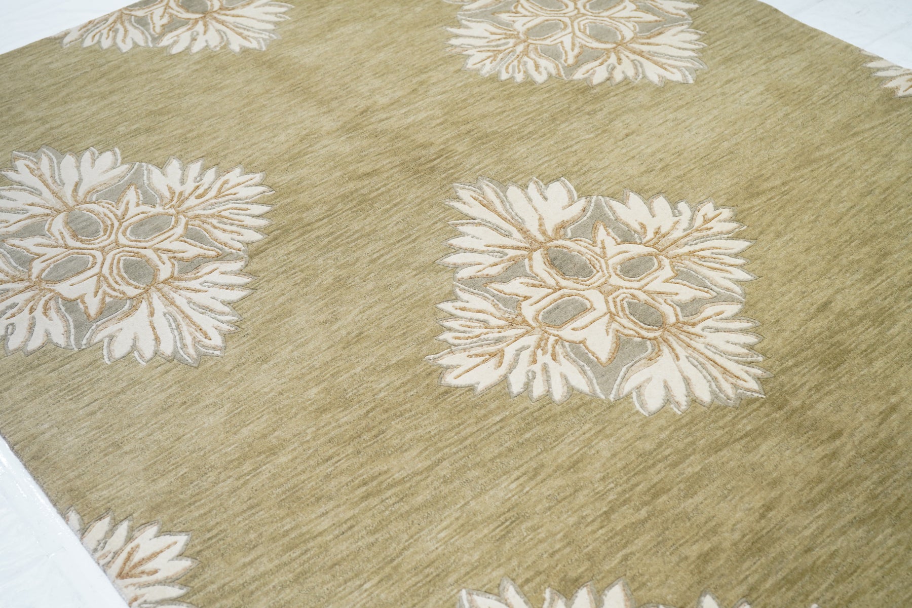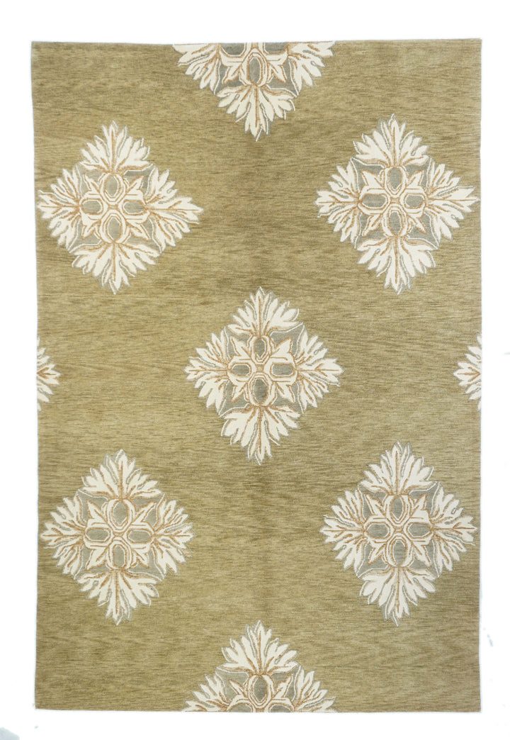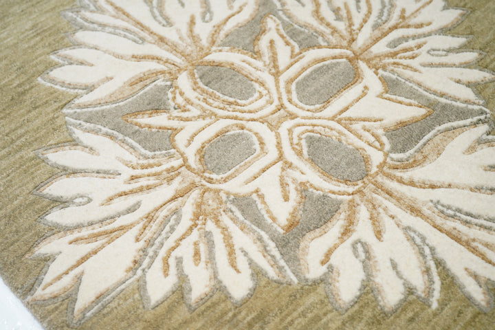 The generally small rugs of the plateau region, with dragon, tantric and allover patterns. Bright colors. Older are all wool, later with cotton wefts. A few large carpets. Shaggy runners and seating rugs.Large, often monochrome, carpets are now woven in Nepal by Tibetan refugees. Coarse to moderate weaves. Moderate to medium prices.