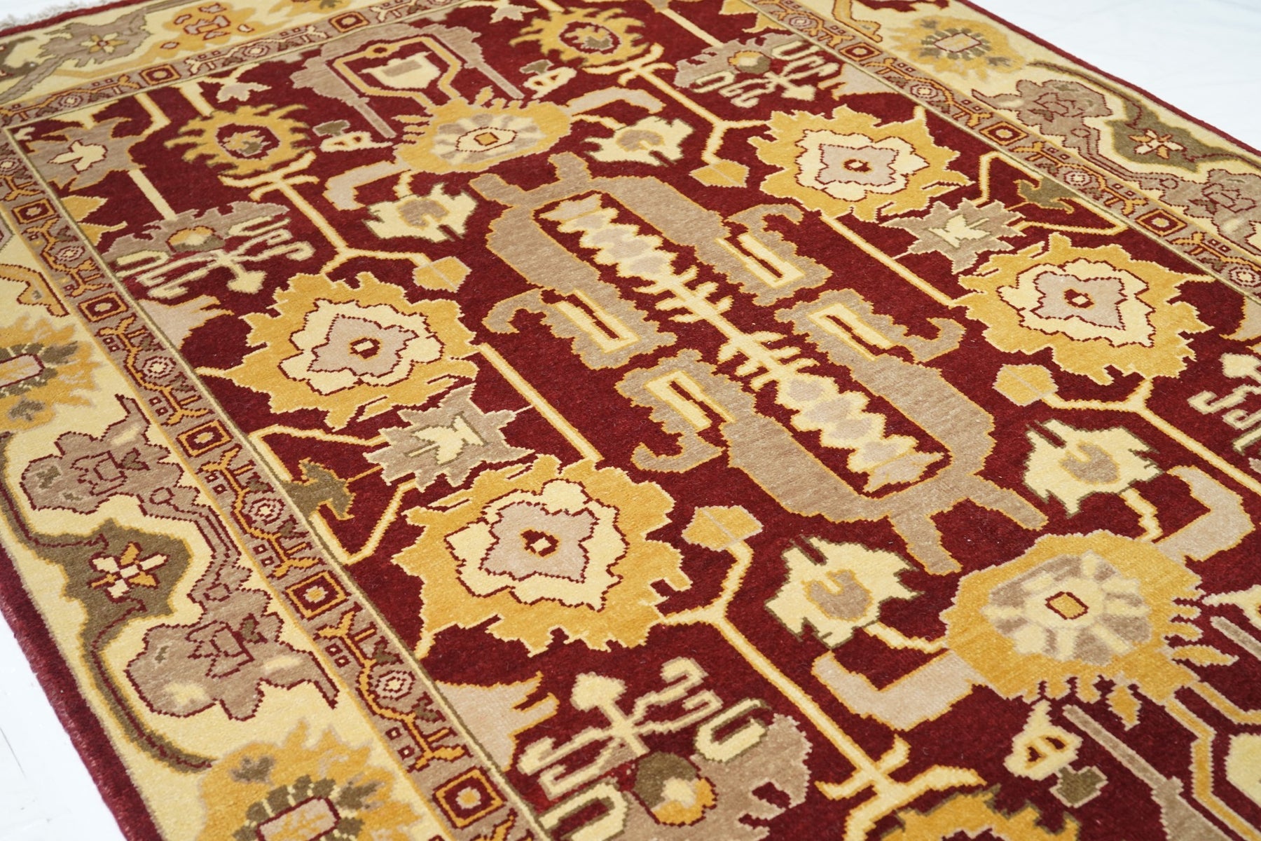 Town in Western Anatolia, weaving mostly room sizes, in coarse to moderate weave, high pile. Antiques are all wool, changing to cotton foundations in the 1920’s. Geometric or Persian-derived patterns, soft or strong palettes; allover or medallion. Informal execution. Carpets change with interior design fashions. Mostly carpets, some very large, also a few runners and scatters. No prayer rugs.