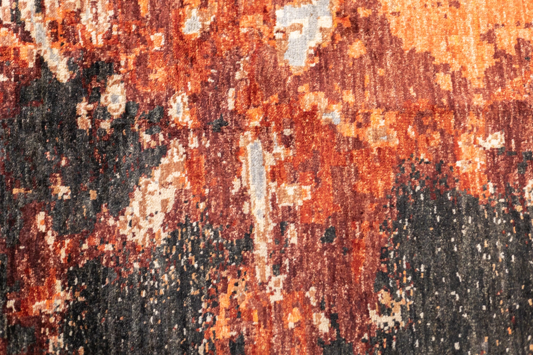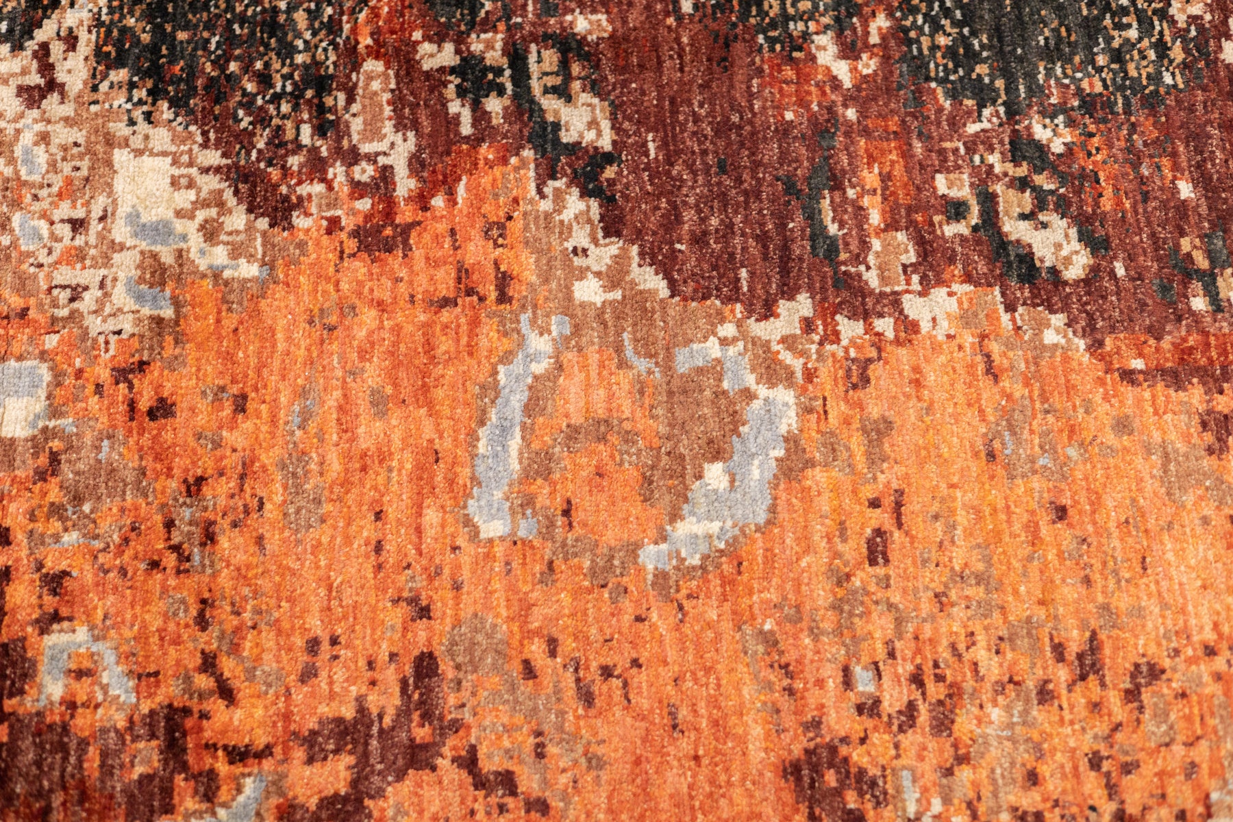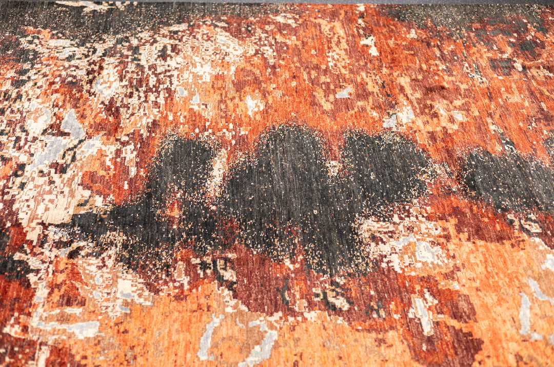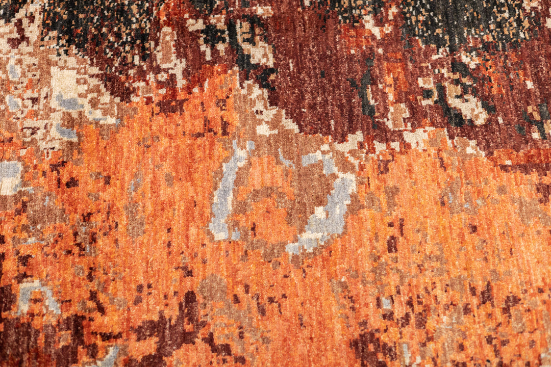 Recent trends including borderless, abstract, painterly, geometric, non-objective, non-traditional, restricted palette and textural variation (e.g., high and low pile). The contempo carpet generally eschews the traditional layouts, although fragments of classic designs may be used in a collage or montage manner. Often custom. Prices range from moderate to relatively expensive, depending on material, fineness and vendor.