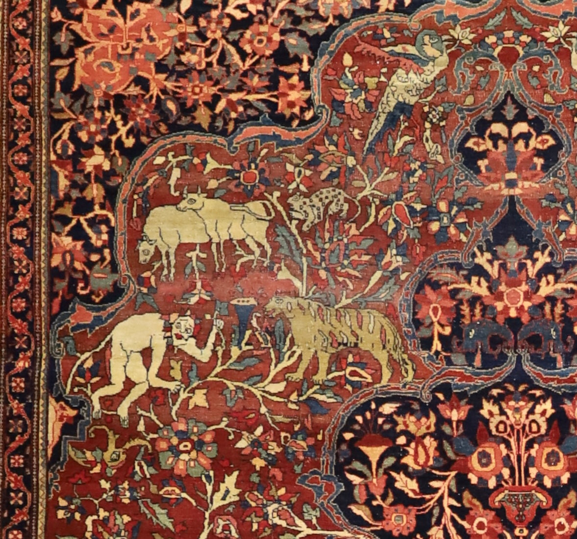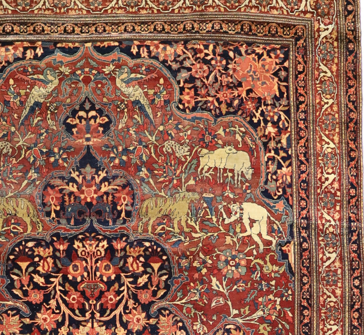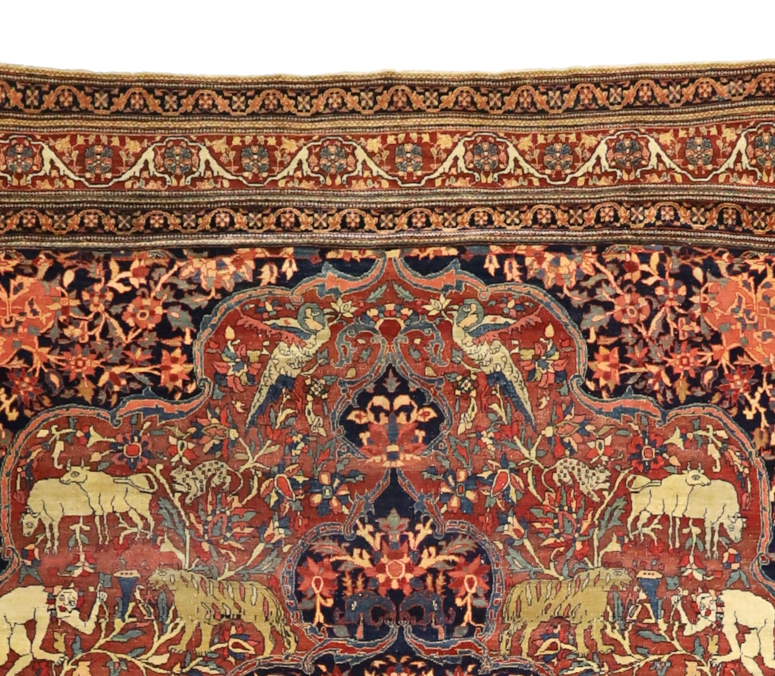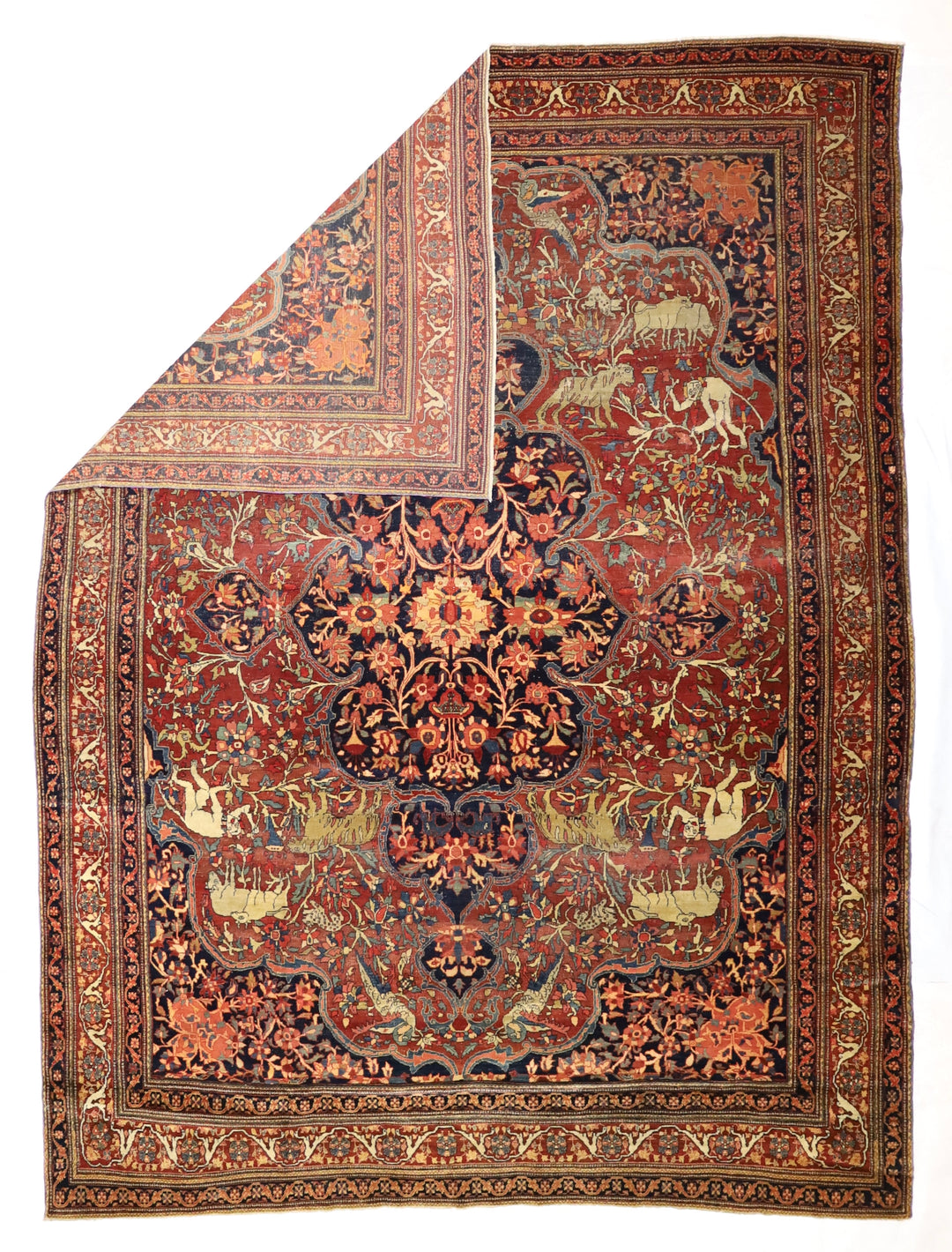 The scatter and room size pieces made in the Arak/Sultanabad area, between 1880 and 1910, with firm and leathery well-woven textures, and strong in red, navy and ecru tones, usually in medallion formats. A transition group between the earlier 19th century Farahans and the post-WWI Sarouks. Drawing is between curvilinear and angular.