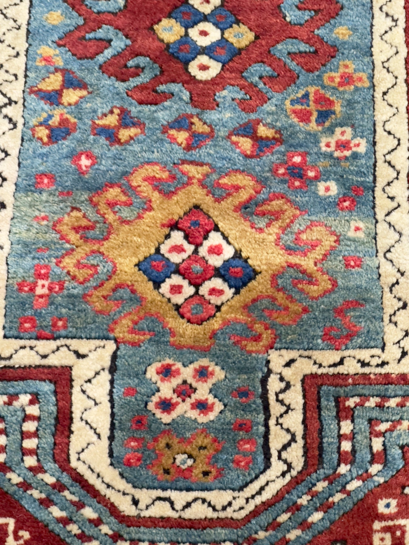SW Caucasus/Armenia. Boldly patterned, strongly colored, totally geometric, all wool, coarse to moderate weave, medium to long pile, scatter format pieces, in medallion, allover and prayer (directional) layouts, with numerous identified source villages: Karachof, Bordshaly, Sewan, Shulaver and Lori Pambak. Natural dyes, decorative to highly collectible. Often dated.