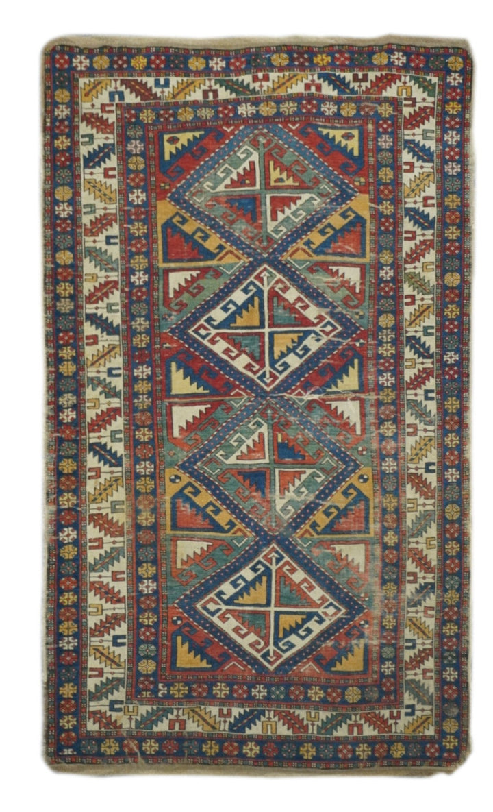 Eastern Caucasian, west Caspian Caucasian rugs, primarily scatters, in geometric layouts, some prayer, from a wide range of local villages. Marasali prayer rugs are considered as the best. Some pictorials. Wool warps, often cotton wefts. Lowish pile, moderate to fine weaves. Natural dyes exclusively until 1890's, then synthetics appear.