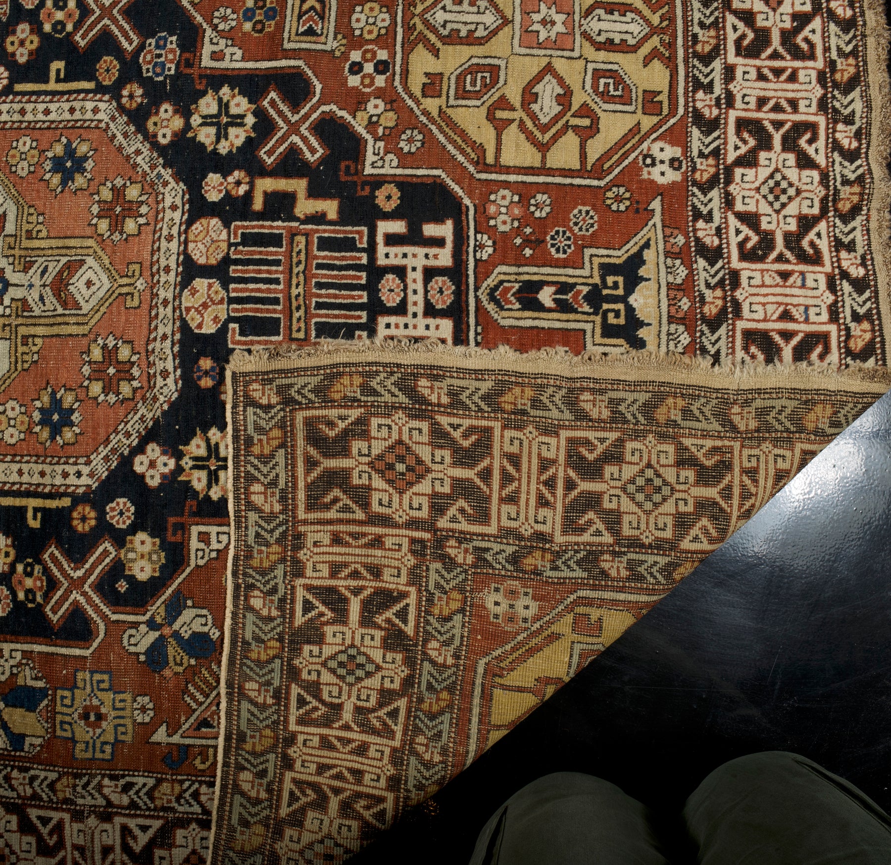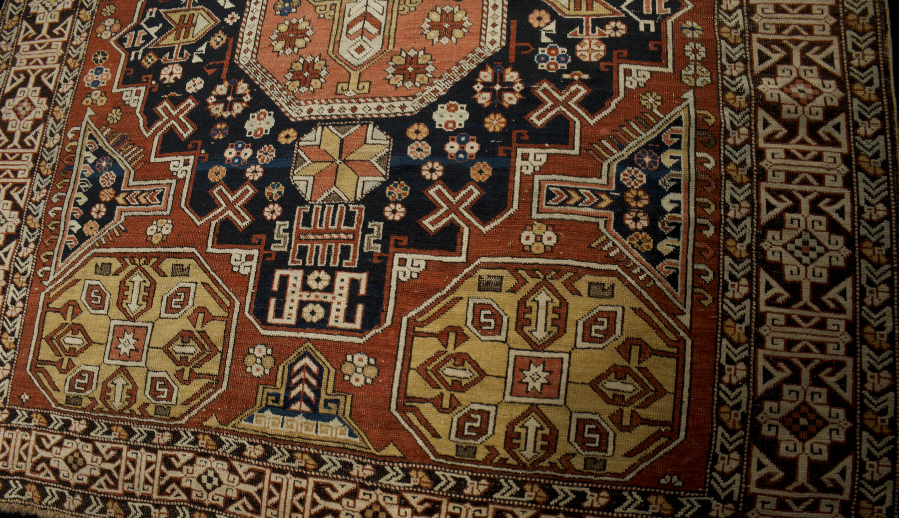 Eastern Caucasian, west Caspian Caucasian rugs, primarily scatters, in geometric layouts, some prayer, from a wide range of local villages. Marasali prayer rugs are considered as the best.. Some pictorials. Wool warps, often cotton wefts. Lowish pile, moderate to fine weaves. Natural dyes exclusively until 1890’s, then synthetics appear.