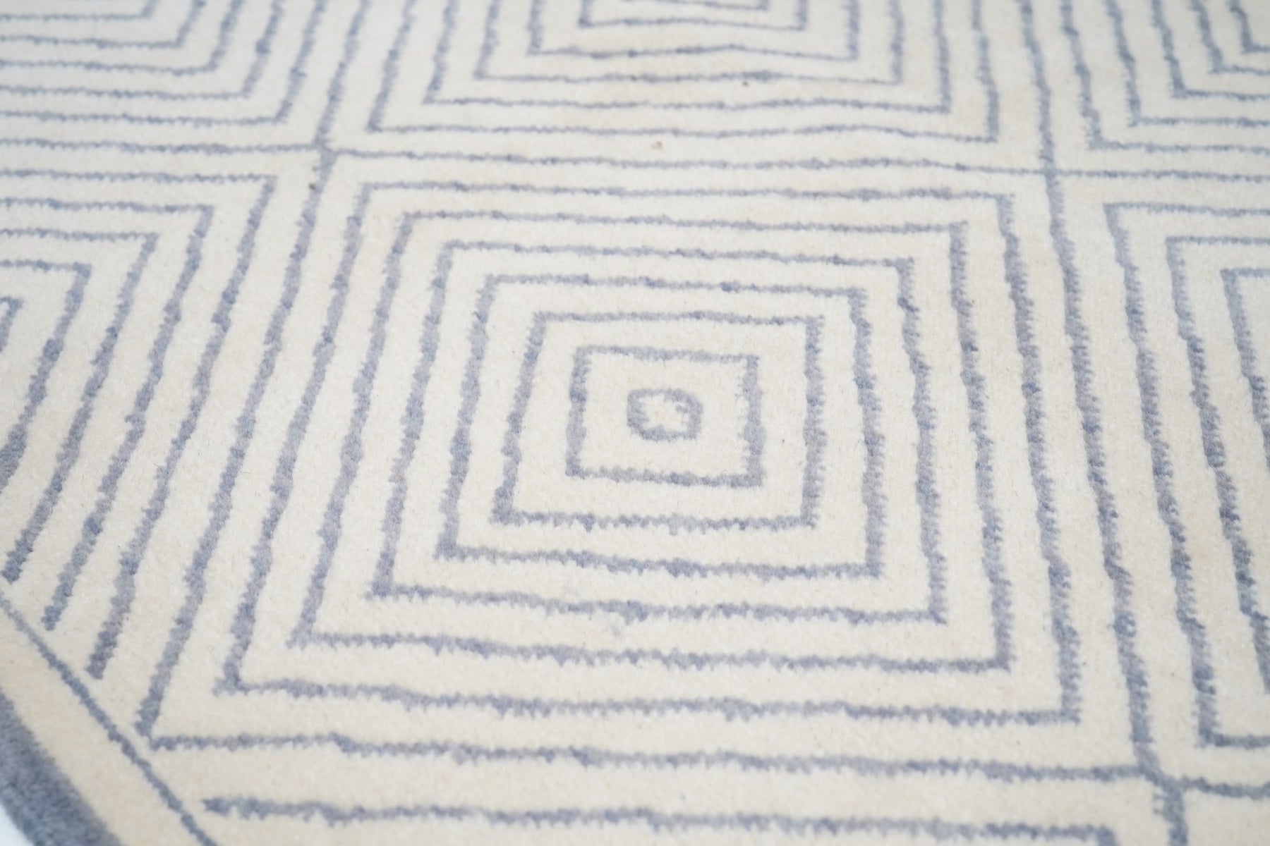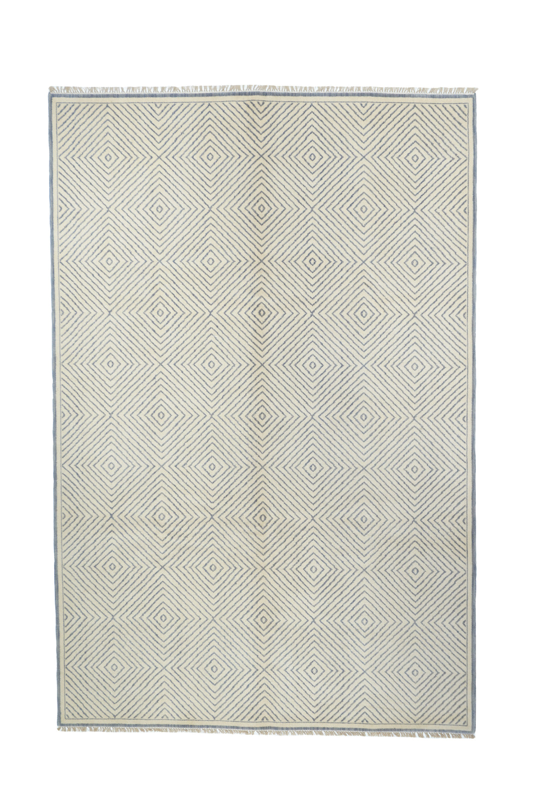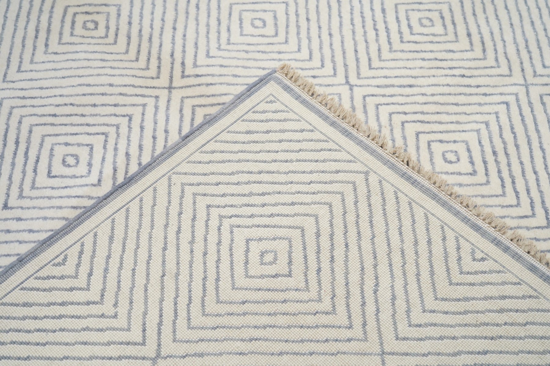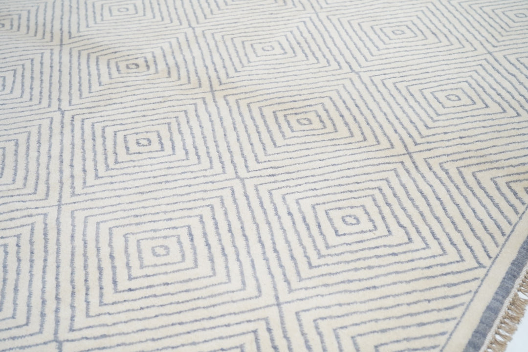 Recent trends including borderless, abstract, painterly, geometric, non-objective, non-traditional, restricted palette and textural variation (e.g., high and low pile). The contempo rug generally eschews the traditional layouts, although fragments of classic designs may be used in a collage or montage manner.