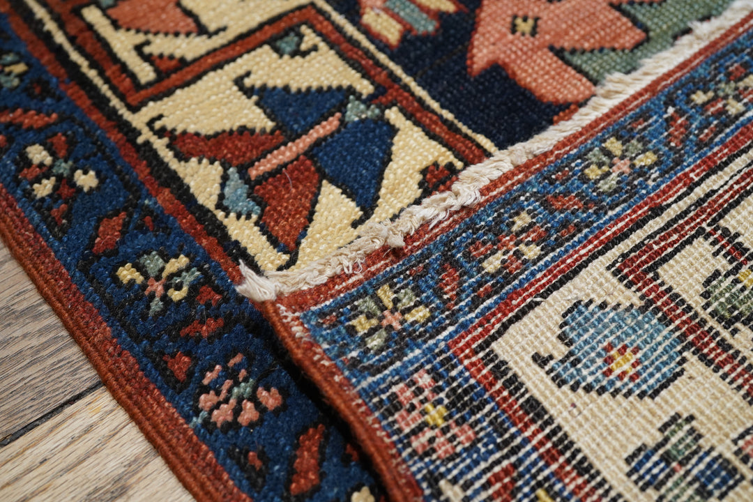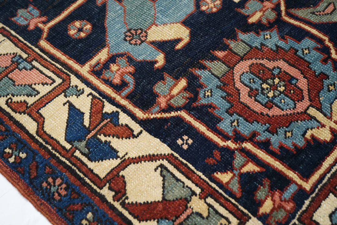 A higher grade of Heriz carpets, usually in medallion designs, with crisp natural dyes, and primarily woven between 1900 and 1930. Red field, navy border is the most popular combination. Semi-geometric. No town of ‘Serapi’. Robustly woven on cotton, with Turkish knots. Moderate weave. Expensive.