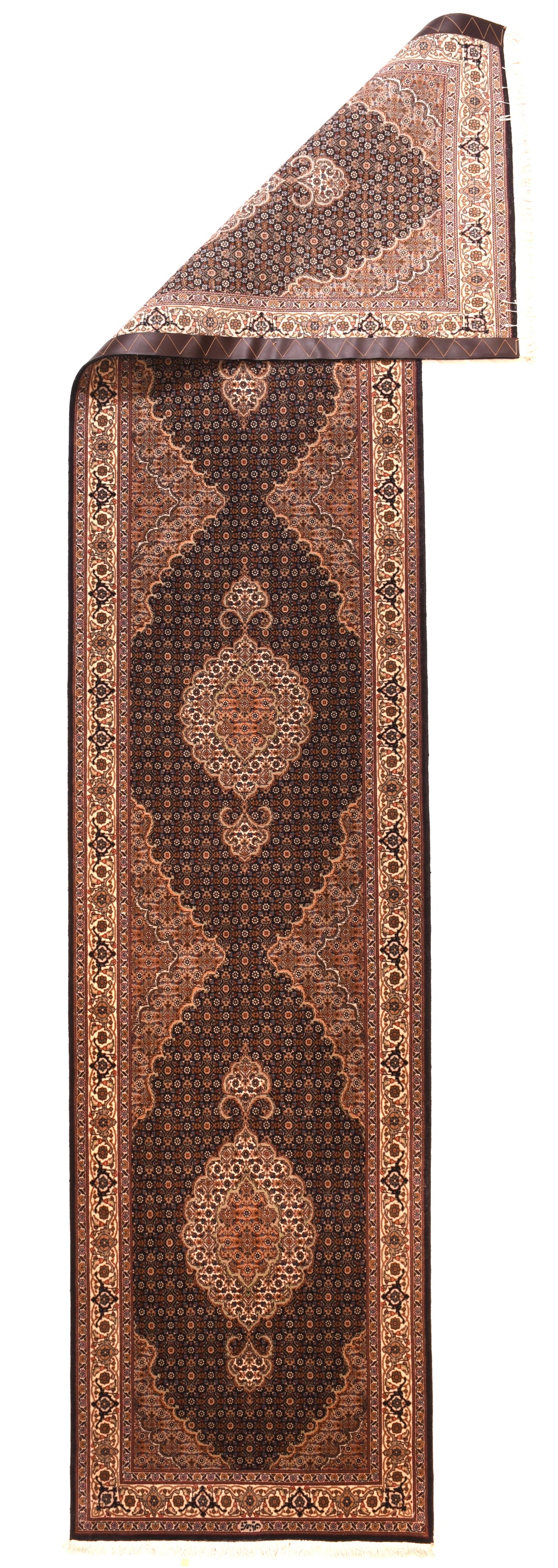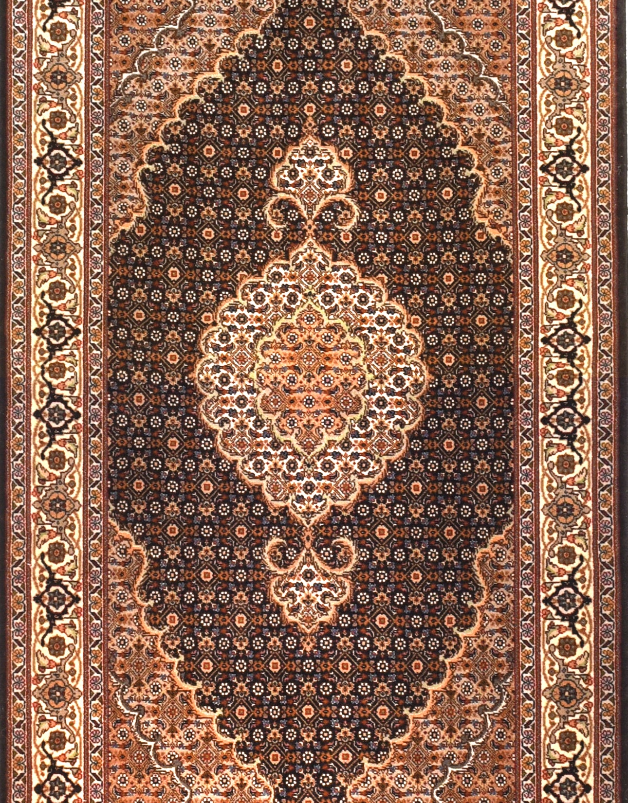 The enormous output of carpets and scatters in virtually every style: medallion, centralized, directional or allover, trein a variety of densities from moderate to extremely fine, in wool, silk and combined, with primarily curvilinear drawing, adapted often from classical or local styles. Prayer rugs, pictorials and mansion-sized pieces. See also Hajji Jalilli Tabriz. Brisk pile, neat drawing, balanced compositions. More popular in Europe and America. Prices from modest to impossible.