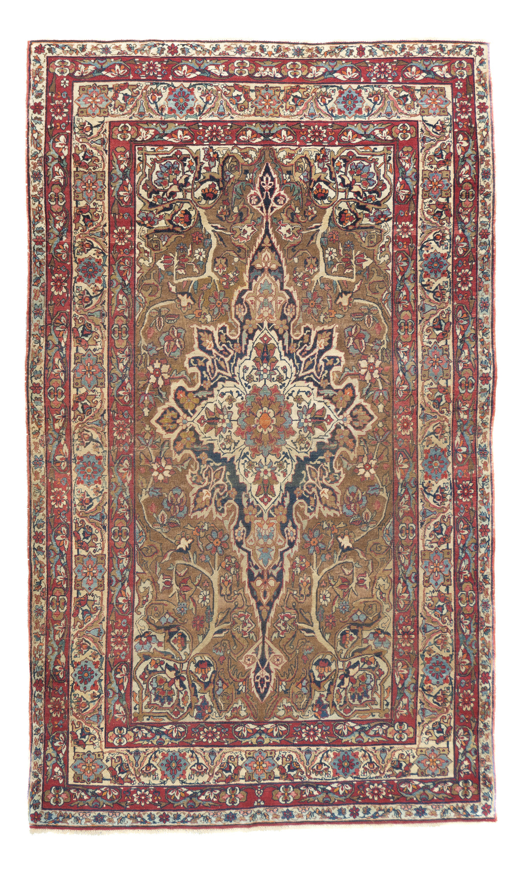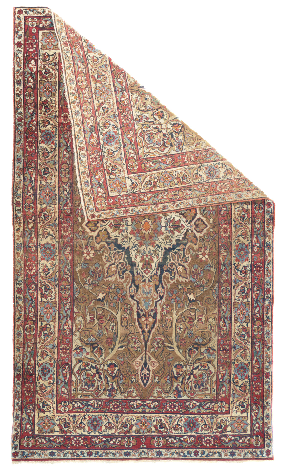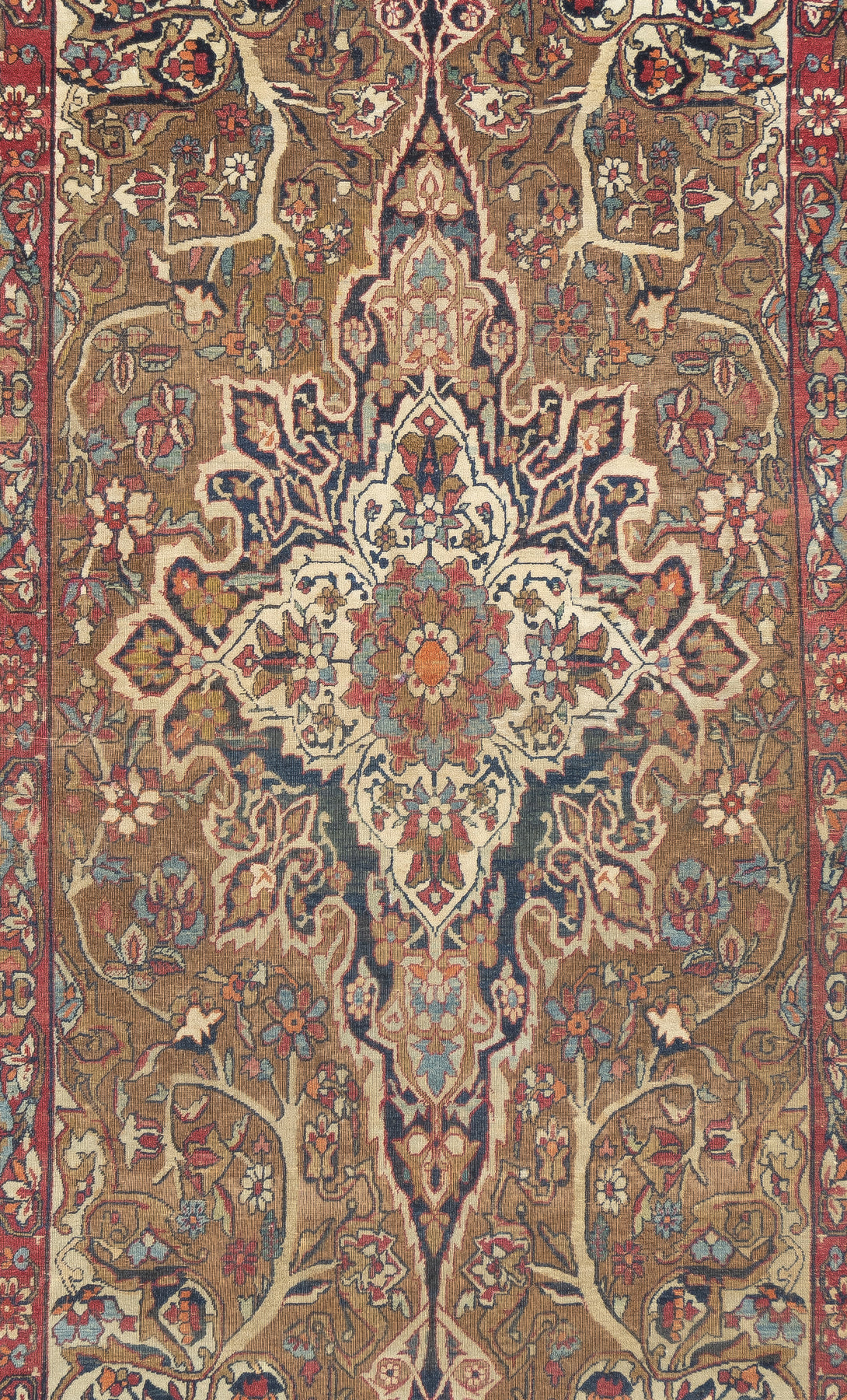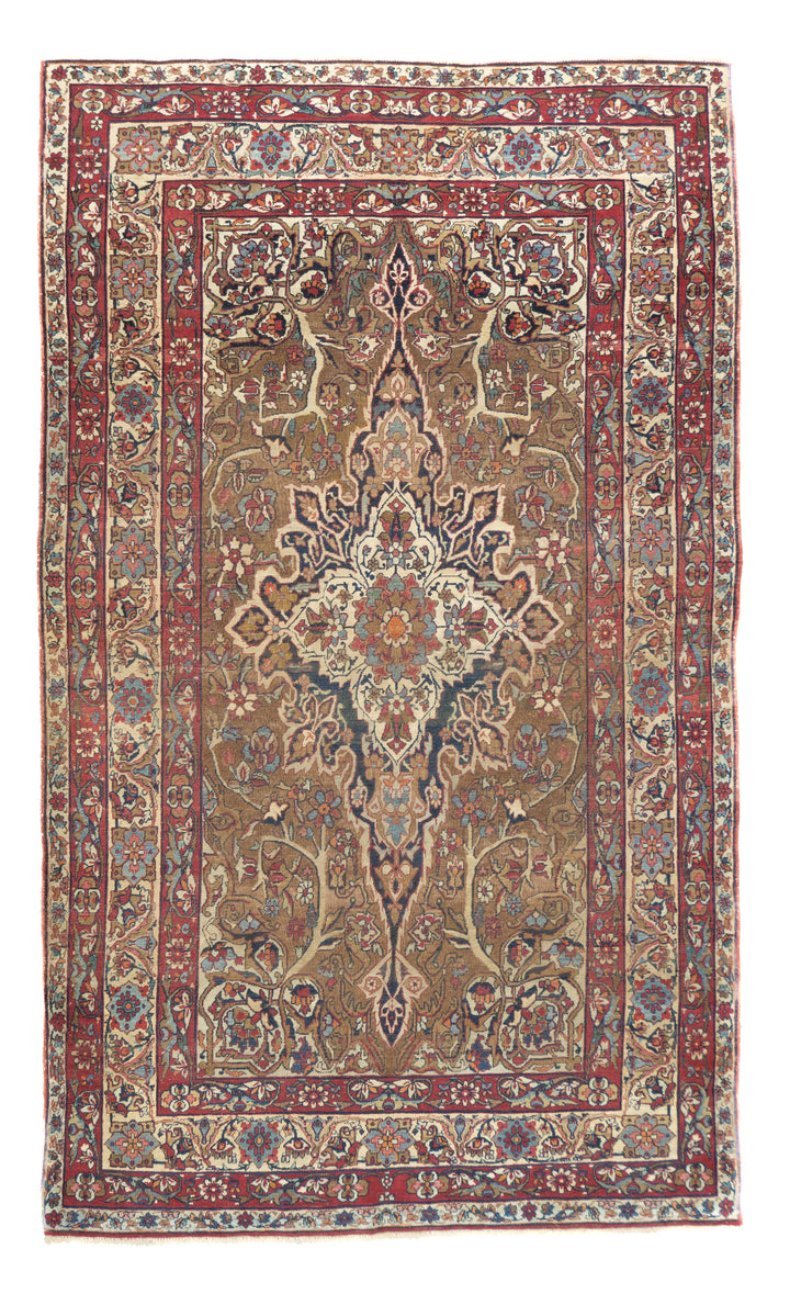 A trade term applied to better quality pre-WWI Kermans. ‘Laver’ is corruption of ‘Ravar’, a town near Kerman city, reputed to have woven some of the finest and best Revival Period Kermans. Scatter to mansion sizes. Cotton foundations, Fine to very fine. Natural dyes only.