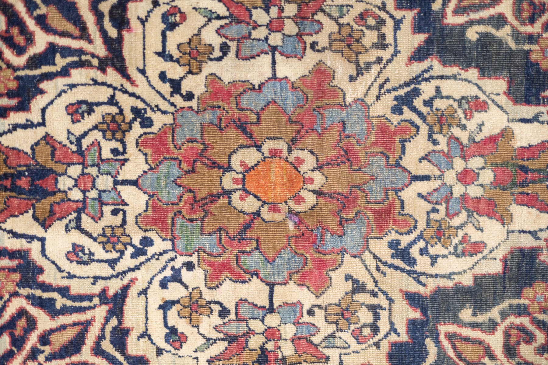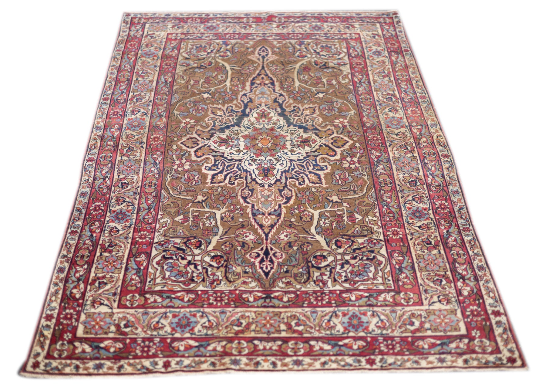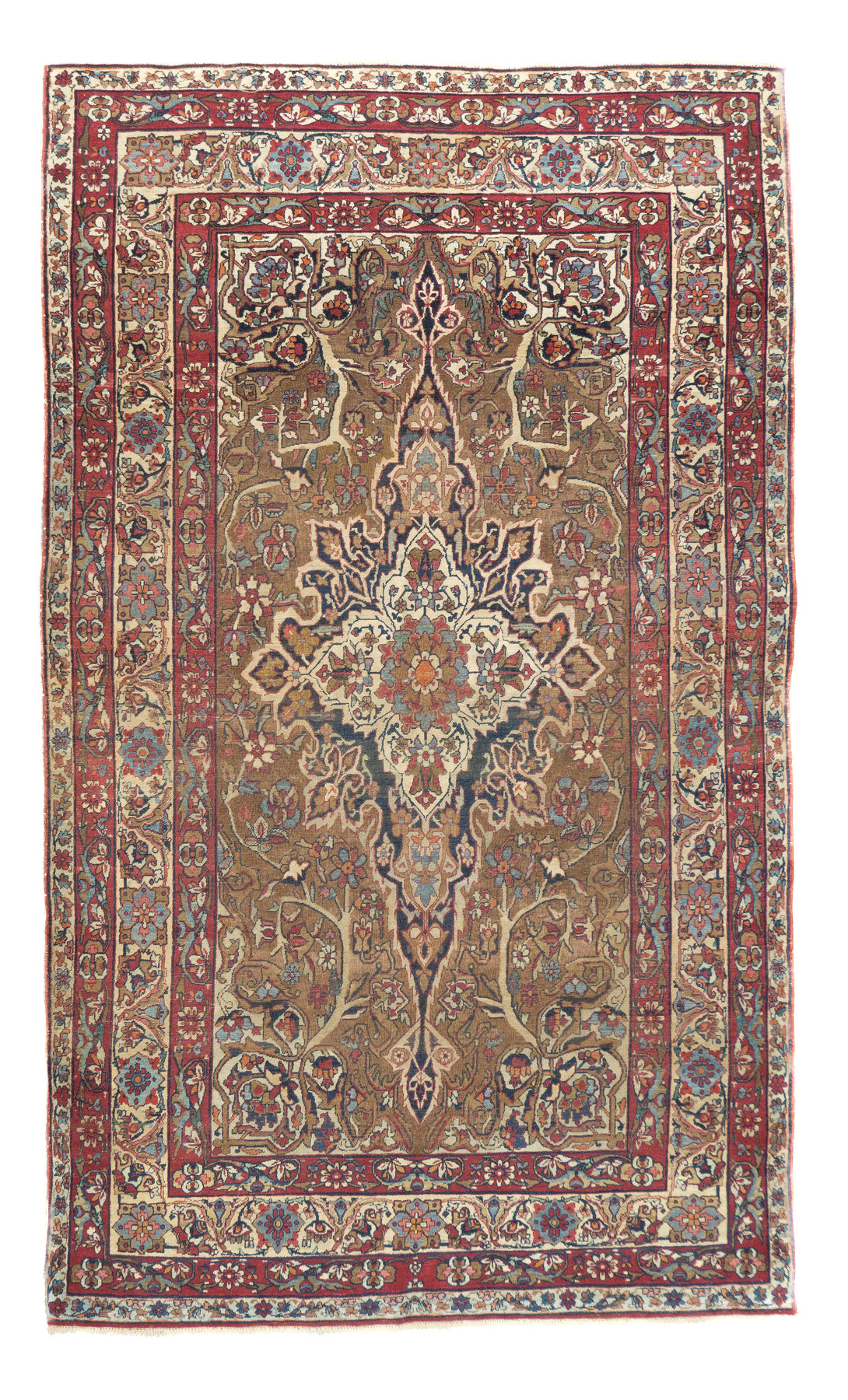 A trade term applied to better quality pre-WWI Kermans. ‘Laver’ is corruption of ‘Ravar’, a town near Kerman city, reputed to have woven some of the finest and best Revival Period Kermans. Scatter to mansion sizes. Cotton foundations, Fine to very fine. Natural dyes only.