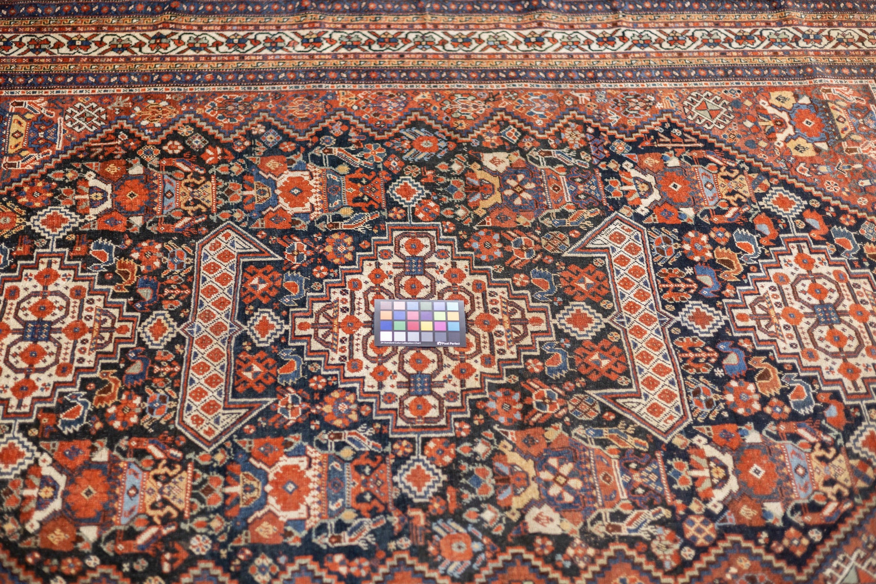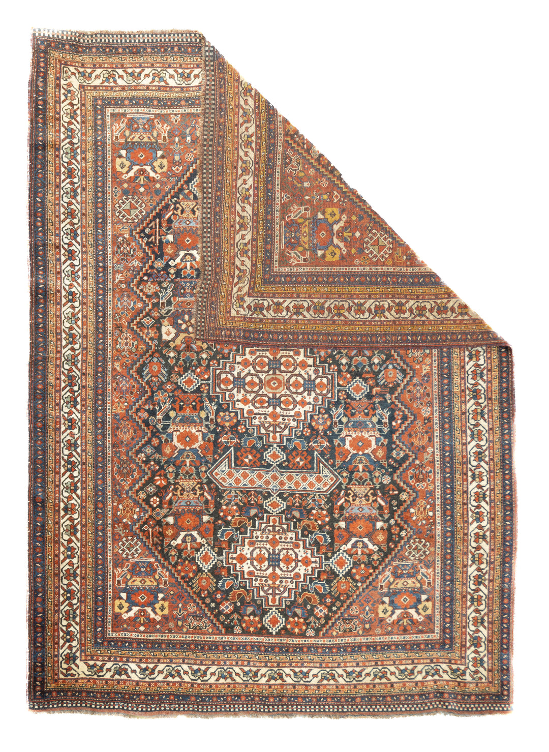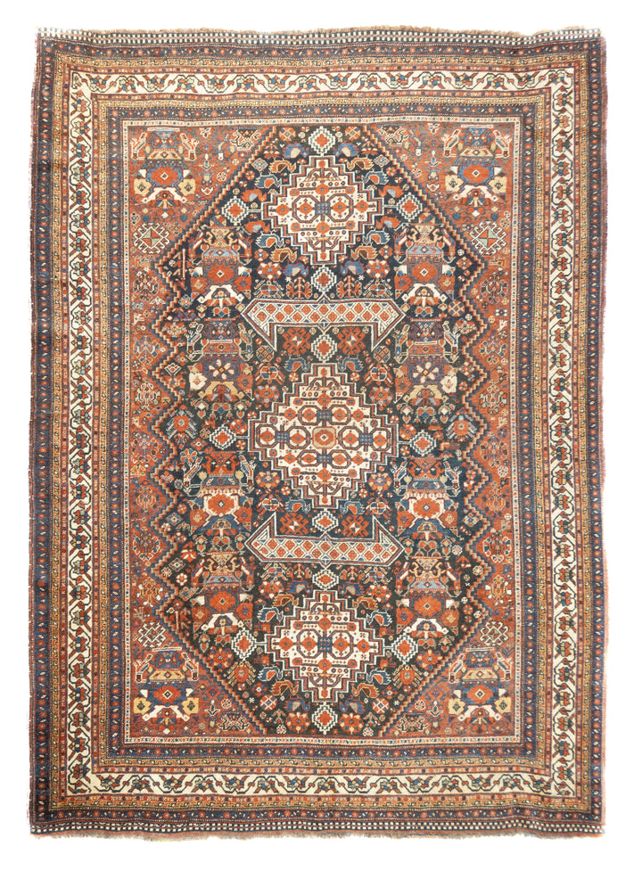 The best SW Persian, Fars Province nomadic rugs, mostly in scatter formats. Geometric Gabbehs, lion rugs, adapted Persian curvilinear styles. Some well-woven prayer rugs. All-wool constructions. Pictorial rugs. Weaving goes back to at least the mid-19th century. Excellent wool quality.
