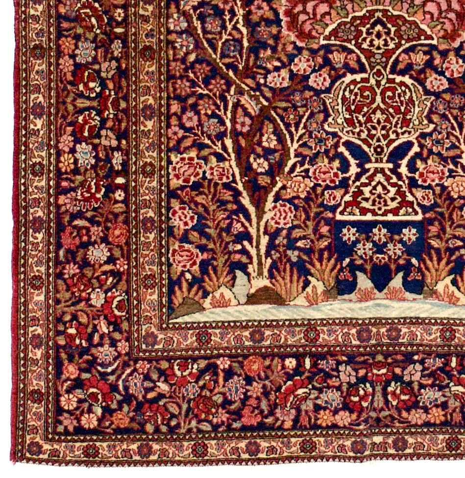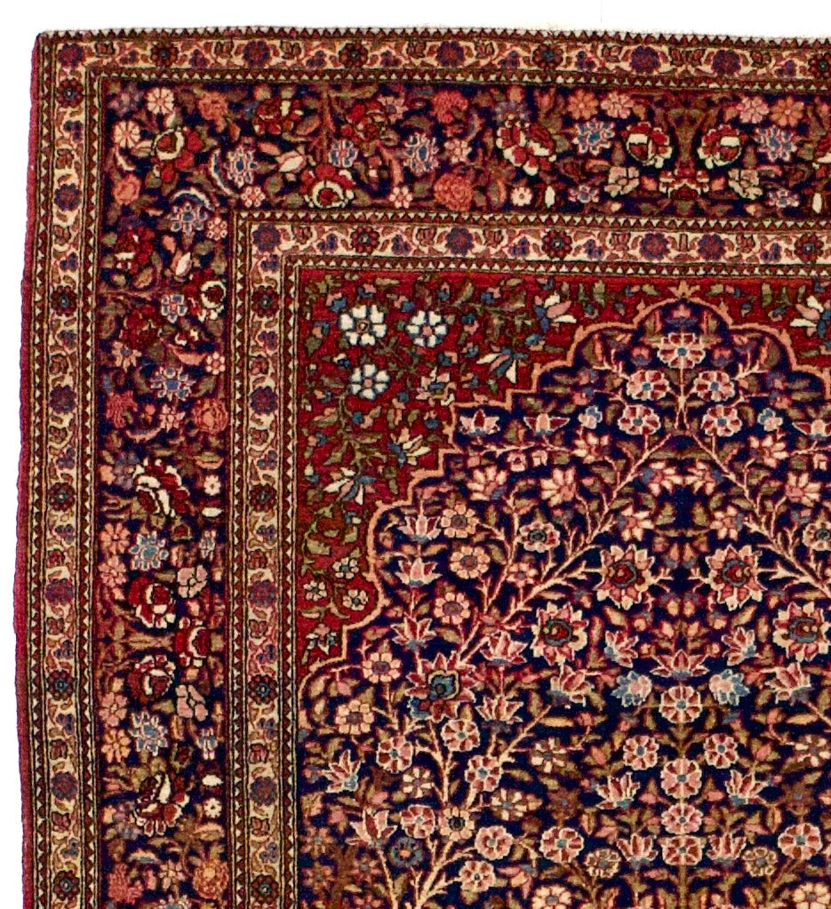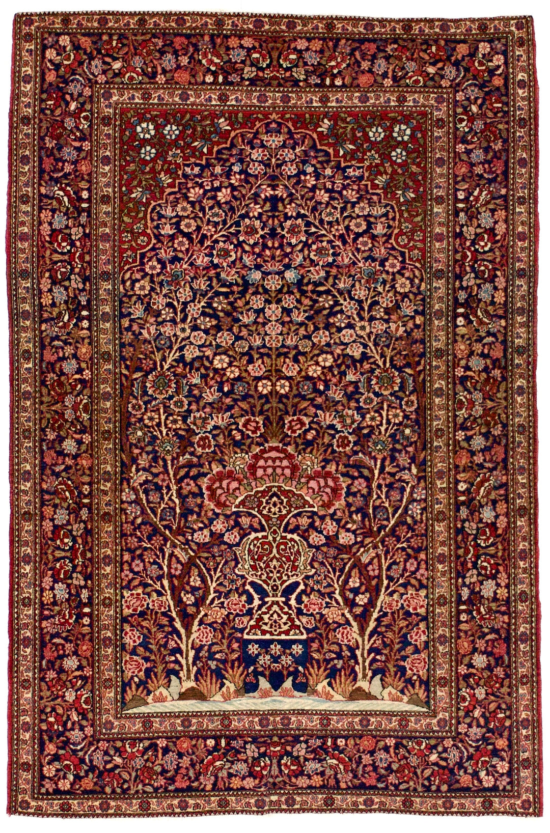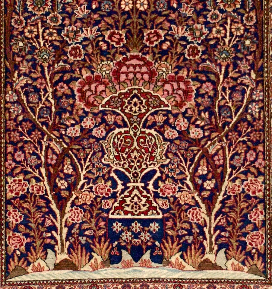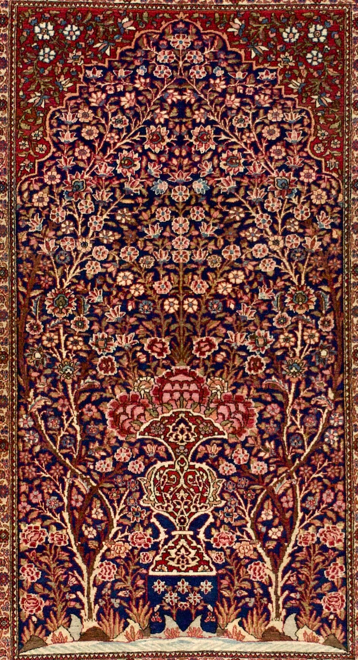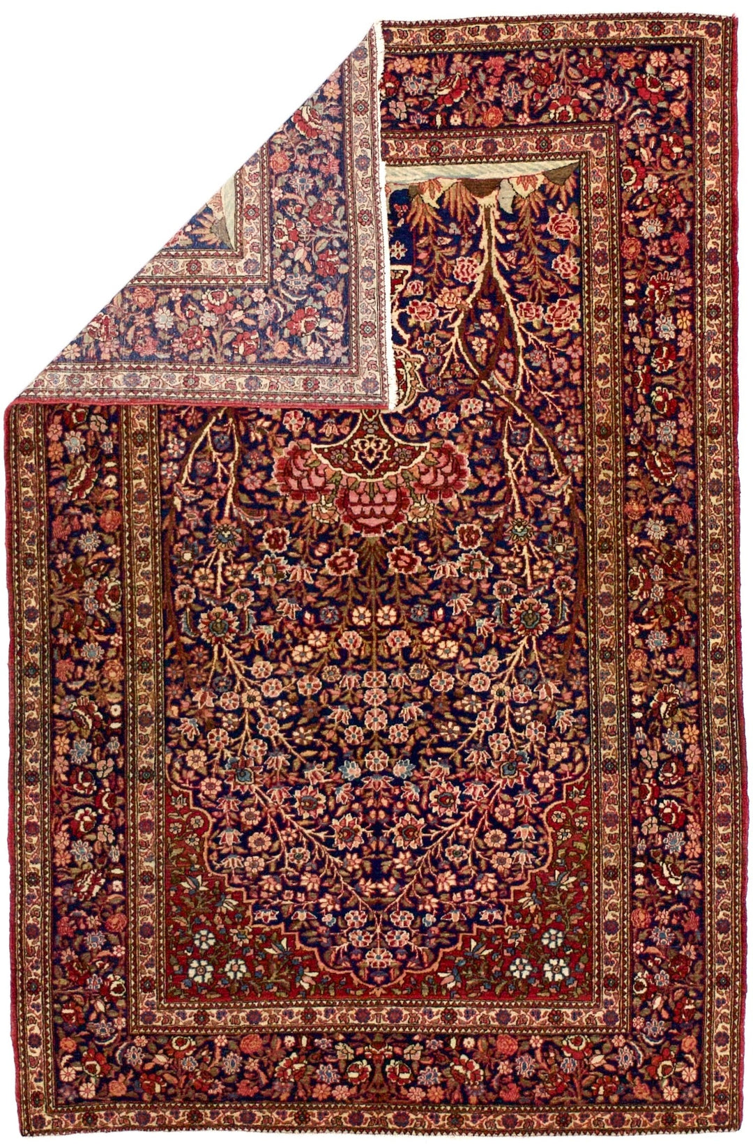 The picturesque, old Persian capital, which since the early 20th century has woven fine or extremely fine scatters to large carpets, often in complex medallion or allover layouts, with crisp colours, and generally ivory fields and red borders. Weaving began with Ahmad in the 1920’s. Serafian is one of the better known recent weavers. Isfahans are often signed. Short, velvety pile. A Persian’s Persian rug.