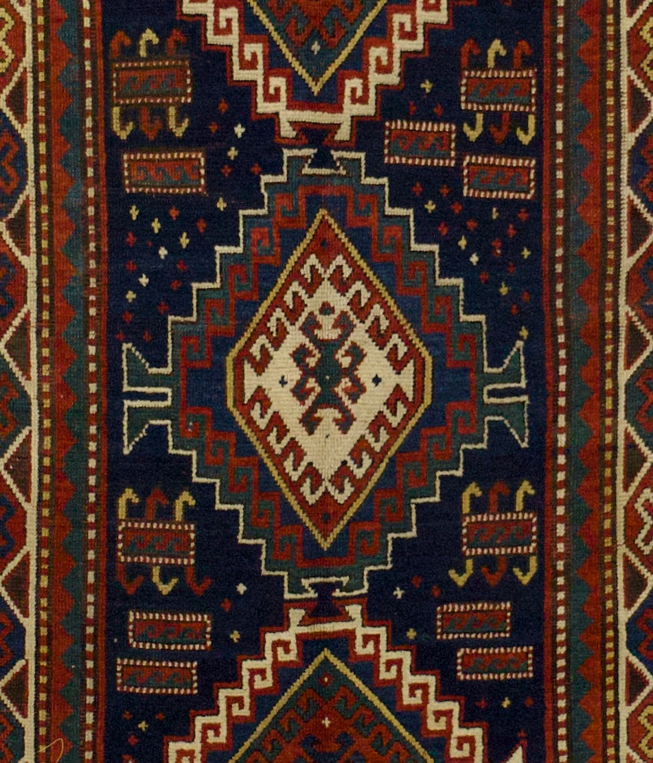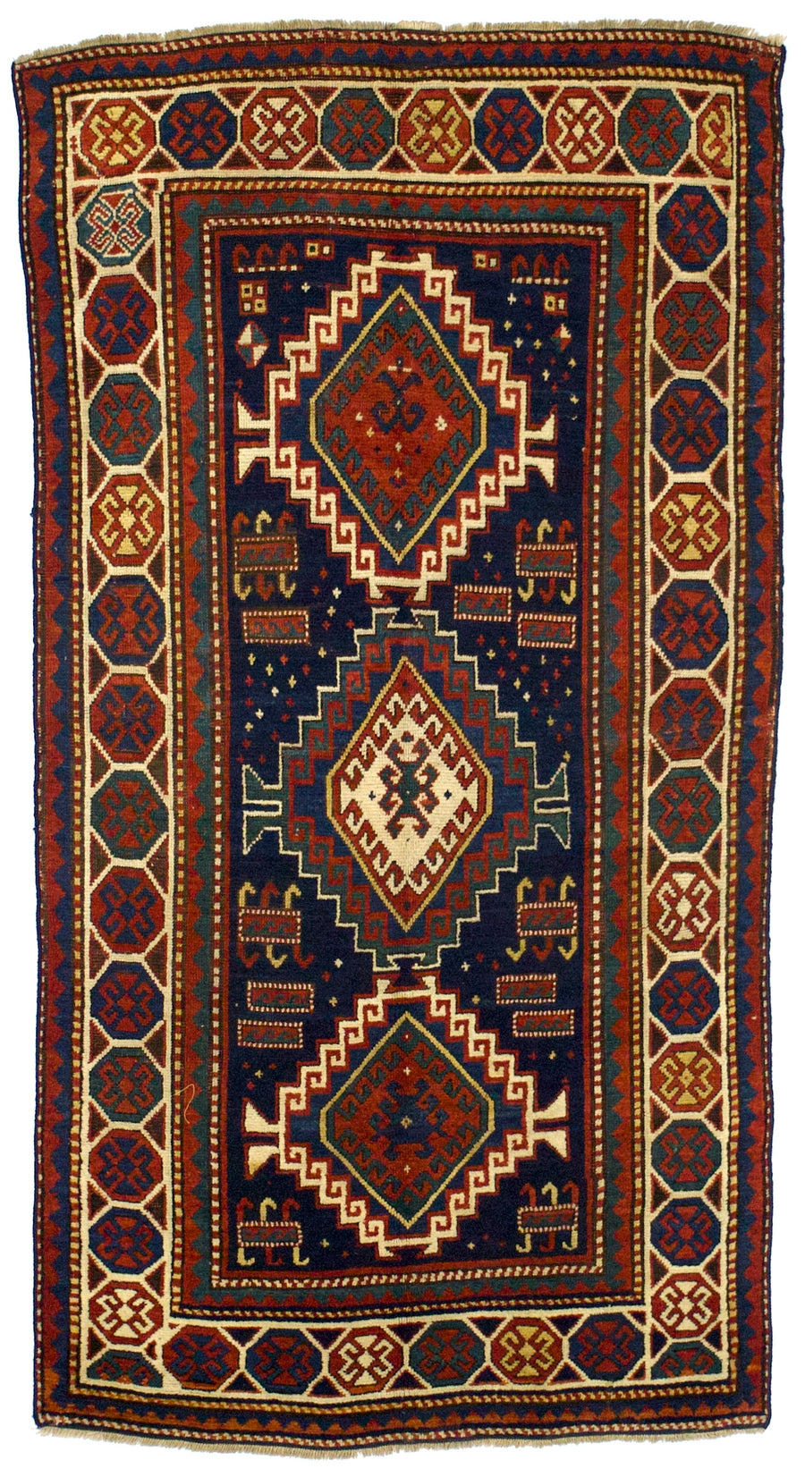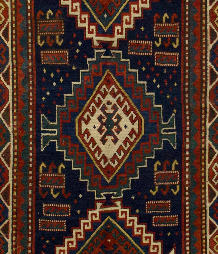 SW Caucasus/Armenia. Boldly patterned, strongly coloured, totally geometric, all wool, coarse to moderate weave, medium to long pile, scatter format pieces, in medallion, allover and prayer (directional) layouts, with numerous identified source villages: Karachof, Bordshaly, Sewan, Shulaver and Lori Pambak. Natural dyes, decorative to highly collectible. Often dated.