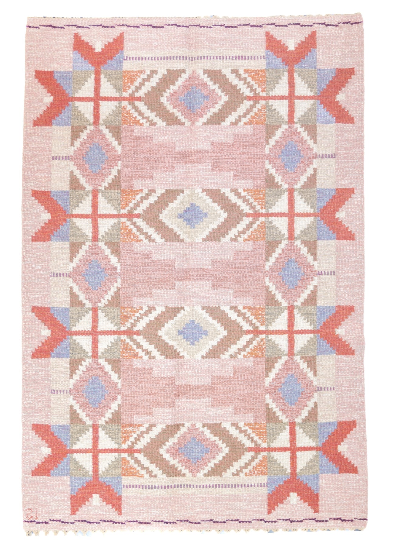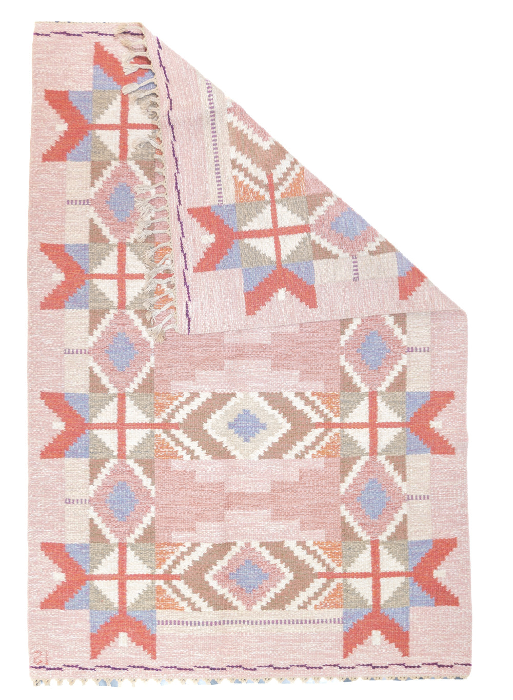 Fine Vintage Swedish Kilim Flat Weave Wool Rug 4'6'' x 6'9''