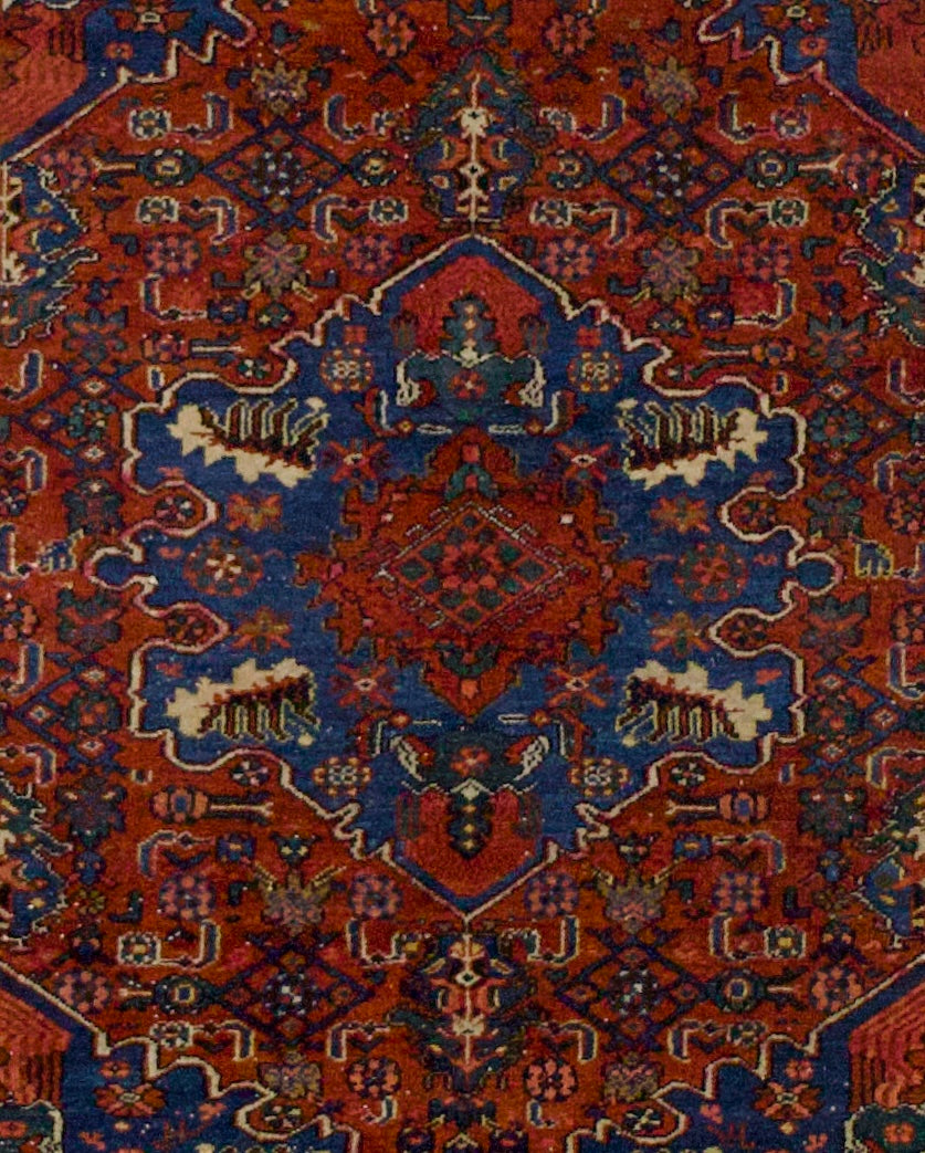 A large town in the Greater Hamadan Weaving Area, specializing in single-wefted scatters, room sizes, gallery carpets, long rugs and occasional runners. Numerous satellite villages. Wide range of characteristic medallion, centralized and allover patterns, some curvilinear. Moderate to medium weave.