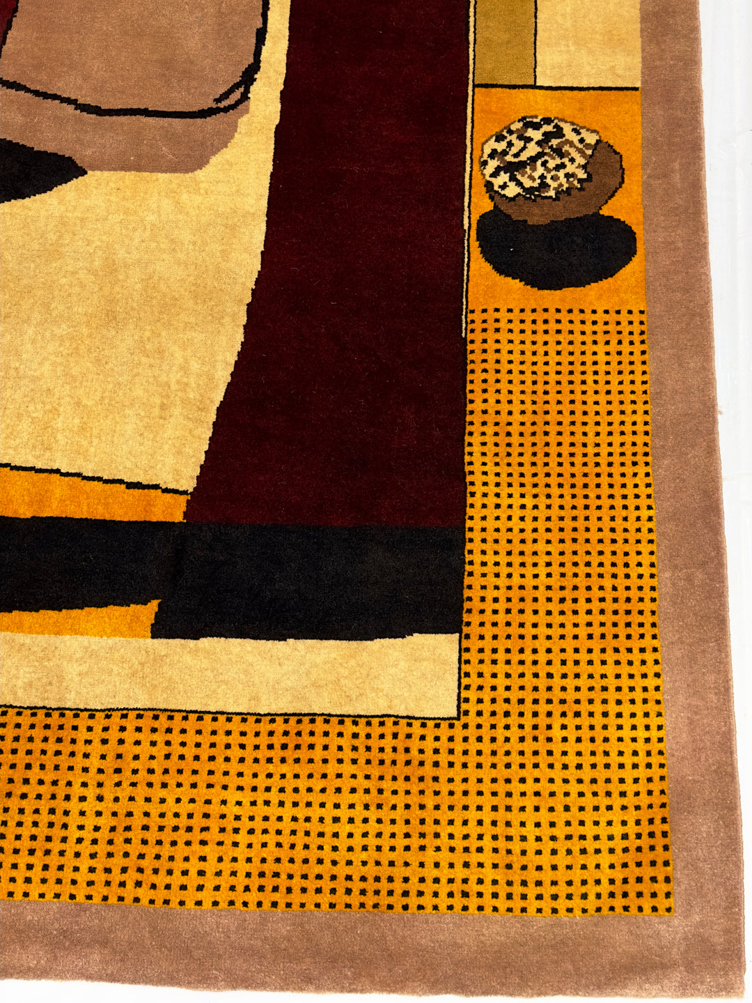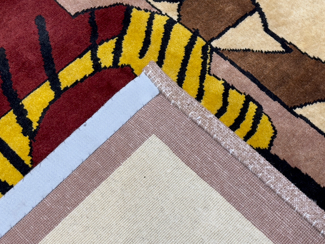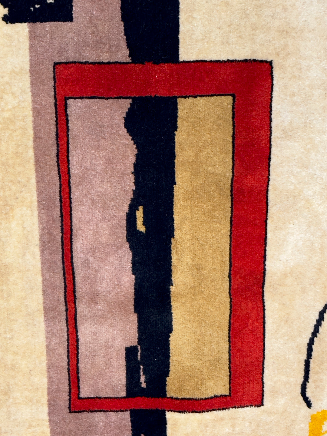 In particular, the NE Chinese room size, scatter, runner and round pieces of the 1920’s and 30’s with purely abstract, or Chinese-y designs, in either sharp or somewhat muted palettes. Asymmetric patterns, border violations or total border omission. Mostly for American market. Moderate weaves.