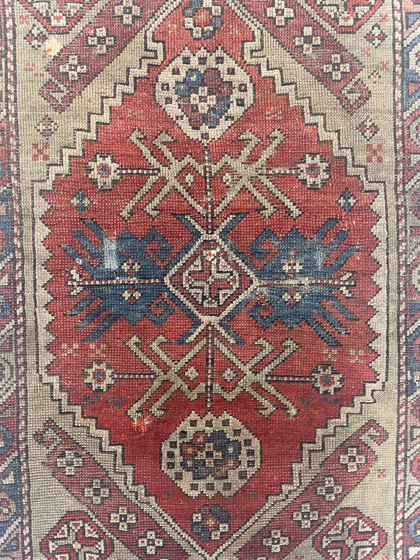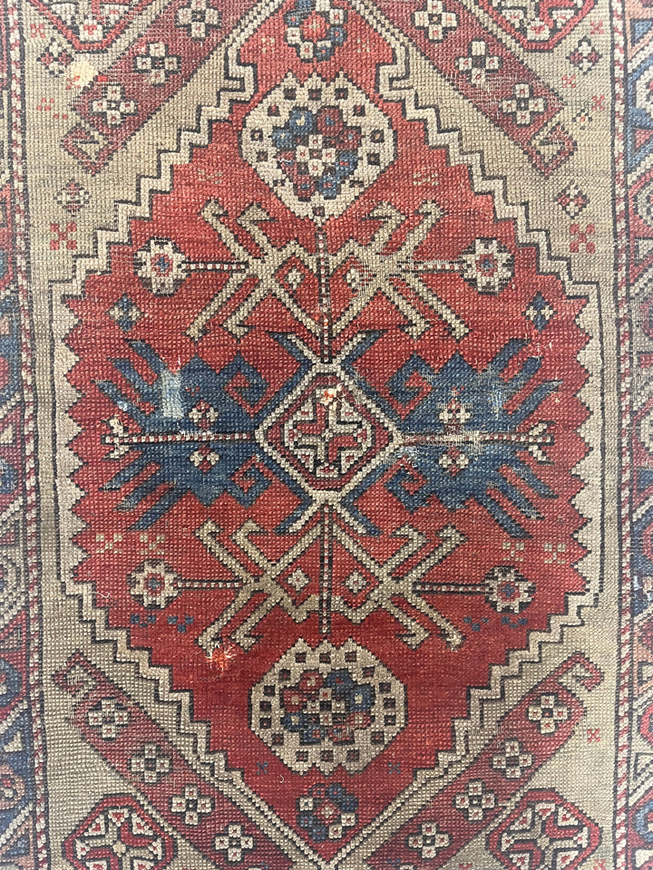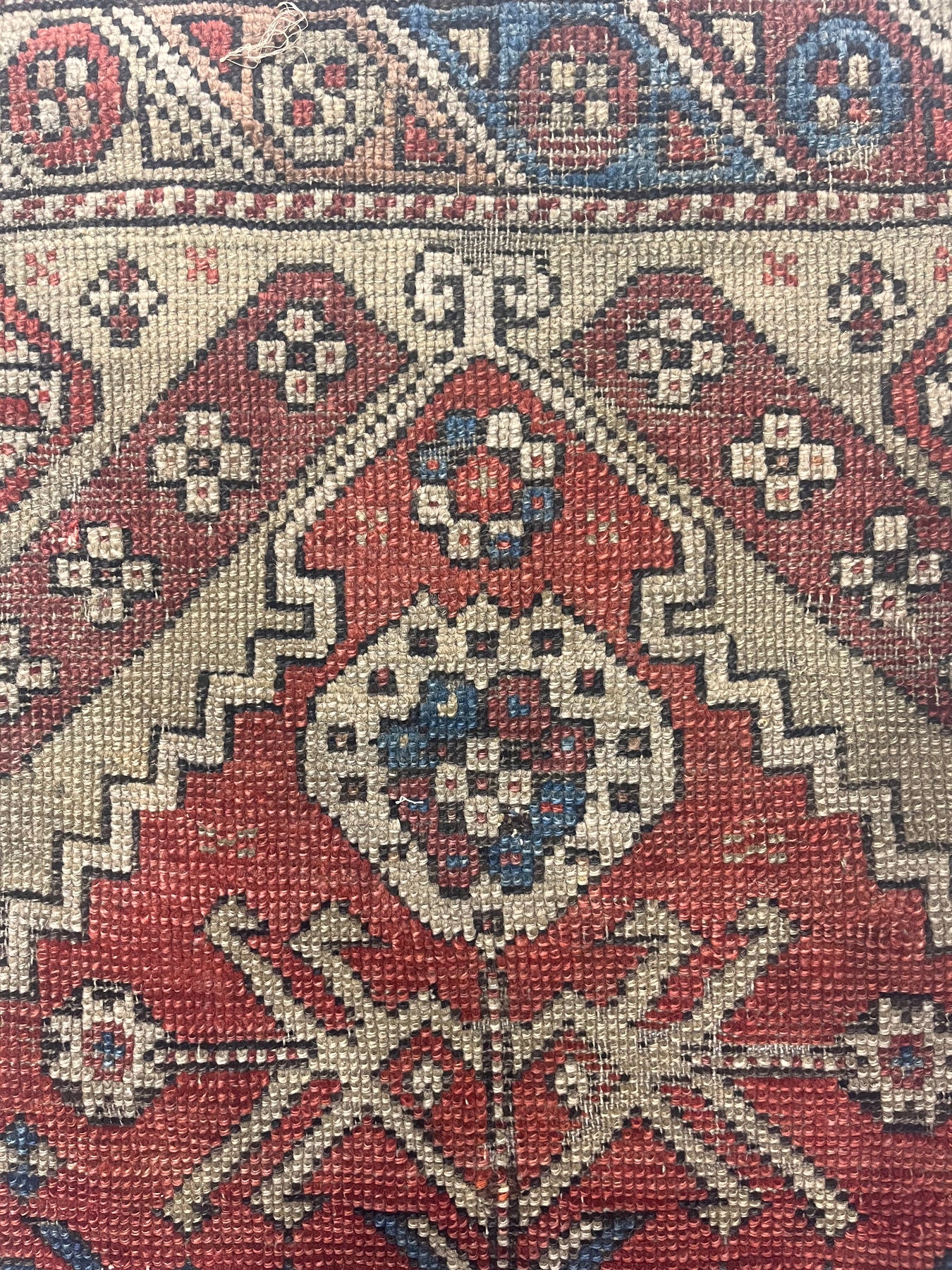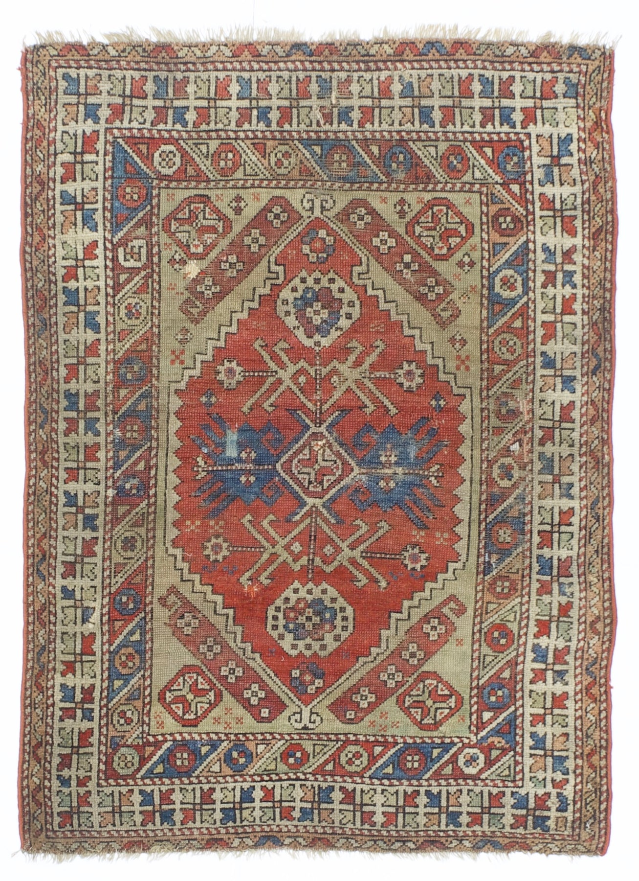 The carpets, scatters, runners, long rugs and bags of the towns, villages and tribes of Anatolia, including: Oushak, Ghiordes, Kula, Ladik, Hereke, Konya, Melas, Bergama, Sivas, Kayseri and Yuruk. Enormous range of weave densities, sizes, patterns and palettes. Prayer rugs especially popular. When in doubt, “Turkish” is appropriate. Unbroken tradition from the 14th century onward.