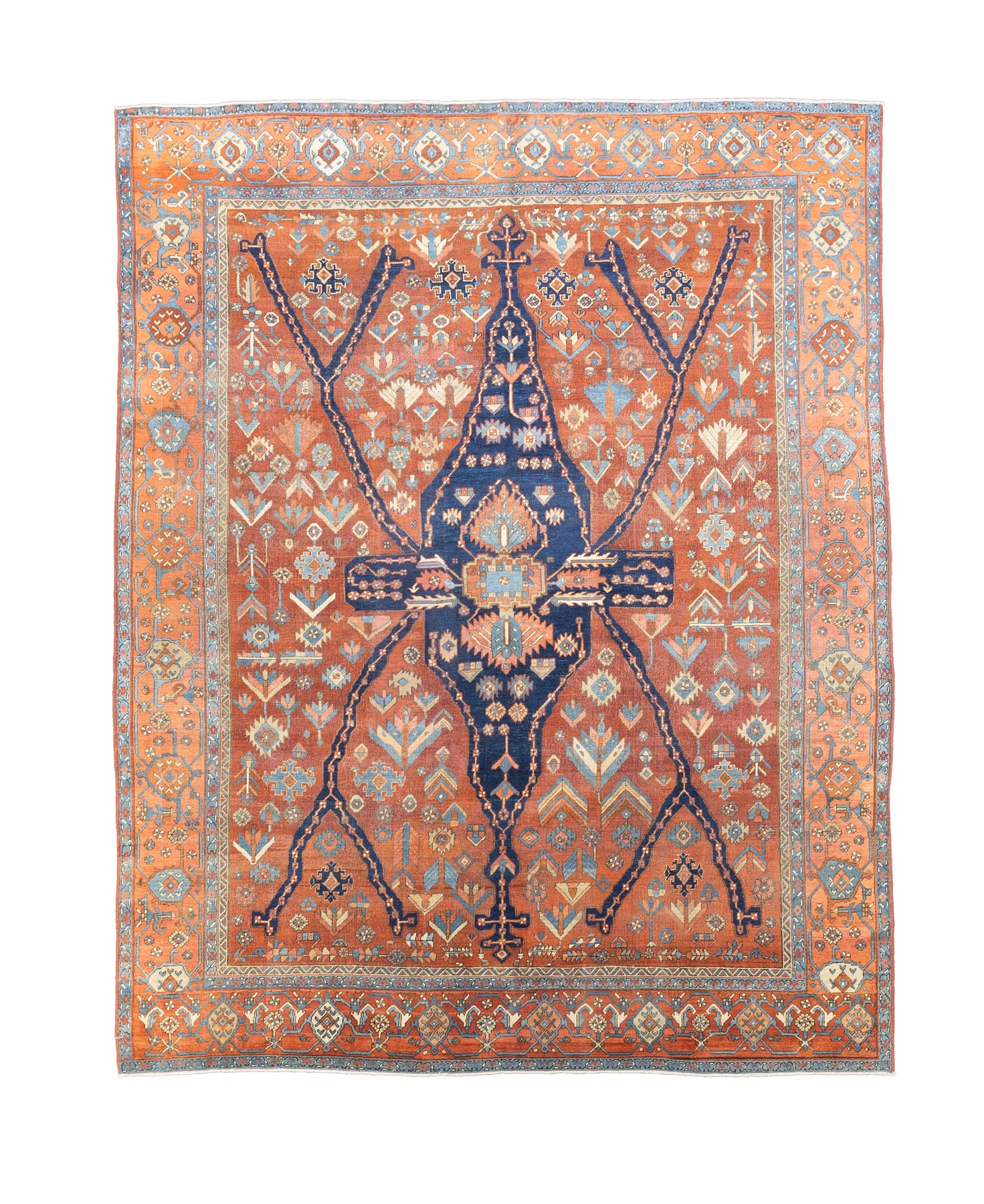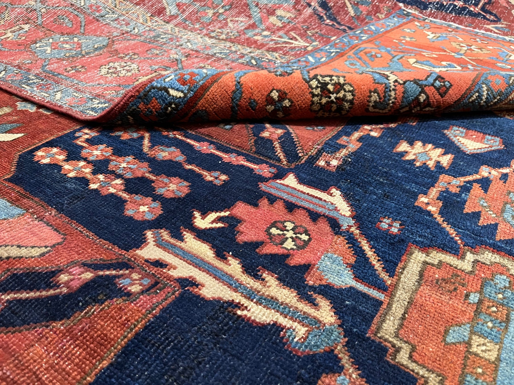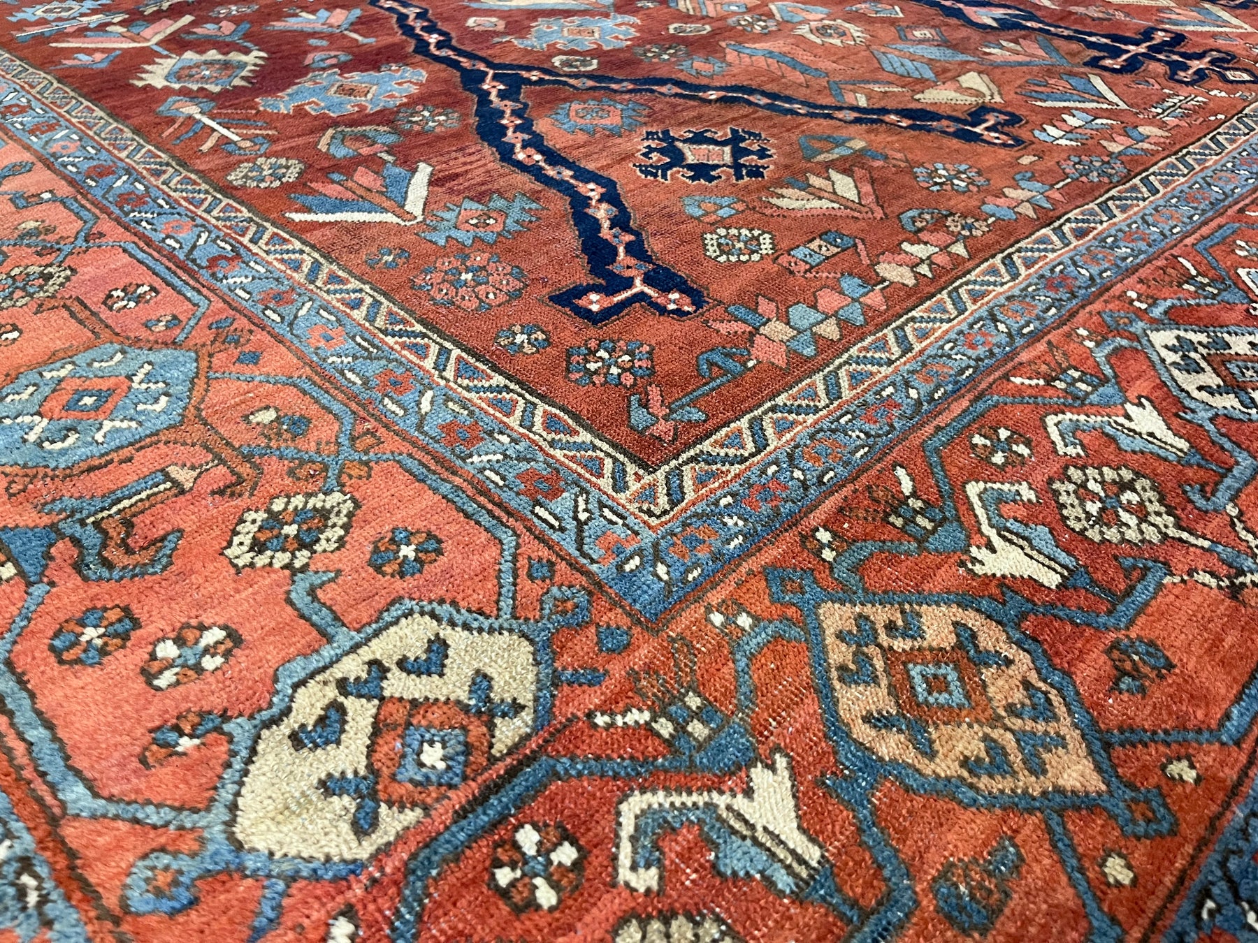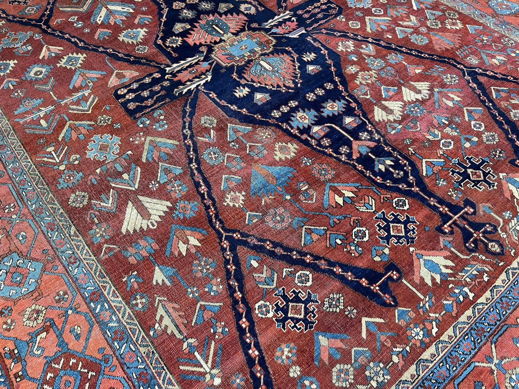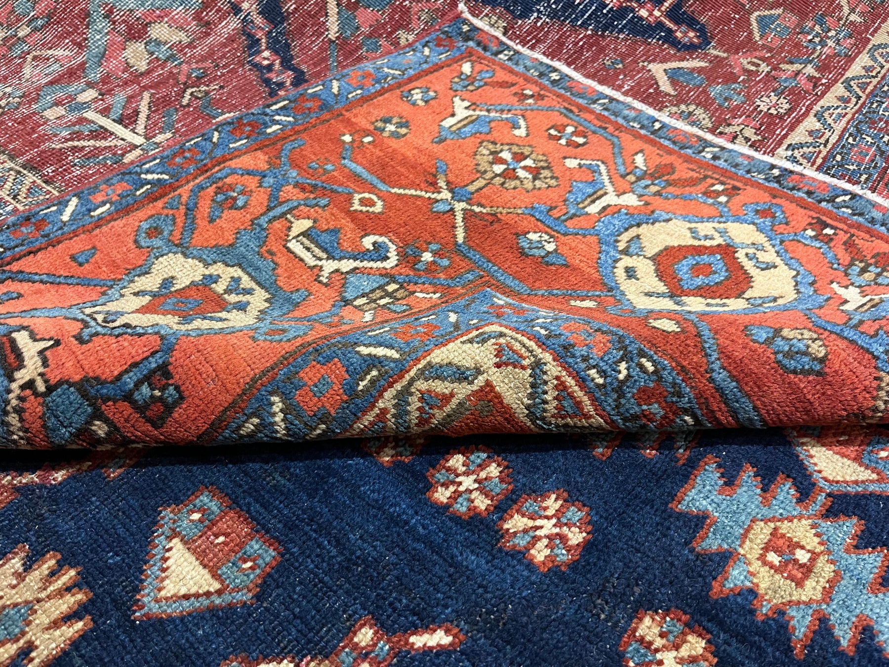 The numerous rugs of the famous NW Persian weaving district, from small scatters to giant carpets and a few runners, in semi-geometric medallion, centralized and strictly allover patterns, on cotton foundations, with crisp natural dye palettes including a warm madder red. Coarse to moderate weave. Works with any décor, always popular.