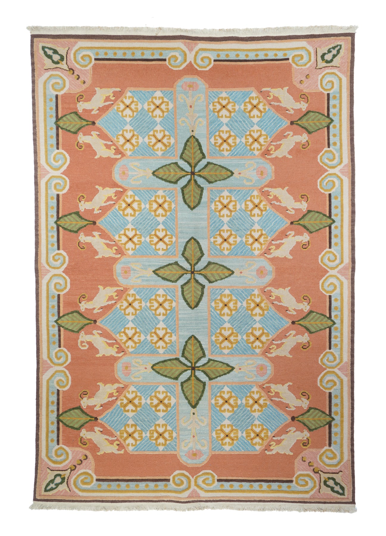 A technique rather than a specific type, in which warps are wrapped by colored wefts to create a pattern. Turkish, Persian and other types. Produces a flat surface, pileless rug which may be turned over for extended use. Lends itself to geometric patterns. Also used on bag faces and as a partial design element on pile rugs. Prices vary.