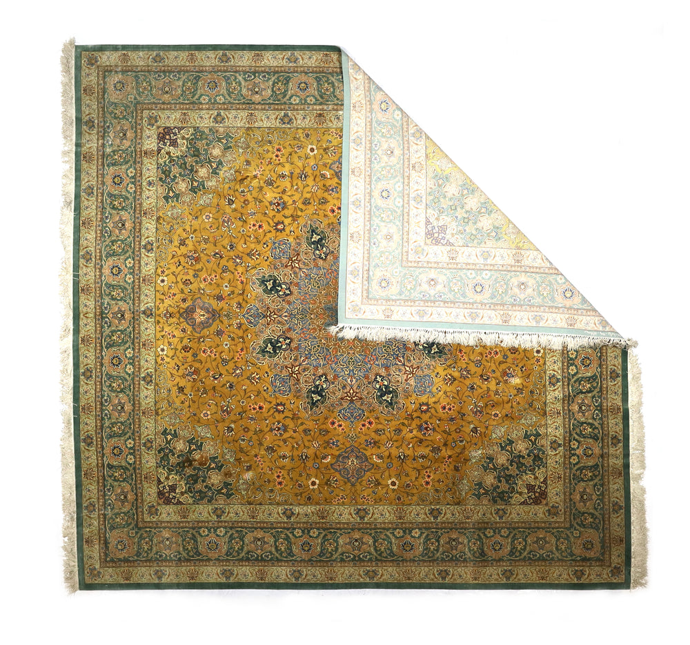 Fine to very finely woven, silk and wool rugs, mostly scatters, from the central Persian religious capital. Industry began in the 1930’s. Curvilinear drawing, Medallion, centralized, panel, allover, boteh and architectural patterns. A few prayer rugs.