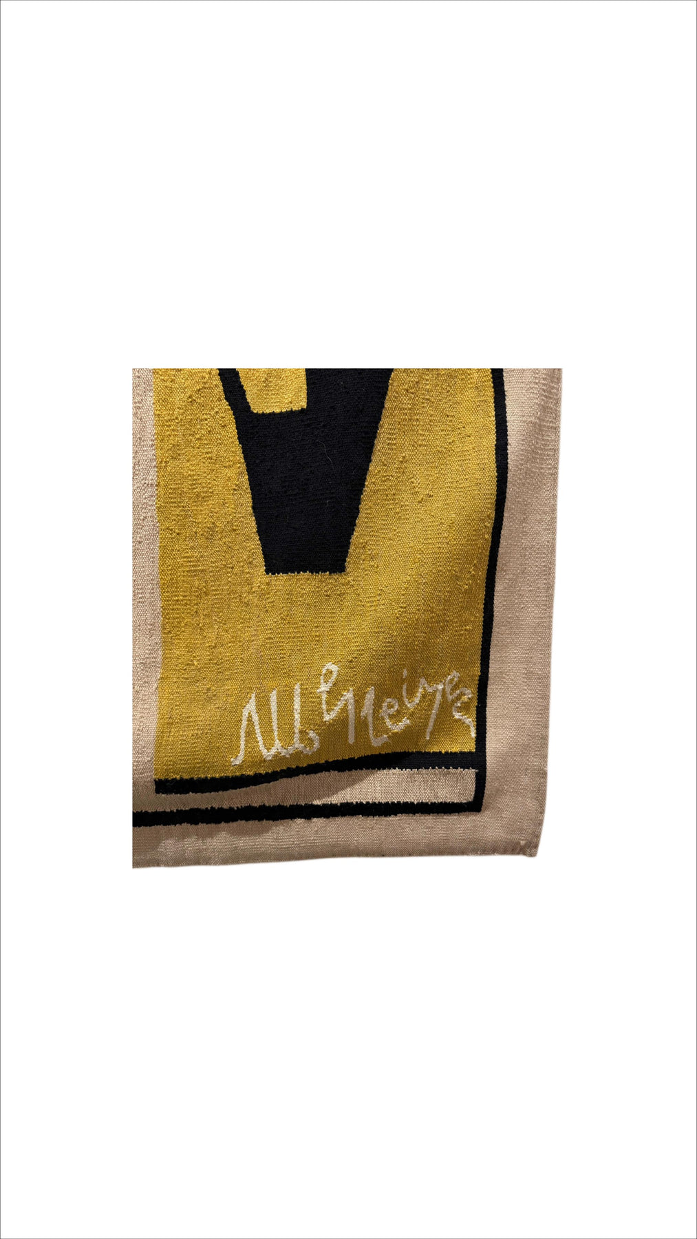 This tapestry was woven after Albert Gleizes’ work Peinture à trois éléments (1920), a seminal composition reflecting his Cubist language of rhythm, form, and structure. Gleizes, a central figure of Cubism and co-author of Du Cubisme (1912), continued to explore spatial dynamism and abstract geometries well into the 1920s. The weaving translates his painted forms into textile, maintaining the bold interplay of planes and tonal contrasts that defined his mature style.