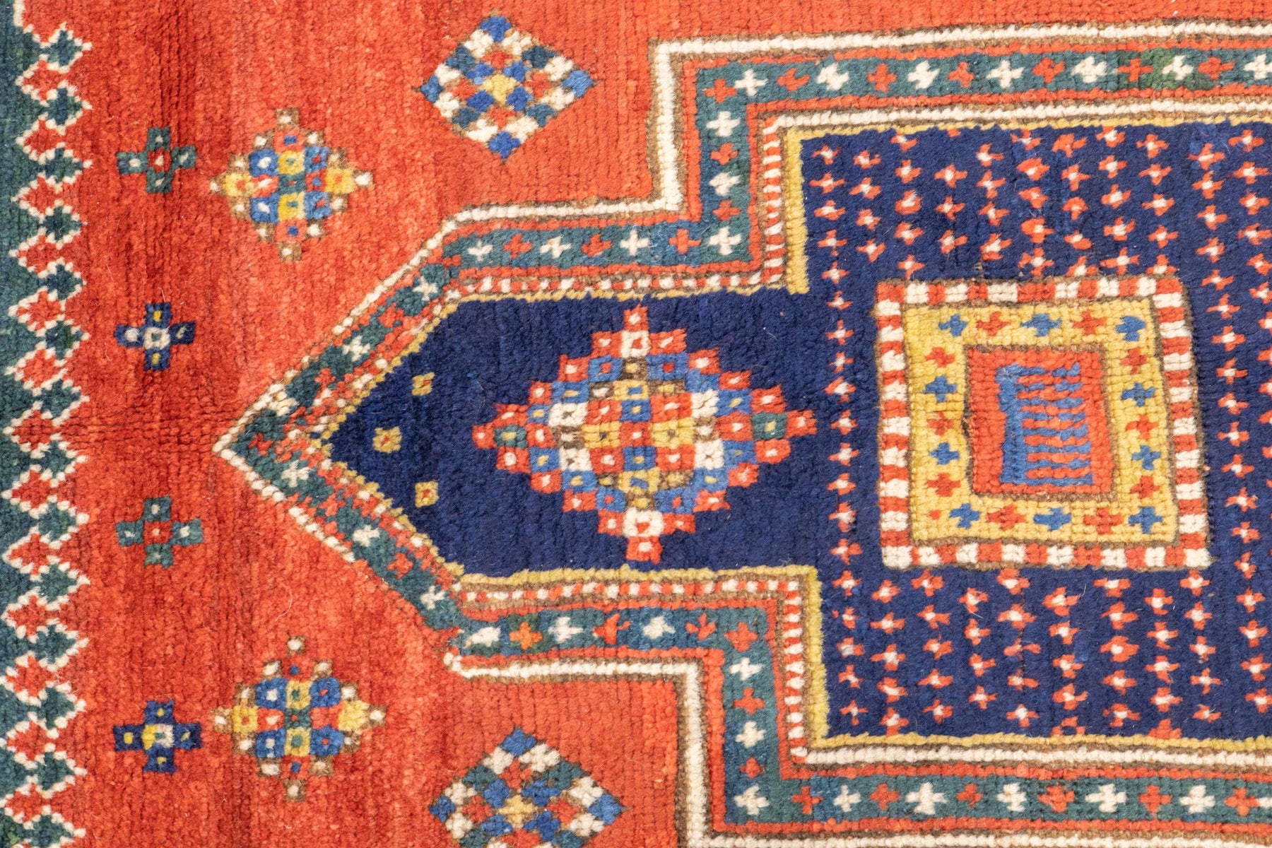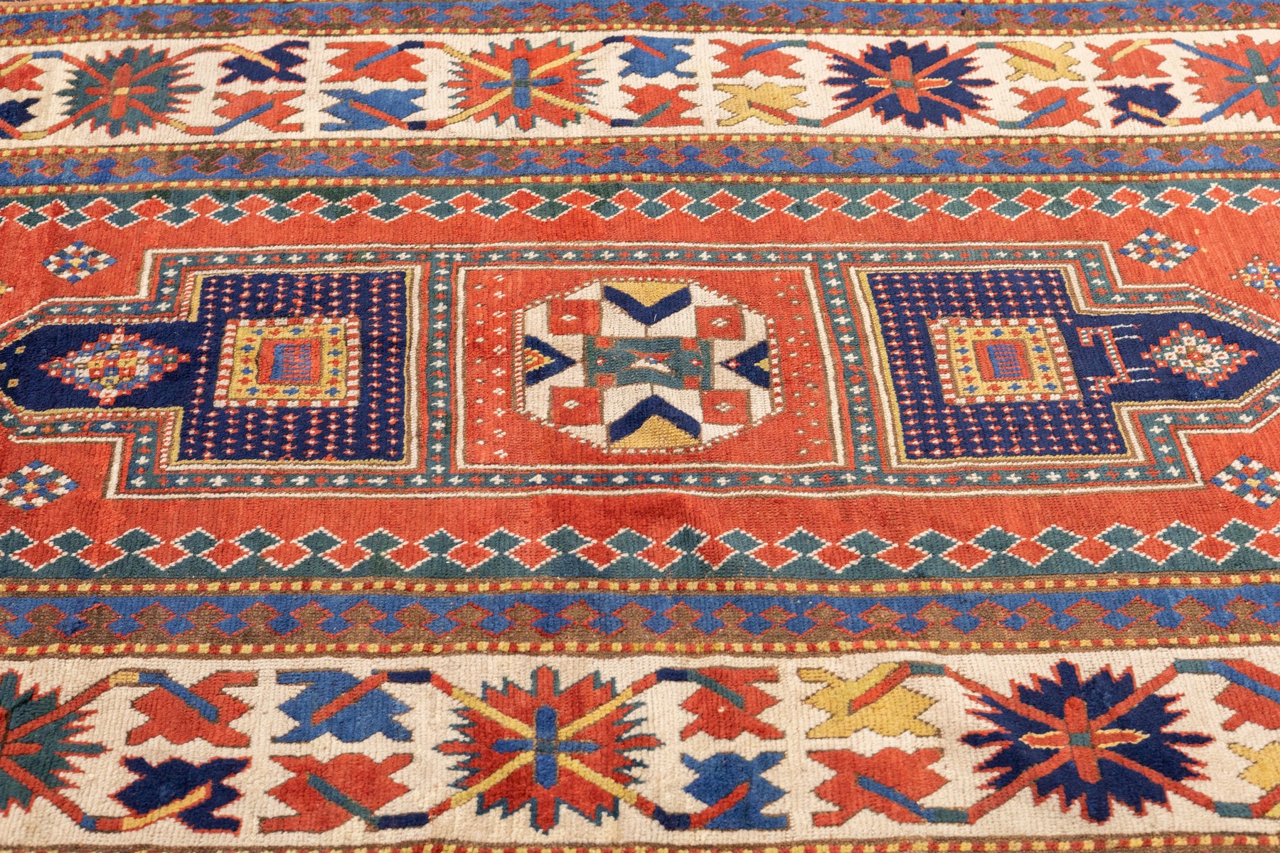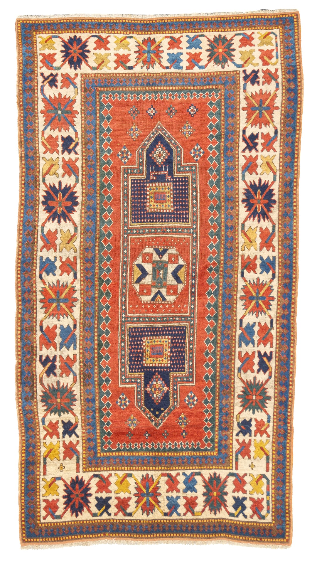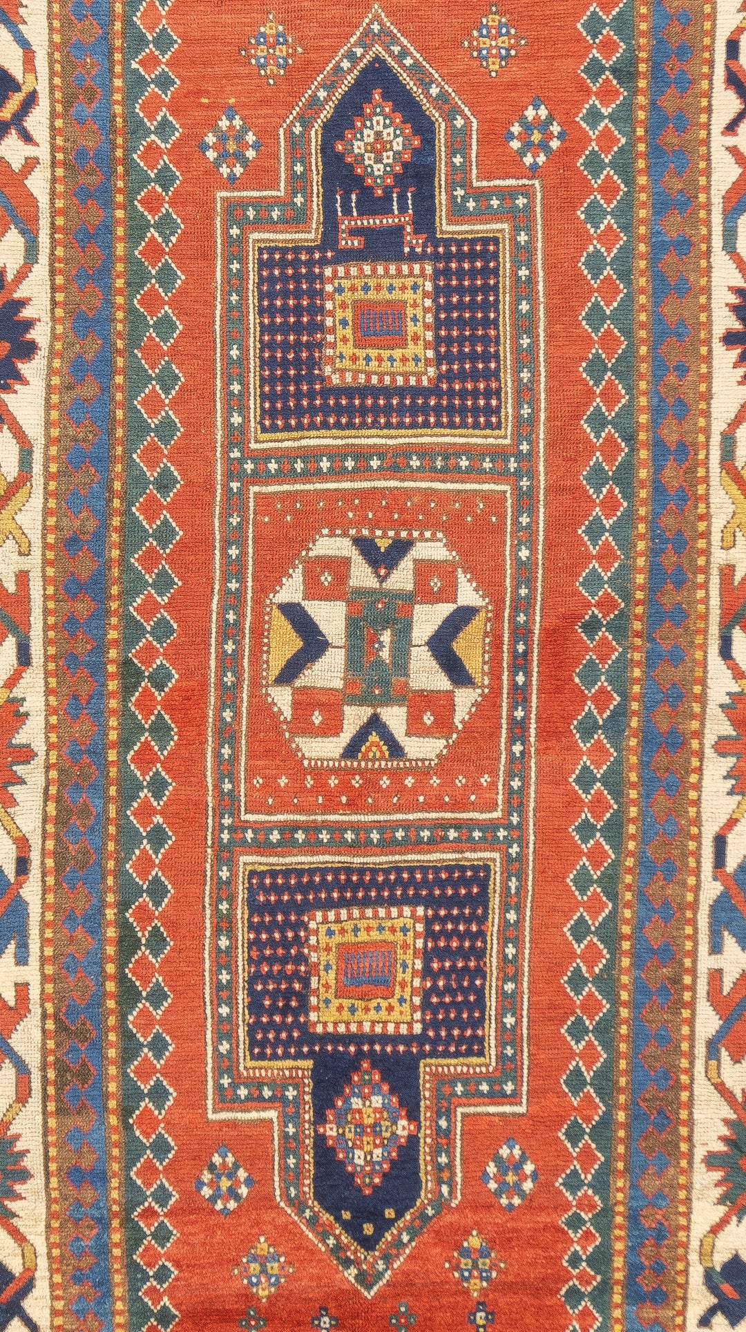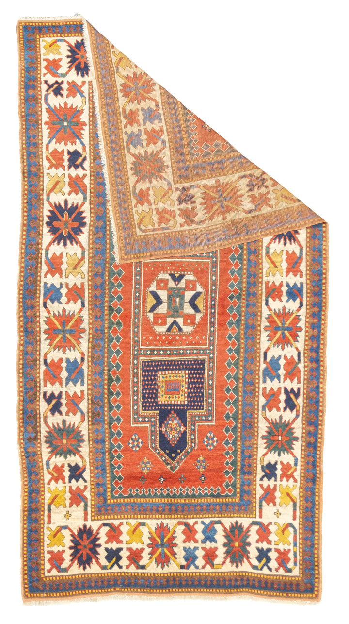 SW Caucasus/Armenia. Boldly patterned, strongly colored, totally geometric, all wool, coarse to moderate weave, medium to long pile, scatter format pieces, in medallion, allover and prayer (directional) layouts, with numerous identified source villages: Karachof, Bordshaly, Sewan, Shulaver and Lori Pambak. Natural dyes, decorative to highly collectible. Often dated.