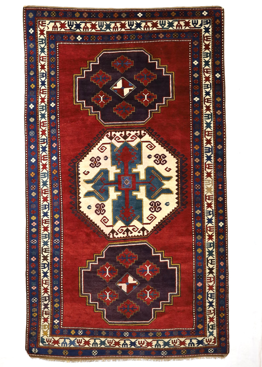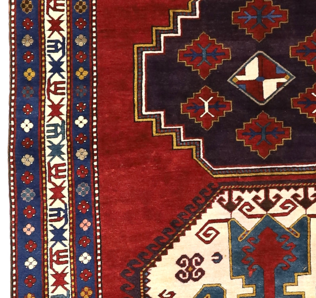 SW Caucasus/Armenia. Boldly patterned, strongly colored, totally geometric, all wool, coarse to moderate weave, medium to long pile, scatter format pieces, in medallion, allover and prayer (directional) layouts, with numerous identified source villages: Karachof, Bordshaly, Sewan, Shulaver and Lori Pambak.  Natural dyes, decorative to highly collectible. Often dated.