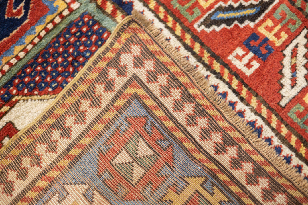 SW Caucasus/Armenia. Boldly patterned, strongly colored, totally geometric, all wool, coarse to moderate weave, medium to long pile, scatter format pieces, in medallion, allover and prayer (directional) layouts, with numerous identified source villages: Karachof, Bordshaly, Sewan, Shulaver and Lori Pambak. Natural dyes, decorative to highly collectible. Often dated.