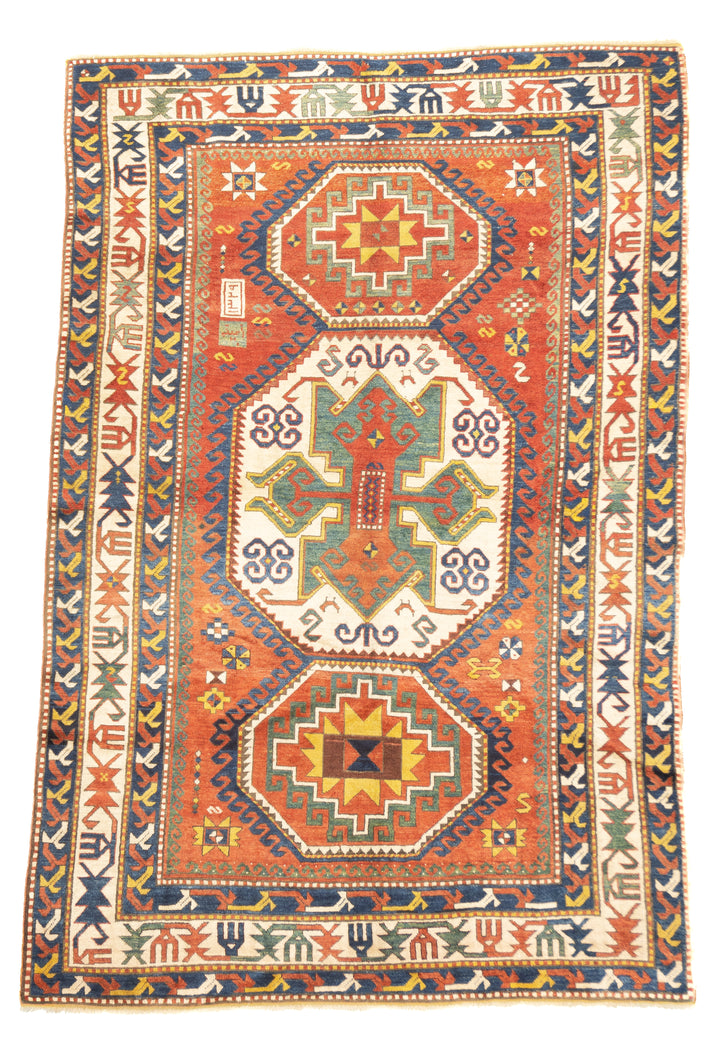SW Caucasus/Armenia. Boldly patterned, strongly colored, totally geometric, all wool, coarse to moderate weave, medium to long pile, scatter format pieces, in medallion, allover and prayer (directional) layouts, with numerous identified source villages: Karachof, Bordshaly, Sewan, Shulaver and Lori Pambak. Natural dyes, decorative to highly collectible. Often dated.
