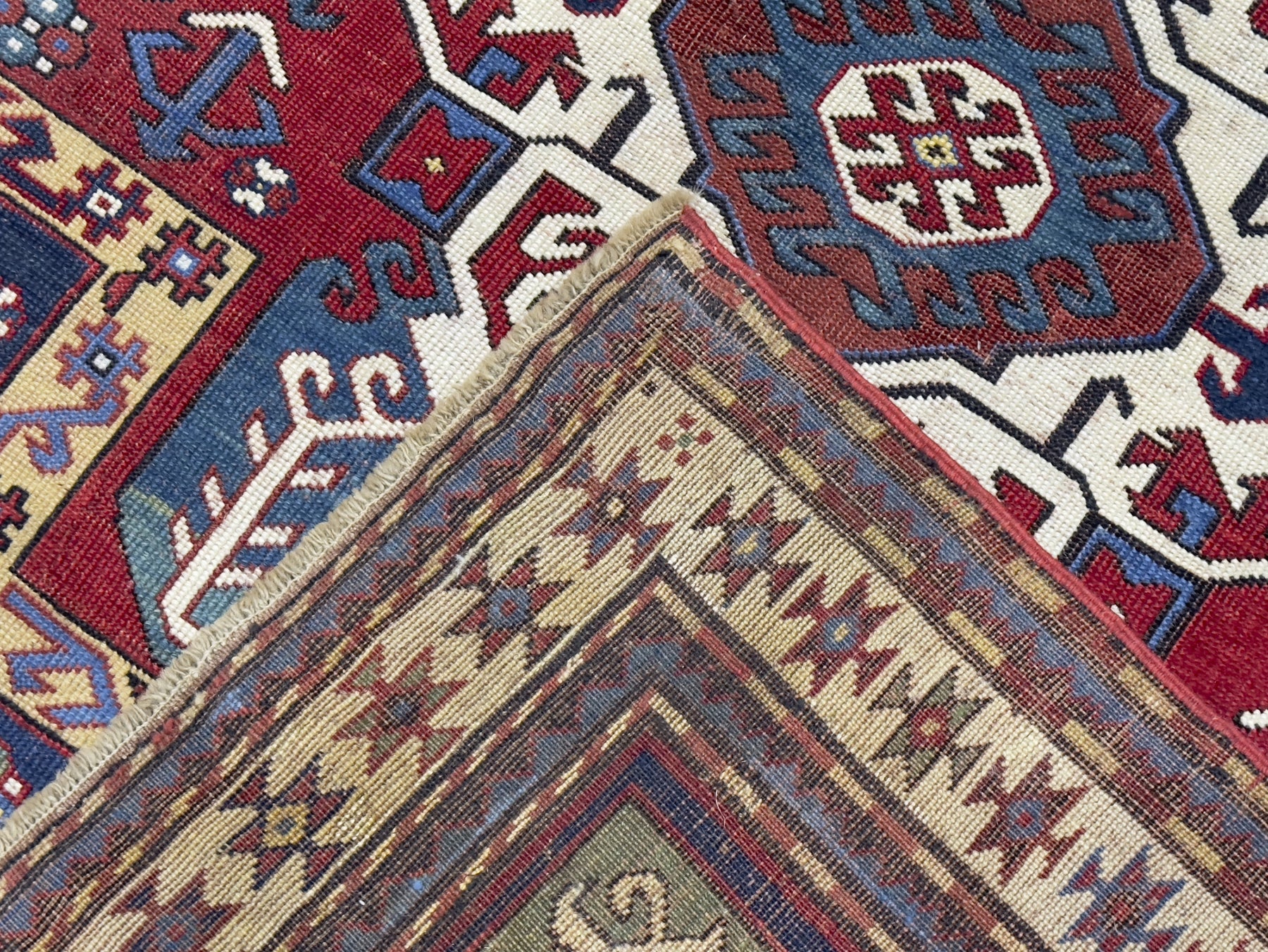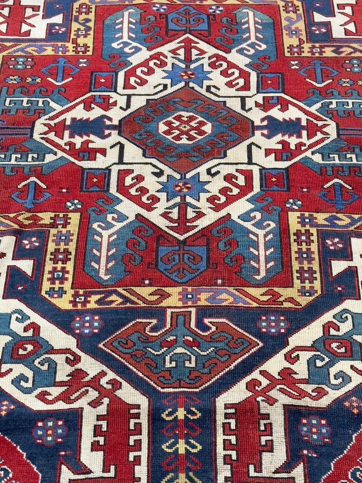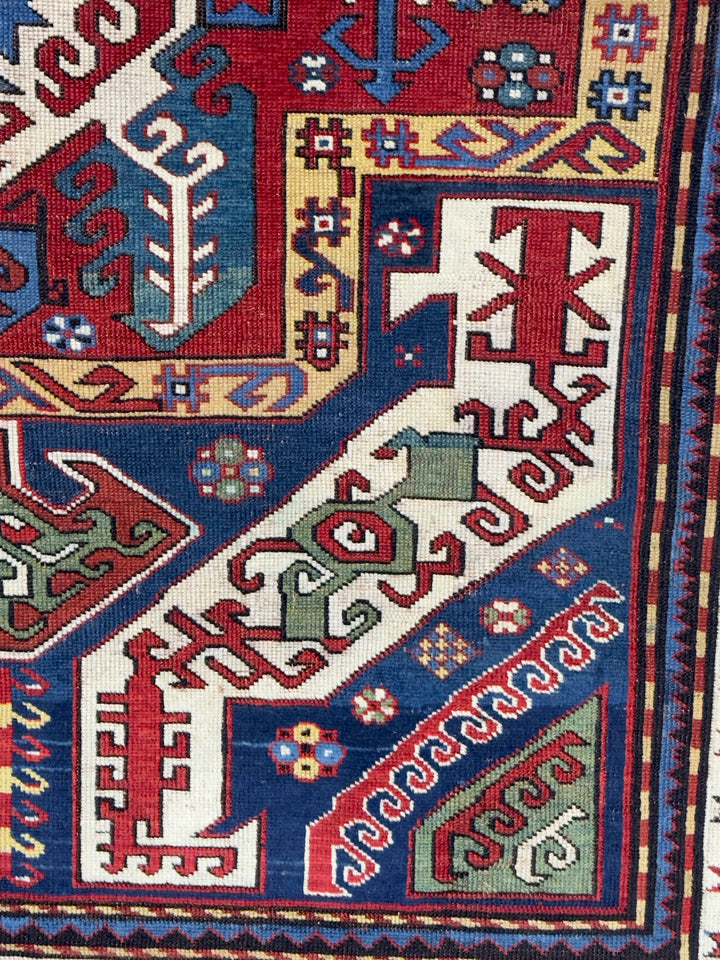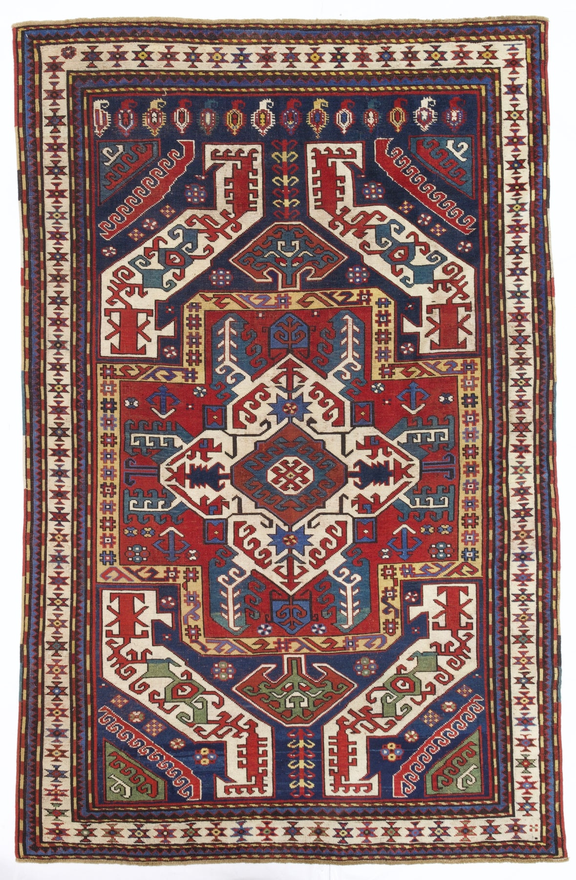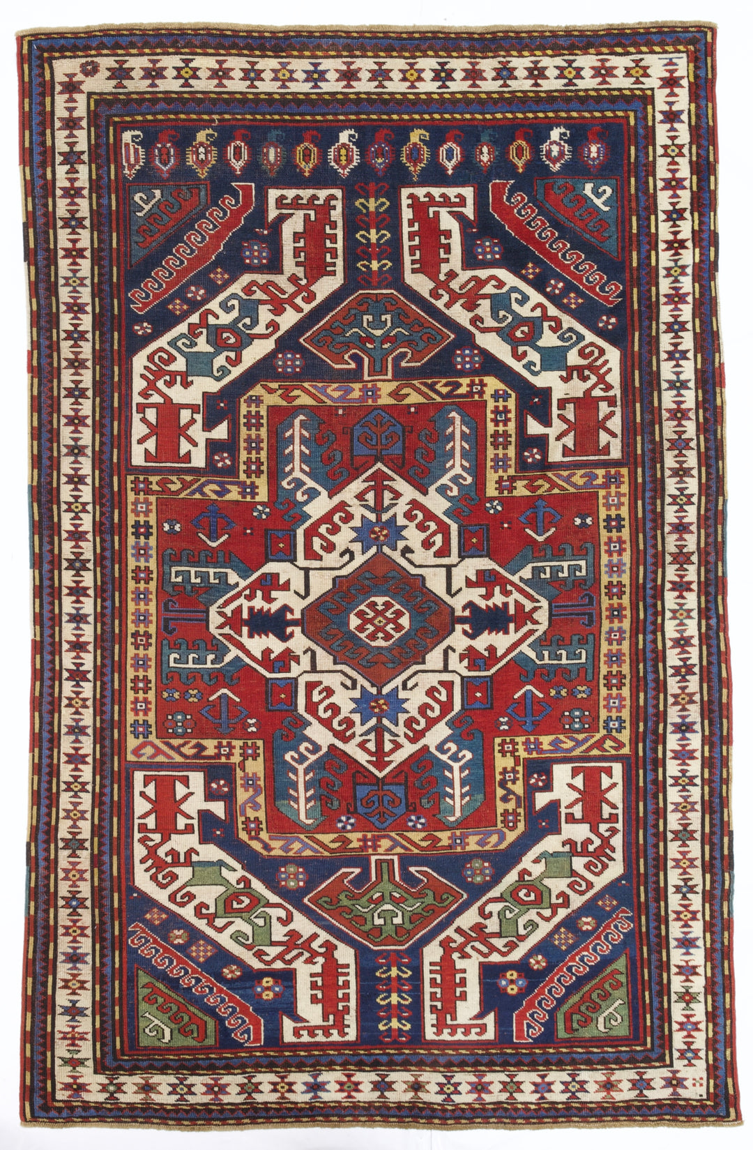 SW Caucasus/Armenia. Boldly patterned, strongly colored, totally geometric, all wool, coarse to moderate weave, medium to long pile, scatter format pieces, in medallion, allover and prayer (directional) layouts, with numerous identified source villages: Karachof, Bordshaly, Sewan, Shulaver and Lori Pambak. Natural dyes, decorative to highly collectible. Often dated.