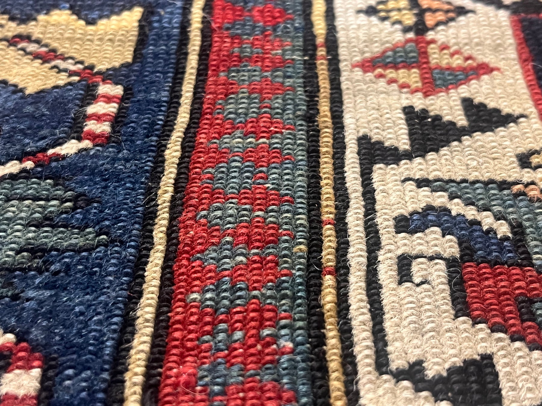 Azeri Turks inhabit the Kuba area of the central west Caspian Caucasus and weave a wide variety of geometric scatters, runners, long rugs and niche (prayer) pieces, in geometric allover and medallion designs. Some flat-weaves in kilim/tapestry and sumak (weft-wrapping) techniques are also woven. Numerous identified types/villages: Zeychur, Alpan, Chi-chi, etc. Generally all-wool, moderate to medium weave. Colorful.