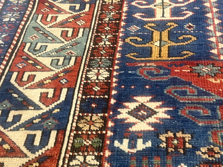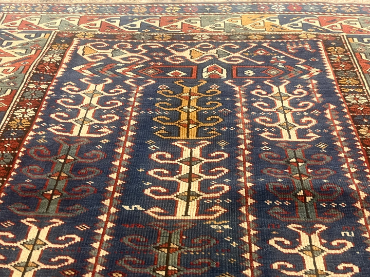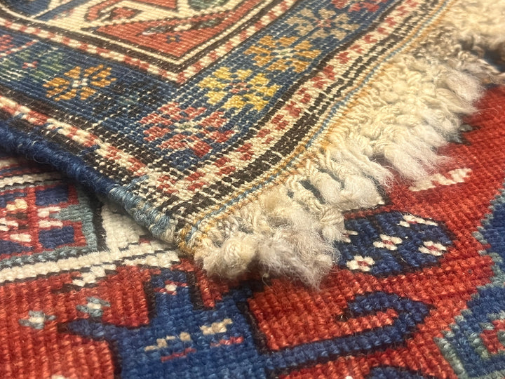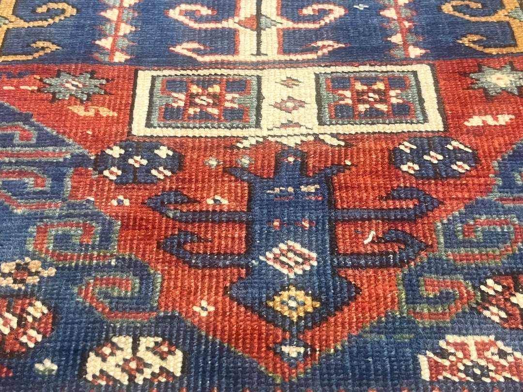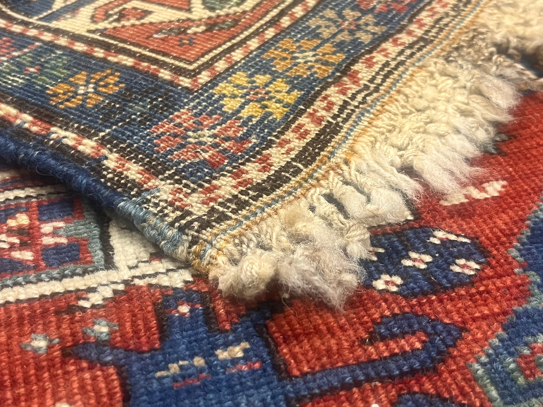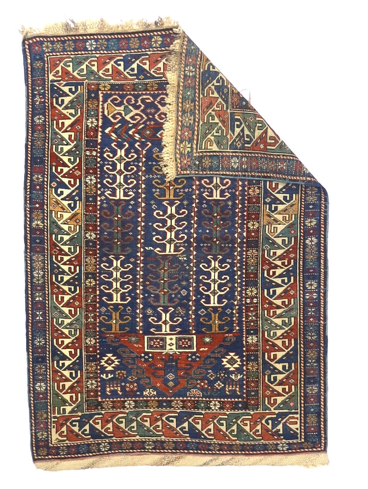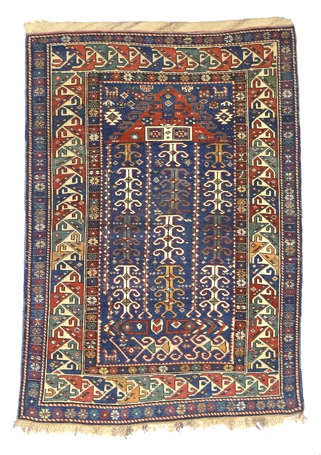 Eastern Caucasian, west Caspian Caucasian rugs, primarily scatters, in geometric layouts, some prayer, from a wide range of local villages. Marasali prayer rugs are considered as the best.. Some pictorials.Wool warps, often cotton wefts. Lowish pile, moderate to fine weaves. Natural dyes exclusively until 1890’s, then synthetics appear.