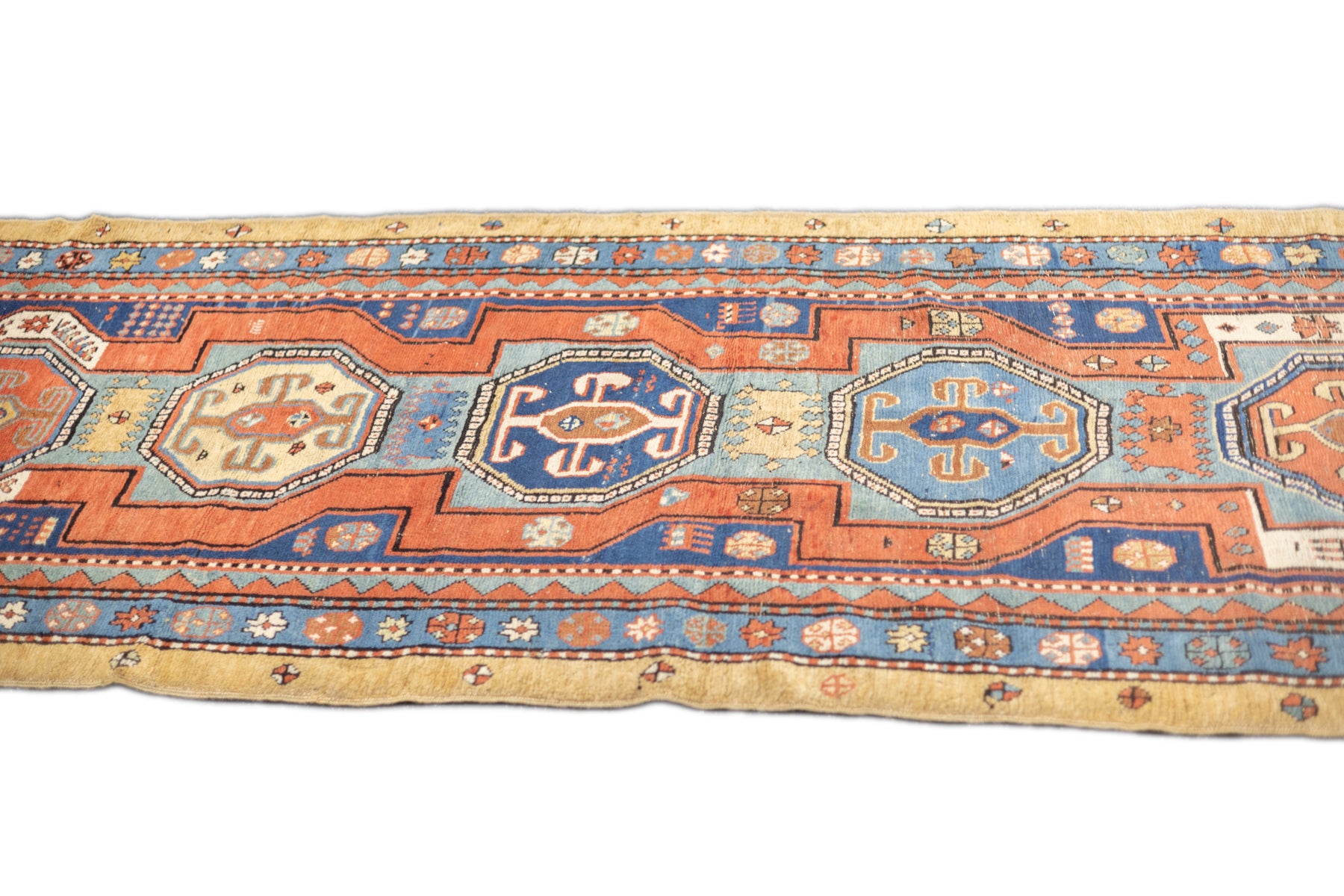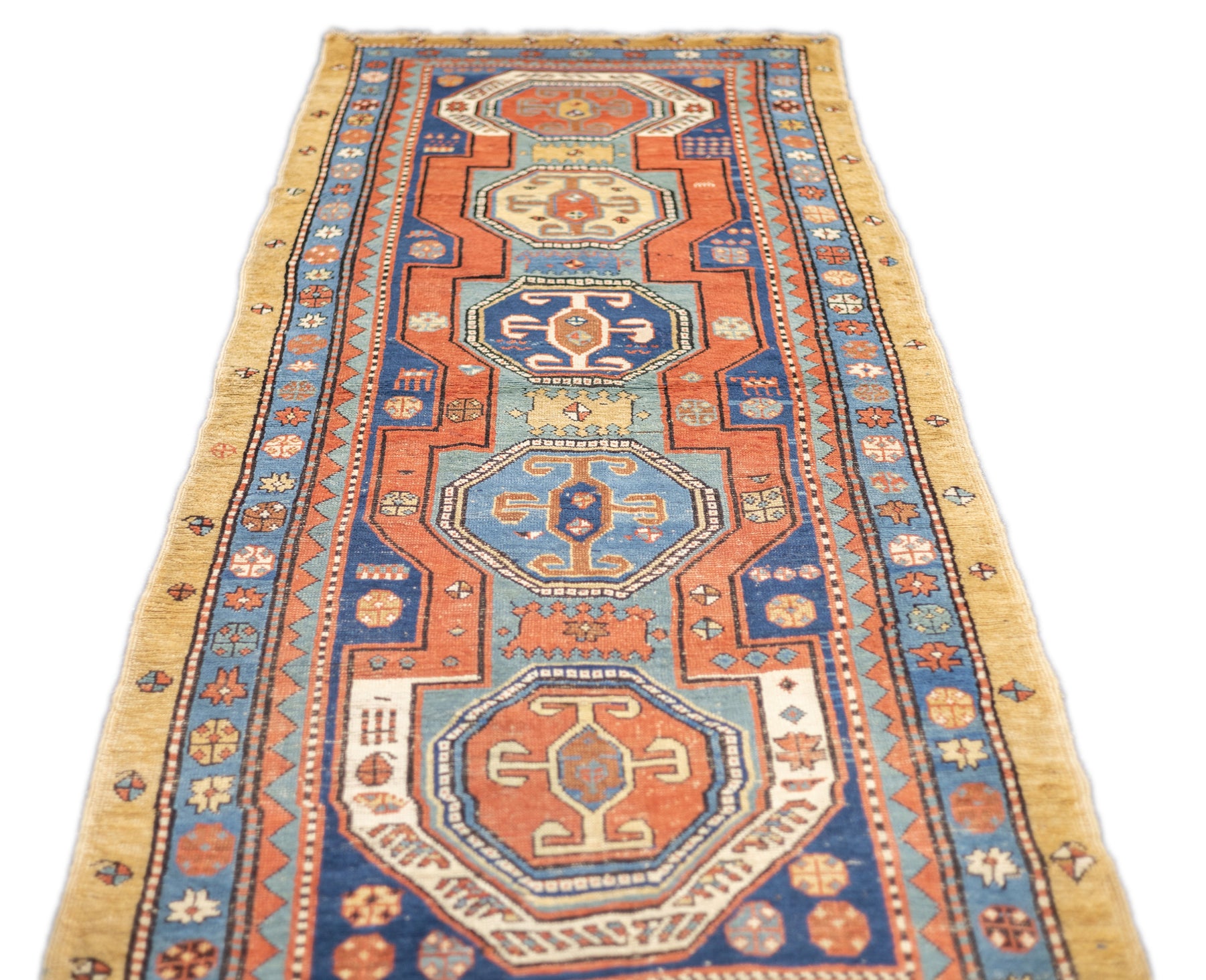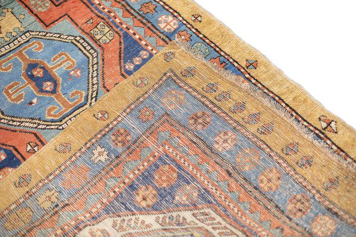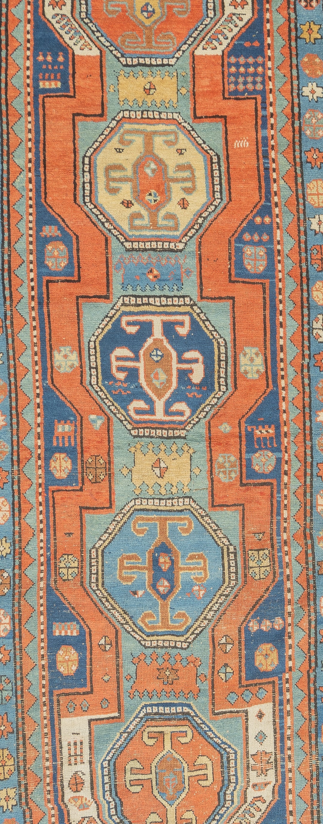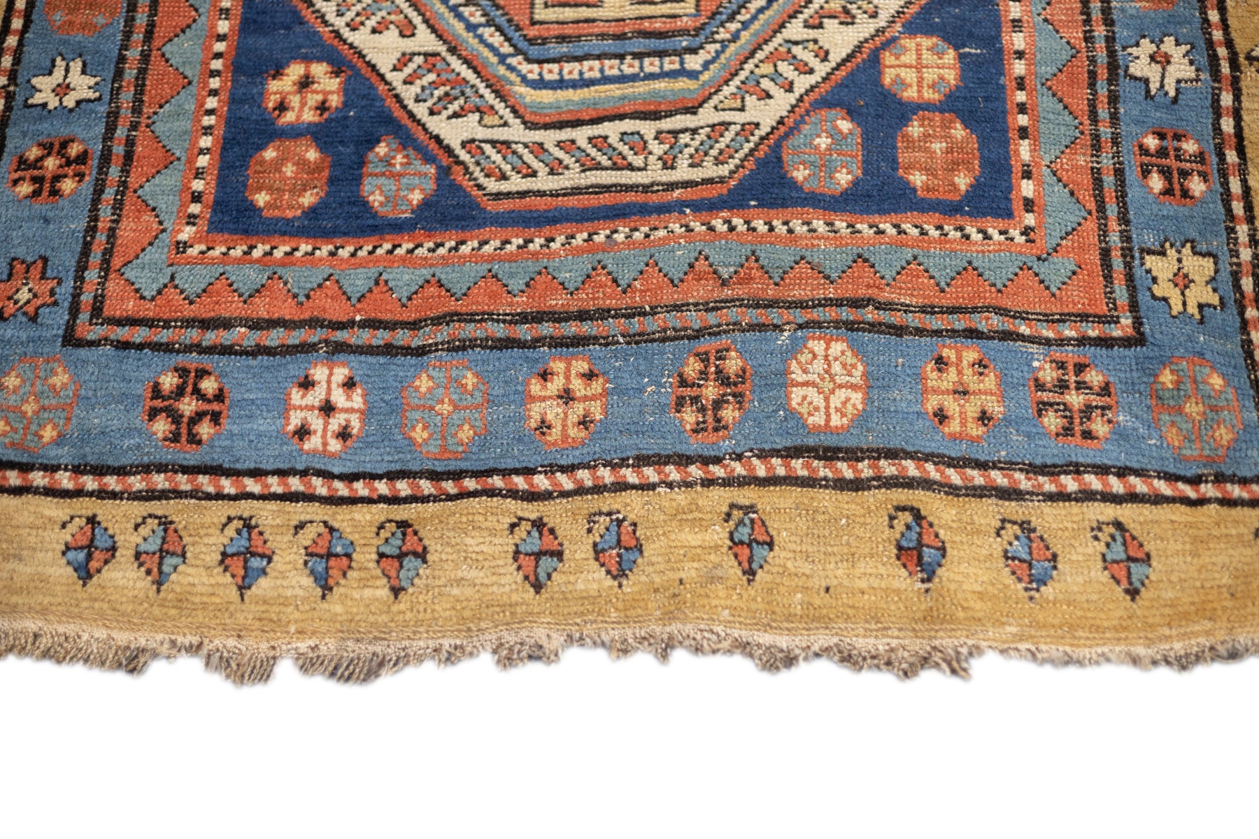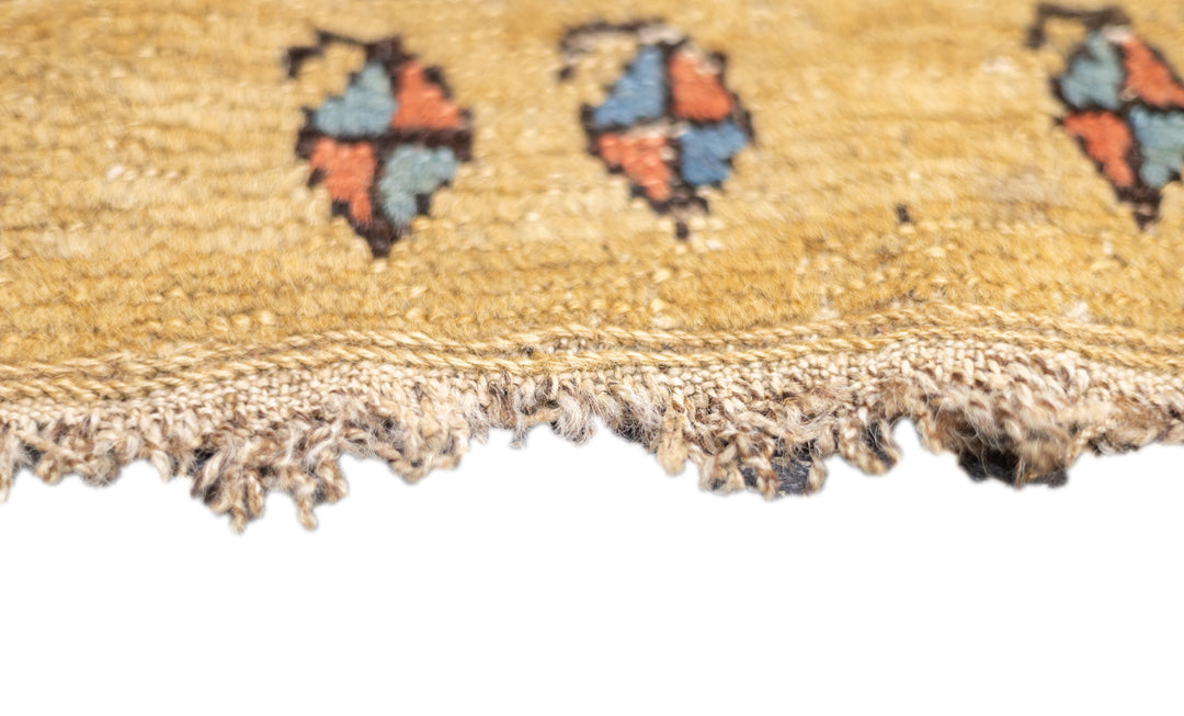 Generally in squarish sizes, allover patterns, and coarse to moderate weaves, wool, or mixed constructions; woven before 1900. The term is often extended to the early medallion, later 19th-century. Earlier pieces often have slightly more muted palettes employing rust, straw, and lighter blues. Generally in carpet sizes, some scatters.